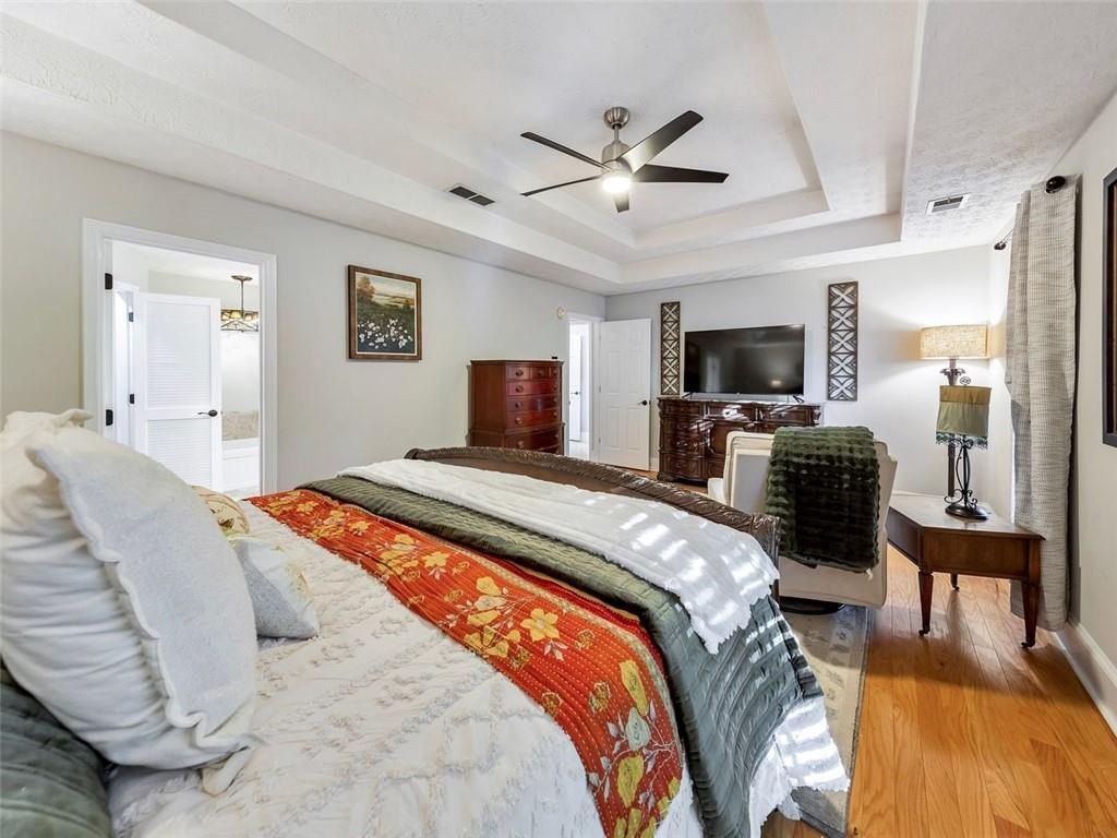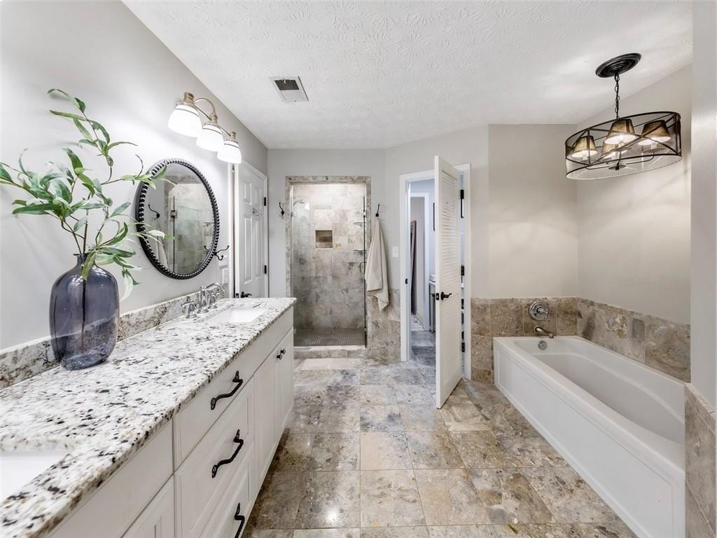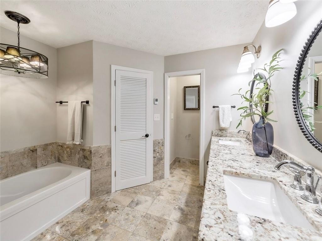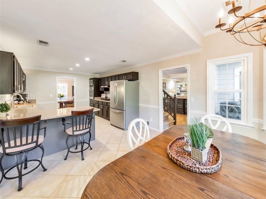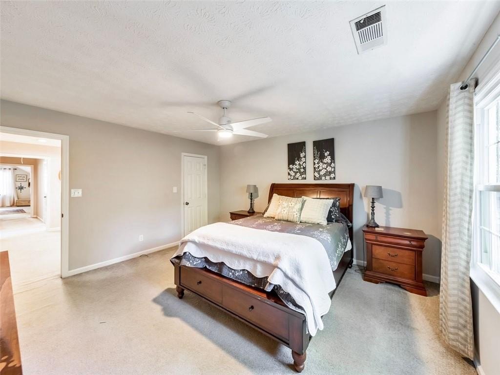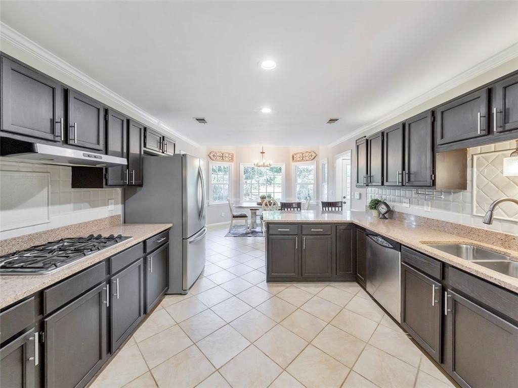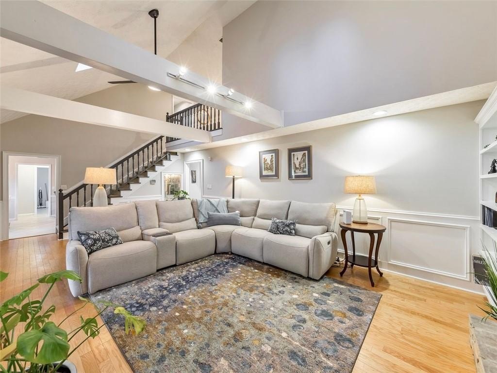 Discover the perfect family haven in a prime Kennesaw location! Welcome to this beautifully maintained 4 bed / 2.5 bath brick-front home in the sought-after swim/tennis community of Arden Lake. Step inside to the inviting two-story foyer that opens to a formal dining room, ideal for hosting dinner parties and holiday gatherings. The fireside living room offers a warm and welcoming atmosphere with beamed ceilings, skylights, a gas fireplace, built-in bookcases, and a wet bar. Enjoy your morning coffee in the sunroom, featuring vaulted ceilings, bookcases, and a cozy wood-burning fireplace. The elegant kitchen is designed for both function and style, complete with quartz countertops, stainless steel appliances, a gas burner stovetop, breakfast bar, and dining area. The laundry room is conveniently located just off the kitchen, with the washer and dryer included. The primary suite on the main level boasts hardwood floors, a tray ceiling, and plantation shutters, while the luxurious, updated bath offers heated tile flooring, a soaking tub, a frameless glass shower door, and an oversized walk-in closet with an Elfa organization system. The main-level powder room has also been thoughtfully updated with a new toilet and modern finishes. Upstairs, three spacious bedrooms, including one with vaulted ceilings, share a beautifully renovated hall bath, and there is extra storage space off the third bedroom. Step outside to the fenced backyard, where an expansive patio provides plenty of room for relaxation and outdoor entertaining. Additional highlights include a large garage with abundant storage, new hardware throughout, new windows with a lifetime warranty, all blinds with extras included, a new Class 3 roof, new chimney cap and shrouds, a replaced water main and shutoff, a new 40-gallon water heater with flood stop, and an irrigation system in the front yard. This exceptional home combines timeless features, thoughtful updates, and an inviting layout in a wonderful neighborhood setting.