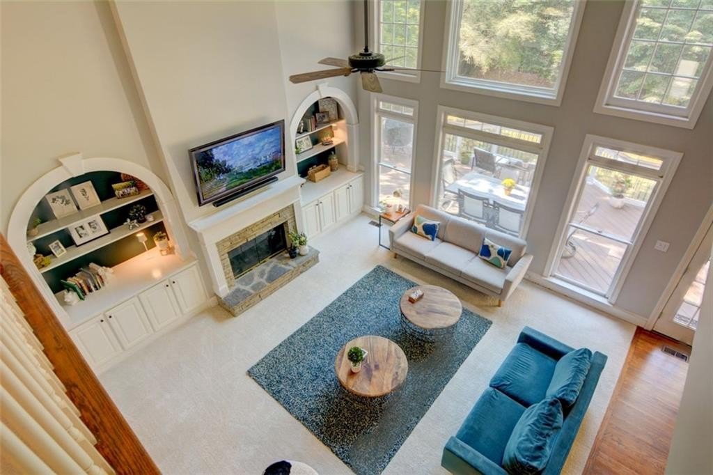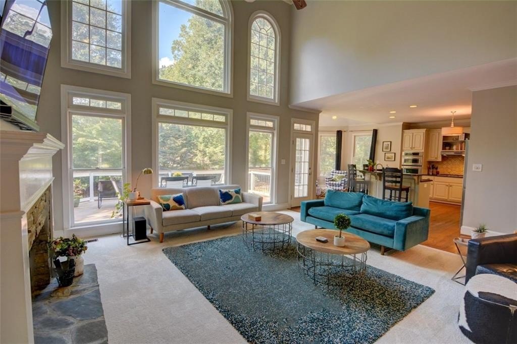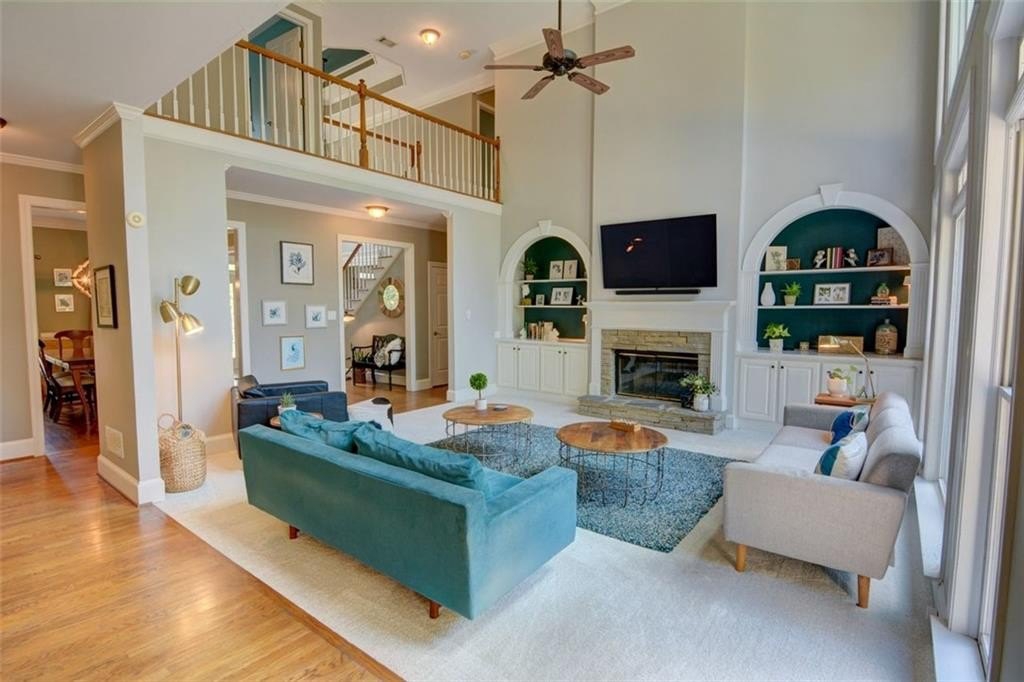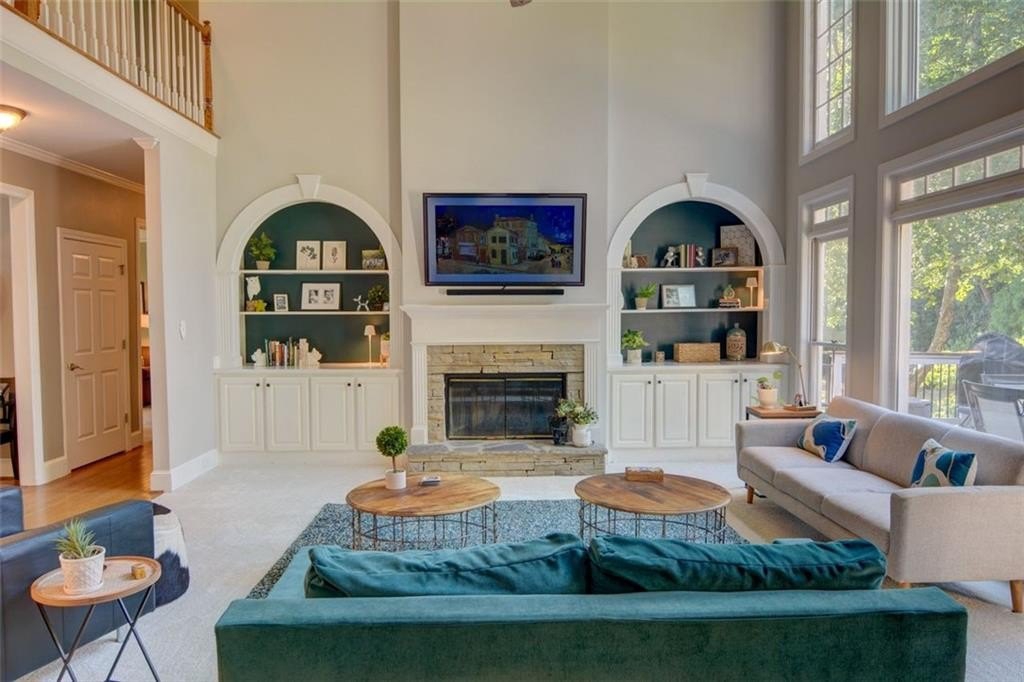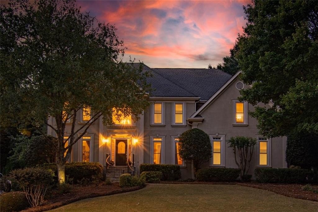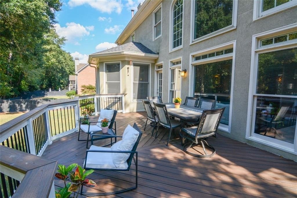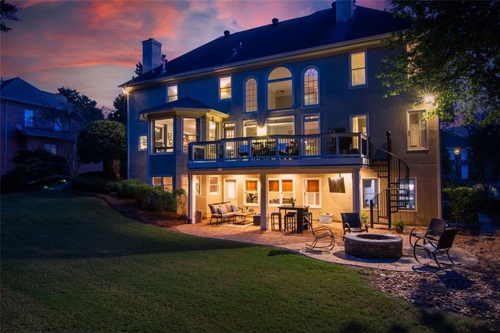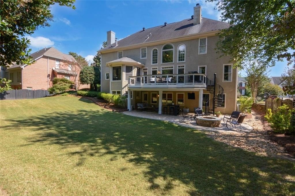 Welcome to this stunning home in the sought-after Amberfield swim/tennis community. Step inside to an impressive two-story foyer flanked by a formal living room and dining room, setting the tone for the elegance throughout. At the heart of the home, a spacious two-story living room showcases a dramatic wall of windows and arched built-ins, seamlessly connecting to a built-in coffee bar and a large eat-in kitchen with a bar-height island. The keeping room offers plenty of space for casual dining and gathering. A main-level guest suite with a full bath provides comfort and privacy for visitors. Upstairs, the oversized primary suite is a true retreat with its own sitting room and cozy fireplace. The spa-like en suite features a large shower, soaking tub, dual vanities, and a generous walk-in closet. You’ll also find a secondary bedroom with its own private bath and two additional bedrooms sharing a Jack-and-Jill bathroom, each with a separate vanity area. The terrace level offers incredible flexibility with a spacious den perfect for movie nights, a game and gym area, an alcove ideal for play or hobbies, and a half bath with space to convert to a full. Outside, enjoy beautifully landscaped grounds and a private, flat backyard with a patio and fire pit. A spacious upper deck with a spiral staircase provides the perfect spot for outdoor dining and entertaining. Located close to the Forum and Peachtree Corners Town Green with shopping, dining, and top-rated schools, this home combines comfort, style, and convenience in one remarkable package.