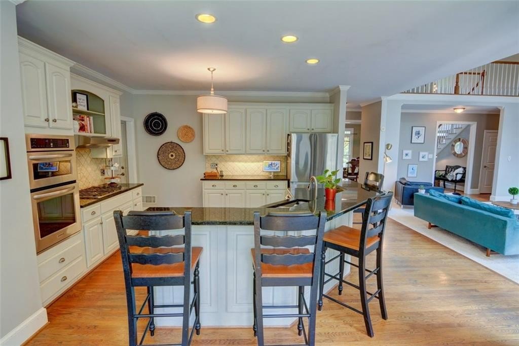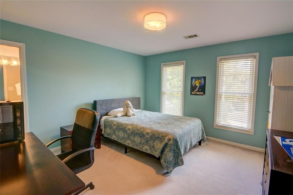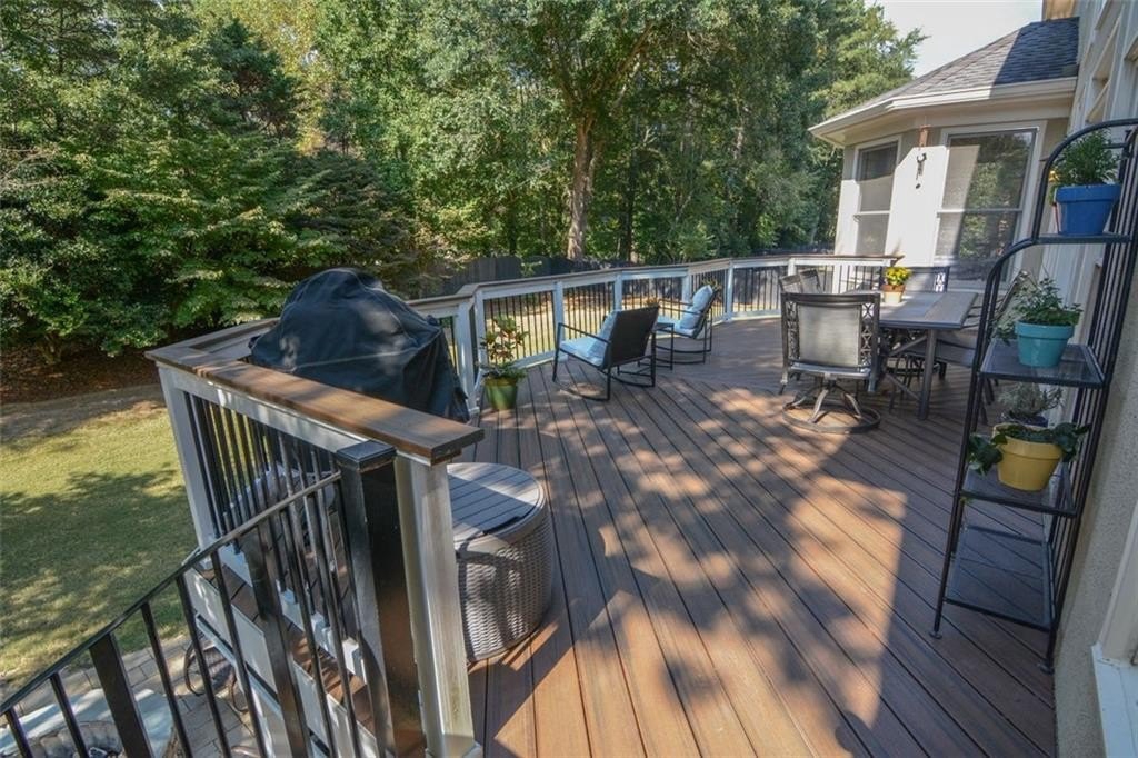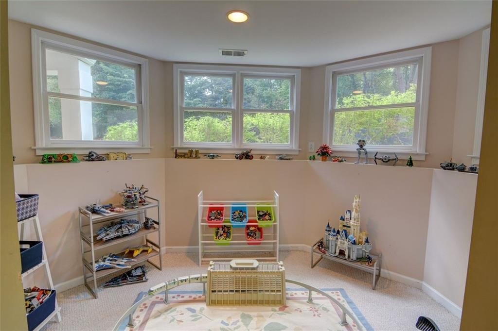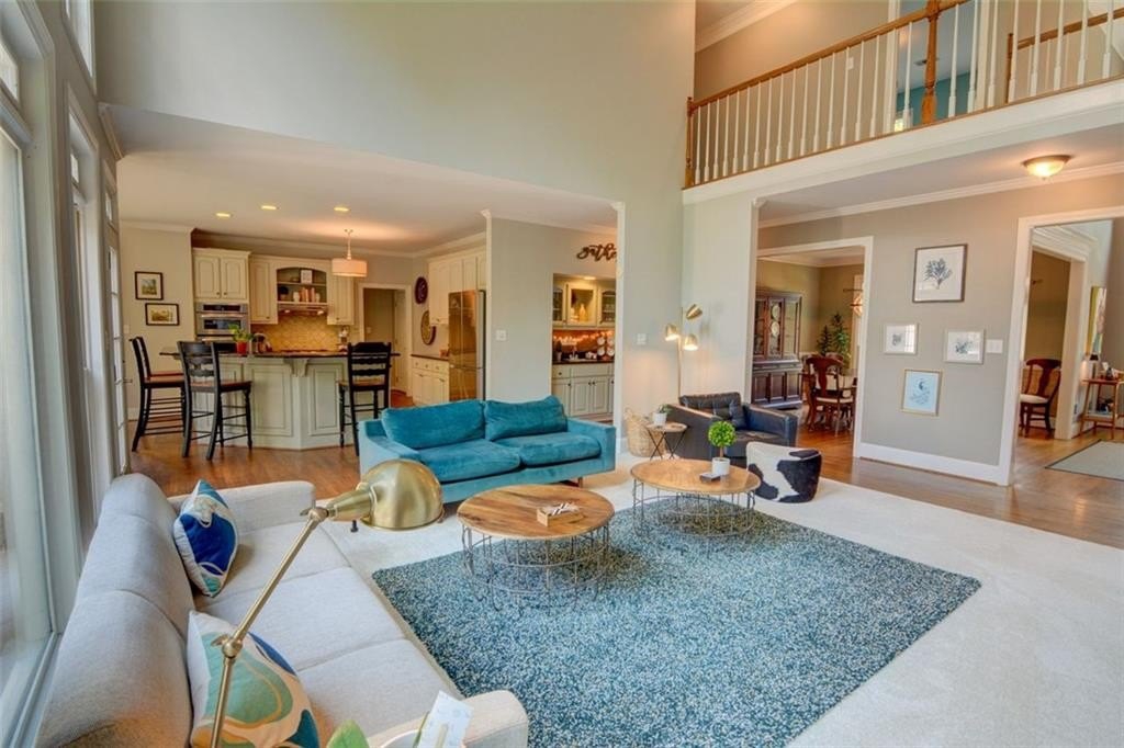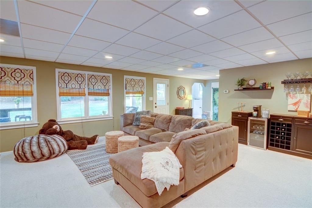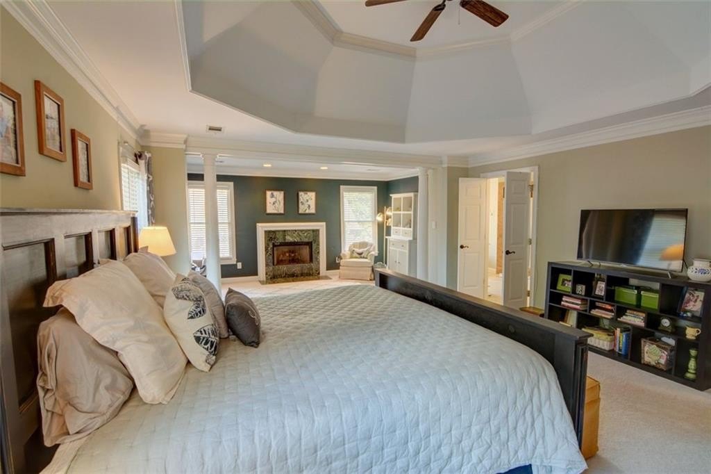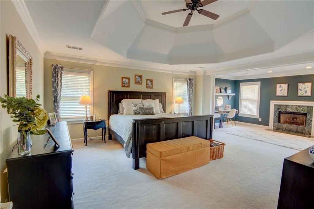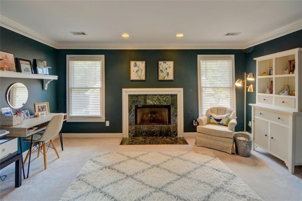 Welcome to this stunning home in the sought-after Amberfield swim/tennis community. Step inside to an impressive two-story foyer flanked by a formal living room and dining room, setting the tone for the elegance throughout. At the heart of the home, a spacious two-story living room showcases a dramatic wall of windows and arched built-ins, seamlessly connecting to a built-in coffee bar and a large eat-in kitchen with a bar-height island. The keeping room offers plenty of space for casual dining and gathering. A main-level guest suite with a full bath provides comfort and privacy for visitors. Upstairs, the oversized primary suite is a true retreat with its own sitting room and cozy fireplace. The spa-like en suite features a large shower, soaking tub, dual vanities, and a generous walk-in closet. You’ll also find a secondary bedroom with its own private bath and two additional bedrooms sharing a Jack-and-Jill bathroom, each with a separate vanity area. The terrace level offers incredible flexibility with a spacious den perfect for movie nights, a game and gym area, an alcove ideal for play or hobbies, and a half bath with space to convert to a full. Outside, enjoy beautifully landscaped grounds and a private, flat backyard with a patio and fire pit. A spacious upper deck with a spiral staircase provides the perfect spot for outdoor dining and entertaining. Located close to the Forum and Peachtree Corners Town Green with shopping, dining, and top-rated schools, this home combines comfort, style, and convenience in one remarkable package.