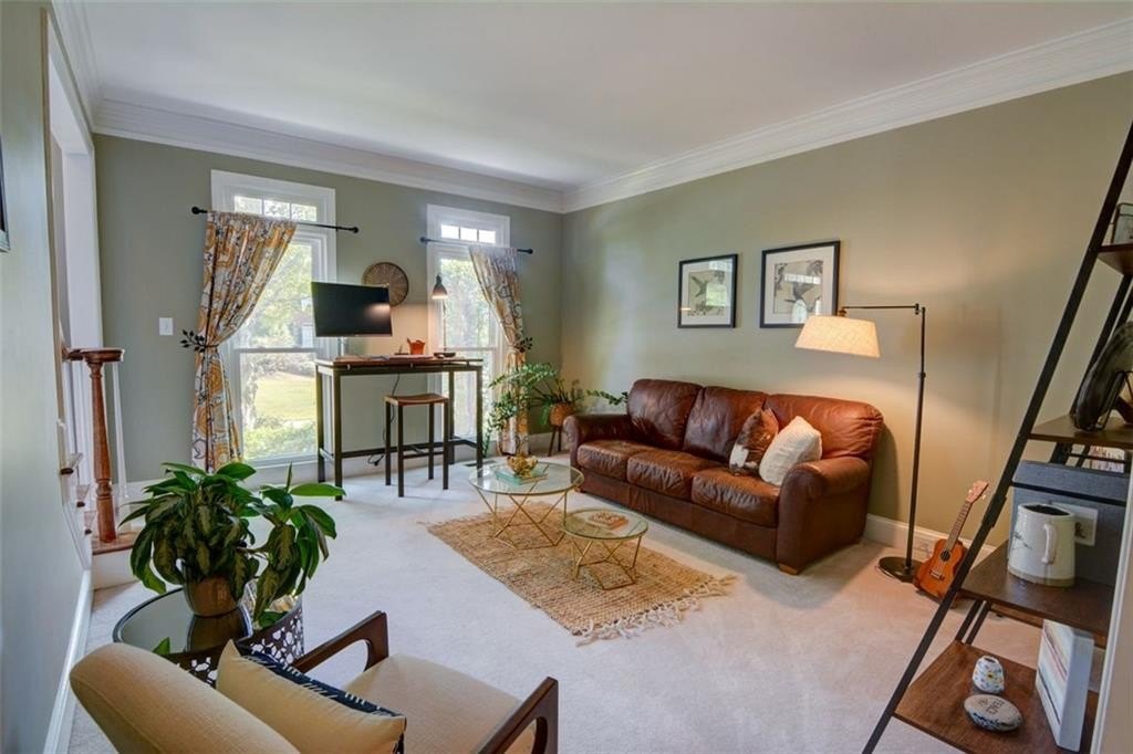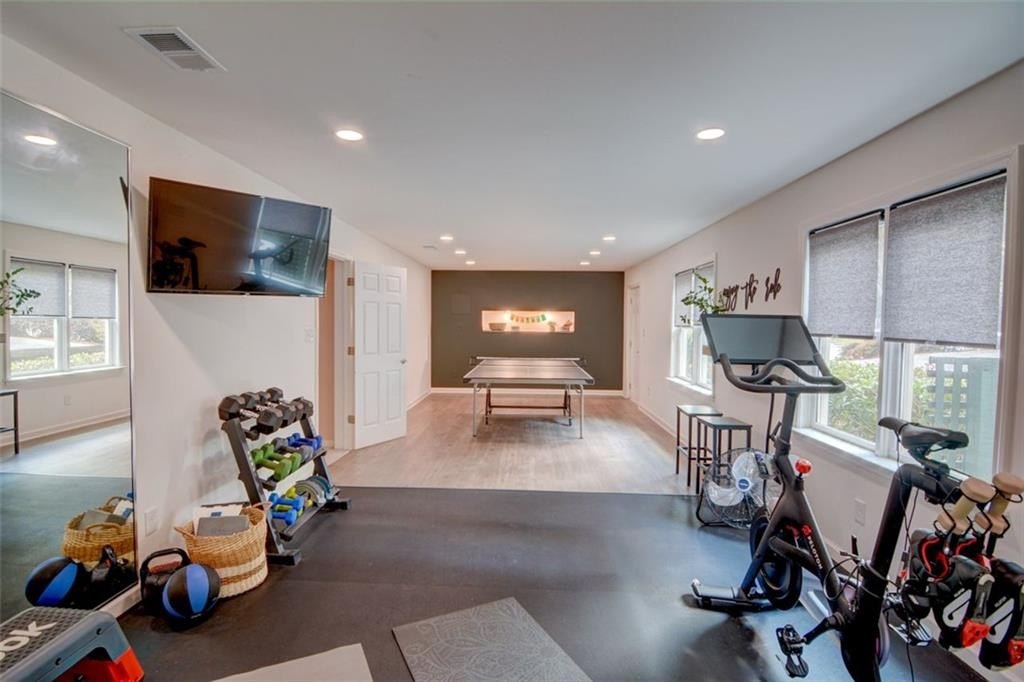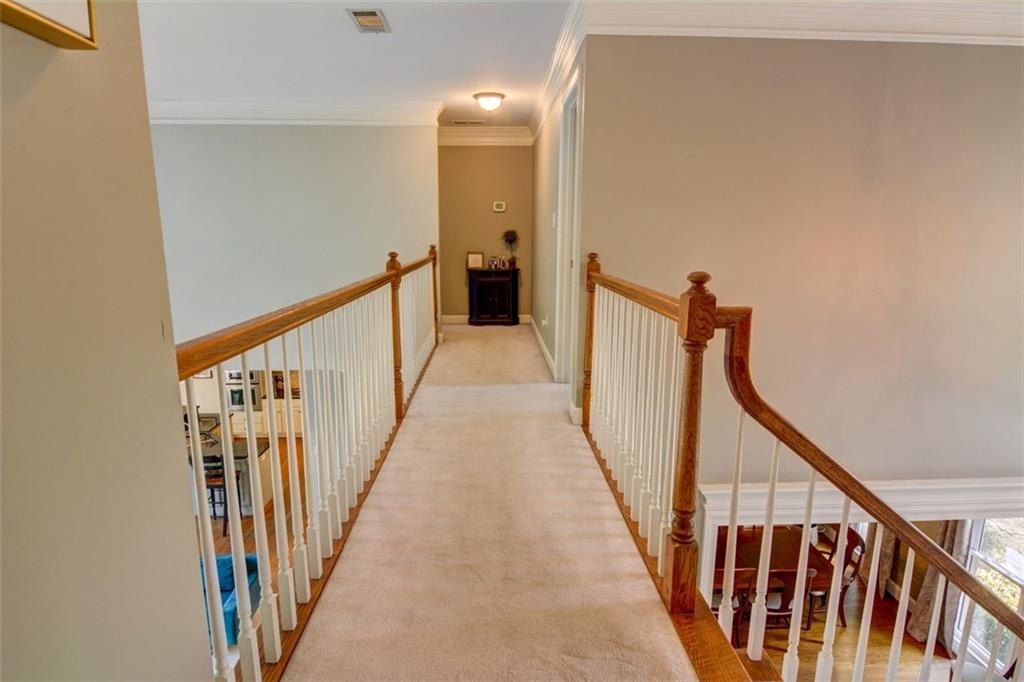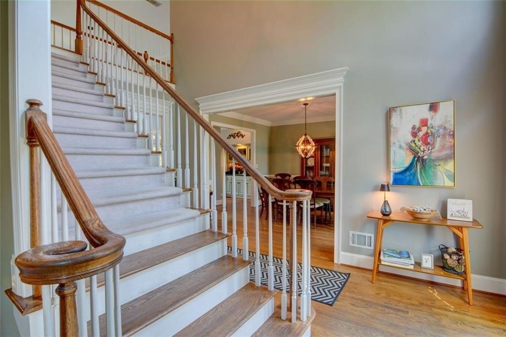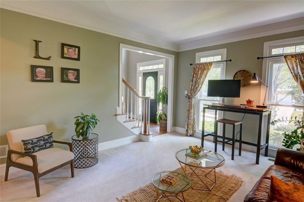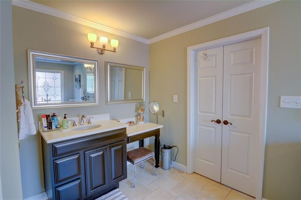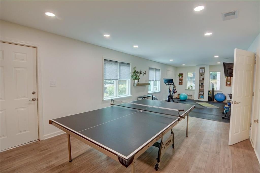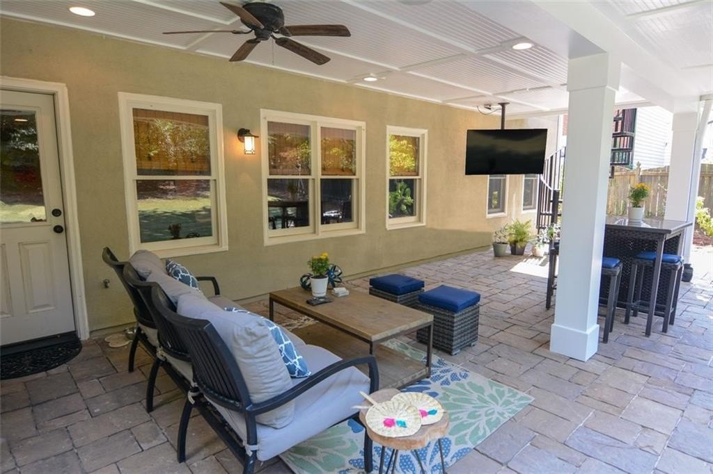 Welcome to this stunning home in the sought-after Amberfield swim/tennis community. Step inside to an impressive two-story foyer flanked by a formal living room and dining room, setting the tone for the elegance throughout. At the heart of the home, a spacious two-story living room showcases a dramatic wall of windows and arched built-ins, seamlessly connecting to a built-in coffee bar and a large eat-in kitchen with a bar-height island. The keeping room offers plenty of space for casual dining and gathering. A main-level guest suite with a full bath provides comfort and privacy for visitors. Upstairs, the oversized primary suite is a true retreat with its own sitting room and cozy fireplace. The spa-like en suite features a large shower, soaking tub, dual vanities, and a generous walk-in closet. You’ll also find a secondary bedroom with its own private bath and two additional bedrooms sharing a Jack-and-Jill bathroom, each with a separate vanity area. The terrace level offers incredible flexibility with a spacious den perfect for movie nights, a game and gym area, an alcove ideal for play or hobbies, and a half bath with space to convert to a full. Outside, enjoy beautifully landscaped grounds and a private, flat backyard with a patio and fire pit. A spacious upper deck with a spiral staircase provides the perfect spot for outdoor dining and entertaining. Located close to the Forum and Peachtree Corners Town Green with shopping, dining, and top-rated schools, this home combines comfort, style, and convenience in one remarkable package.