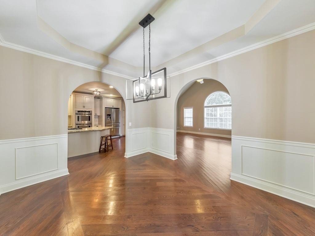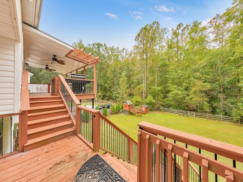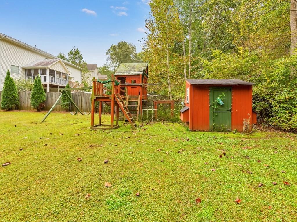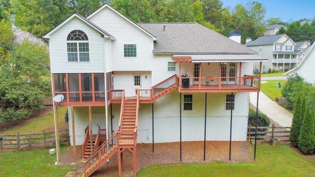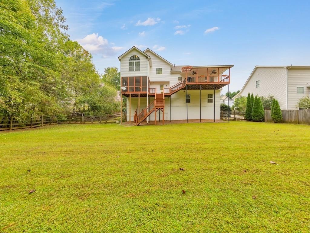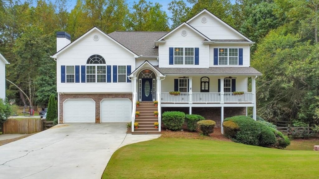 Welcome to this beautifully maintained and upgraded 4 bedroom, 3 bathroom split-level home in the sought-after Sable Trace community in Acworth. Situated on a spacious 0.67-acre private lot, this property offers multiple outdoor living areas and plenty of space to relax and entertain. The charming covered front porch invites you inside to a fireside family room with vaulted ceilings, which flows seamlessly to the separate dining room. The updated kitchen features white cabinets, stone countertops, a breakfast bar, and a view to the family room—perfect for everyday living and gatherings. Upstairs, the oversized primary suite impresses with tray ceilings, a vaulted sitting area, and a luxurious ensuite bath with double vanities, a soaking tub, and a separate shower. Two additional bedrooms share a full hall bath. The lower level offers fantastic flexibility with a spacious bonus room—ideal for a second living area, playroom, or office—a bedroom with access to the screened-in deck, a full bath, and a laundry room leading to the 2-car garage. There’s also an unfinished basement area off the garage for storage or future expansion. Enjoy the outdoors on the covered main-level deck, screened-in lower deck, or in the massive fenced backyard with lush green space. Located in the Etowah High School district, this home offers convenient access to Downtown Acworth, Downtown Woodstock, I-575, I-75, and endless shopping and dining options nearby. Come see it today!