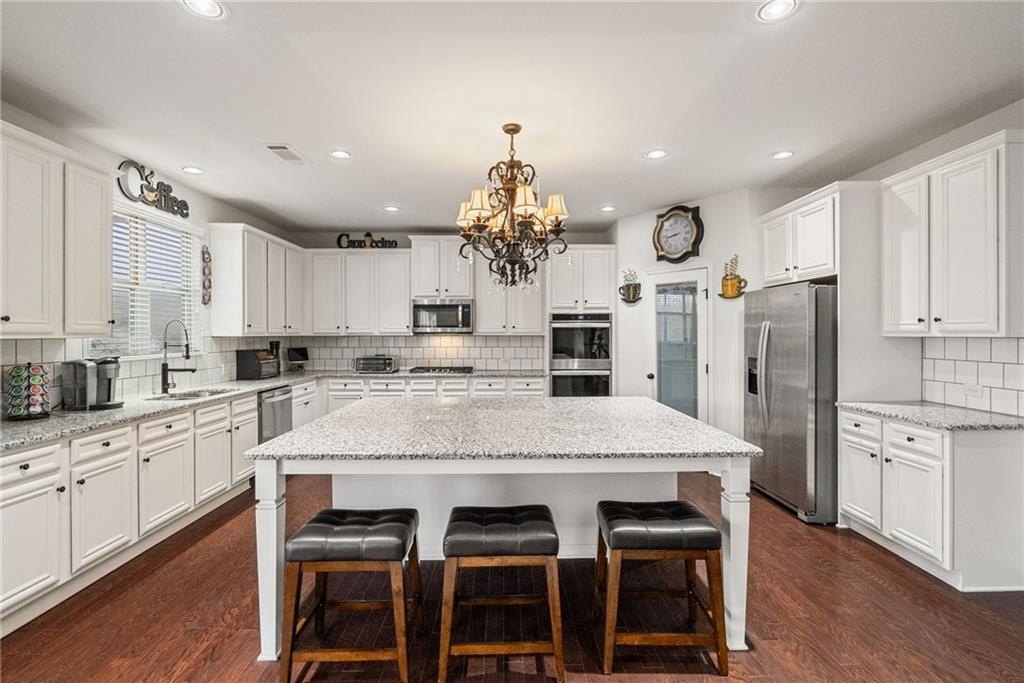 This house is the LARGEST FLOOR PLAN in the community, and it’s designed for both grand entertaining and comfortable everyday living. The main level features gleaming HARDWOOD FLOORS and a bright, open-concept flow, centered around a CHEF-INSPIRED KITCHEN. It boasts a large center island, a sunlit breakfast area, a spacious pantry, and a dedicated butler's pantry for effortless hosting. The kitchen seamlessly connects to a cozy family room anchored by a gas fireplace. The formal dining room provides a dedicated space for entertaining, while the convenient guest suite with an en-suite bath can also serve as a versatile MAIN-LEVEL OFFICE.