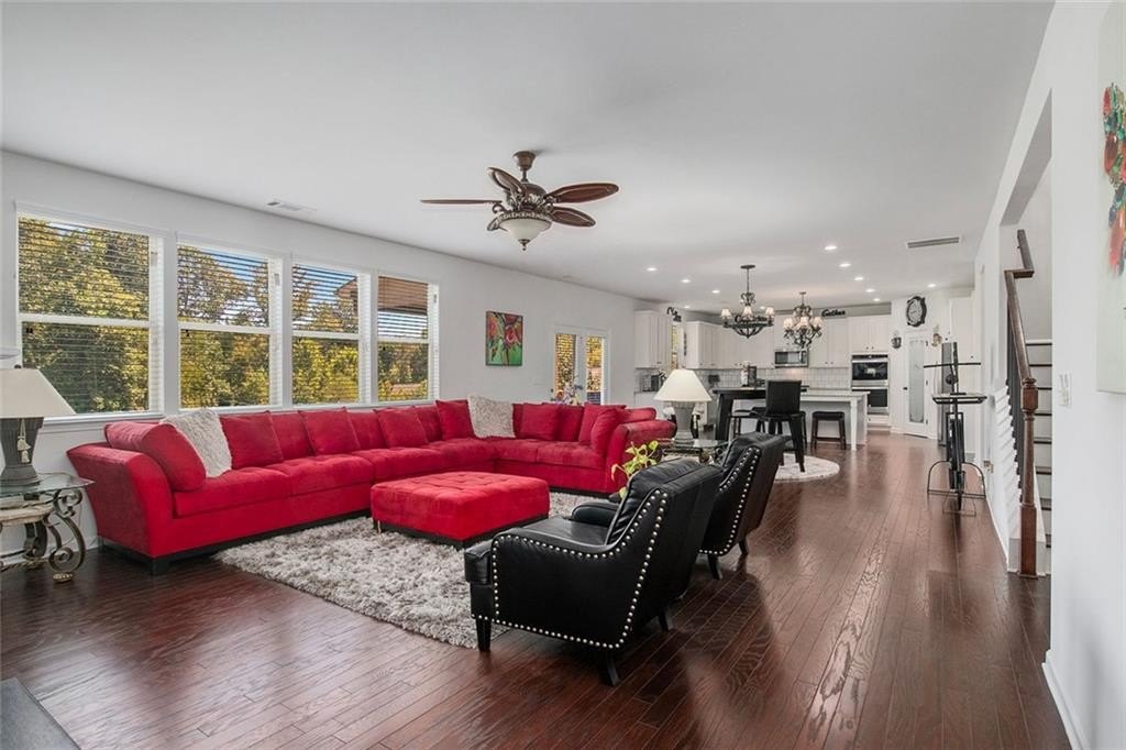 This stunning 5-bedroom, 4-bath, 5,768 sq. ft. home spans three finished levels, with the basement partially finished, blending comfort, function, and entertainment. The main level features a guest suite with en suite bath, an open kitchen with large island, breakfast area, spacious pantry, and a cozy family room with fireplace. A formal dining room seats eight, and a mudroom adds everyday convenience. Upstairs offers four bedrooms, including a luxurious owner's suite with spa bath and walk-in closet, plus a laundry room. The partially finished basement is an entertainer's dream, featuring a custom movie theater that seats up to ten for an unmatched cinematic experience. Step outside to your private patio. Community amenities include an Olympic-size pool, cabanas, and a playground.