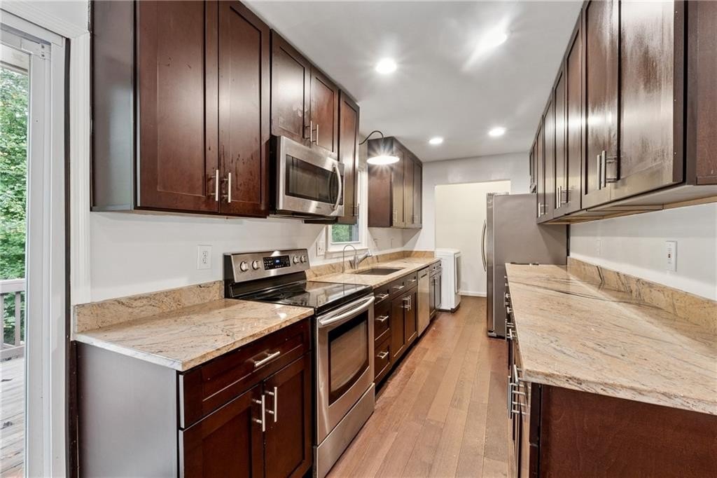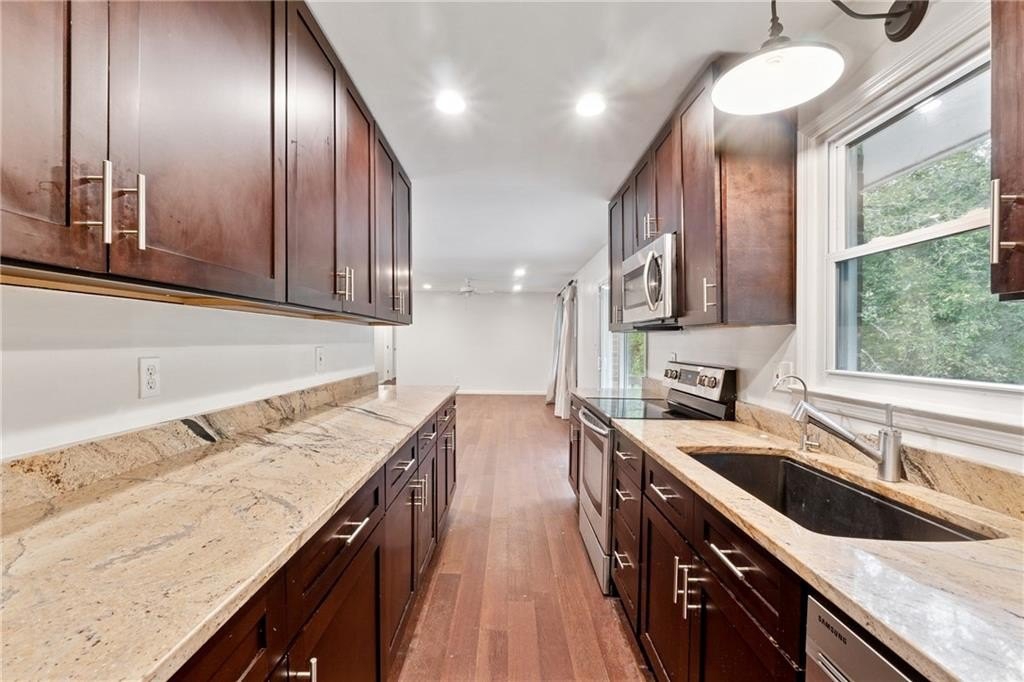 Discover this charming 4-sided brick ranch on a spacious corner lot in vibrant East Atlanta — offering over 3,000 square feet of living space with no HOA restrictions. Perfect for first-time buyers or savvy investors, this home features 3 bedrooms and 2 full baths, including a main-level primary suite with an updated bathroom, jetted tub, and stone countertop. The galley-style kitchen boasts stone counters, modern finishes, and easy access to the attached carport, with a laundry room conveniently nearby. Stylish laminate floors run throughout the main level, and the large fenced backyard provides a private outdoor retreat ideal for pets, entertaining, or gardening. The full basement is already framed and ready to be finished, with space for an additional bedroom, bathroom, storage, and living area — giving you endless possibilities to expand. Located just minutes from I-20 and all the dining, shopping, and nightlife East Atlanta has to offer, this move-in ready gem combines comfort, potential, and flexibility with the added bonus of no HOA. Schedule your tour today!
