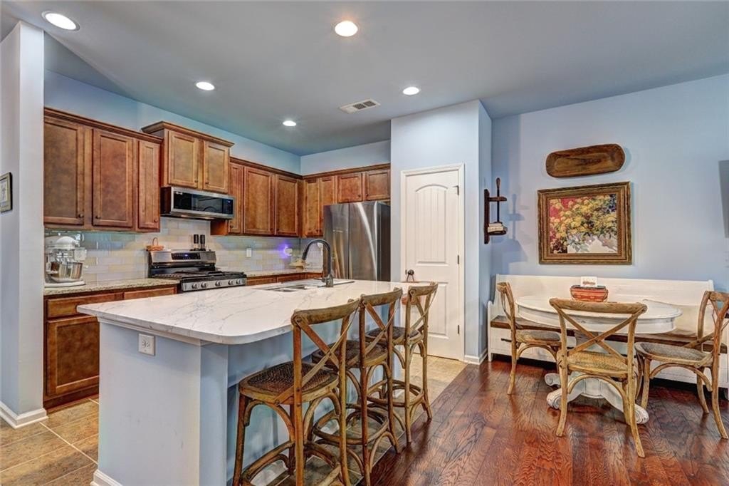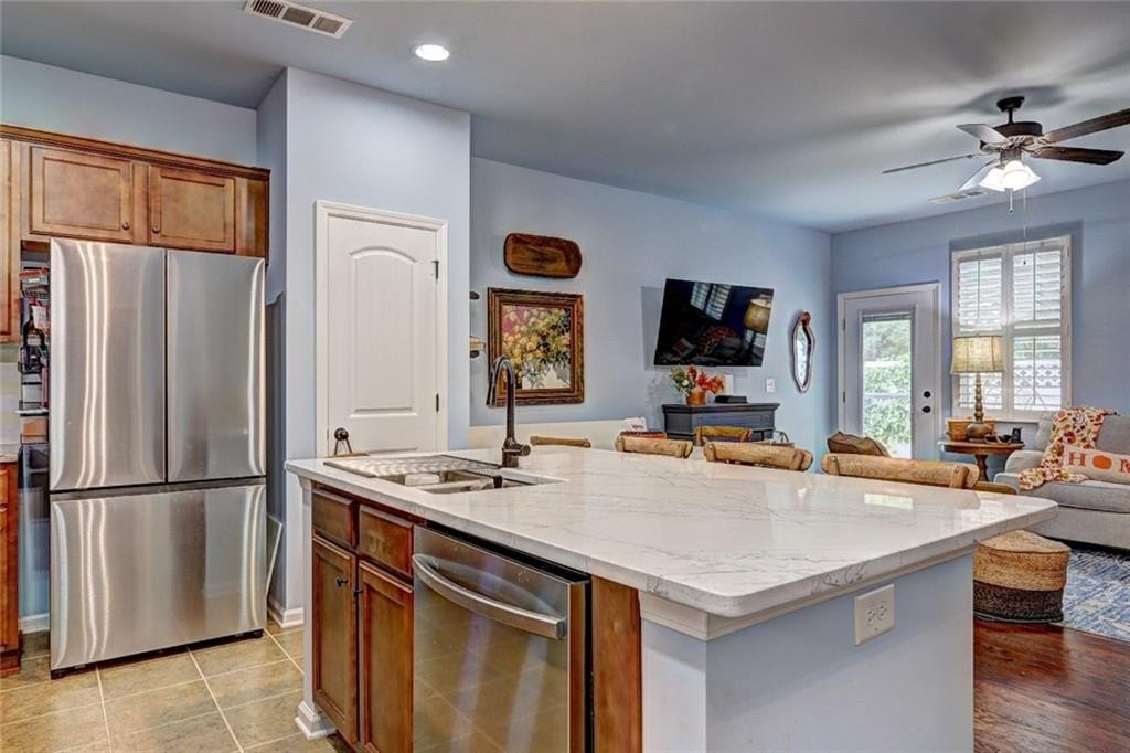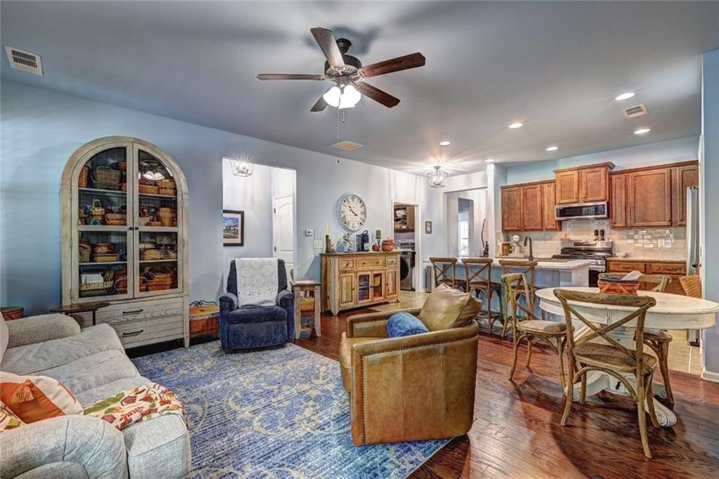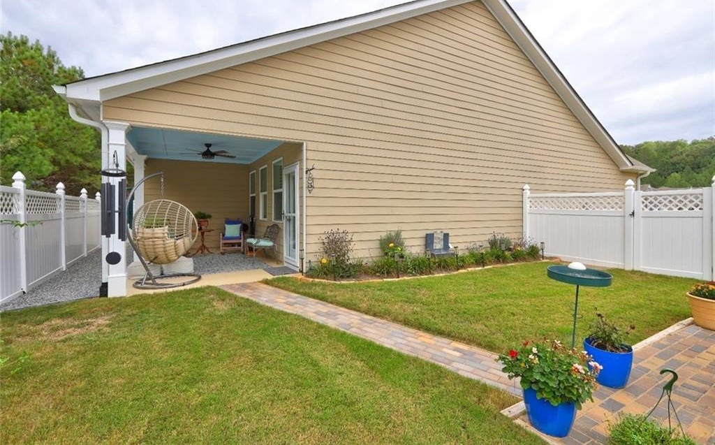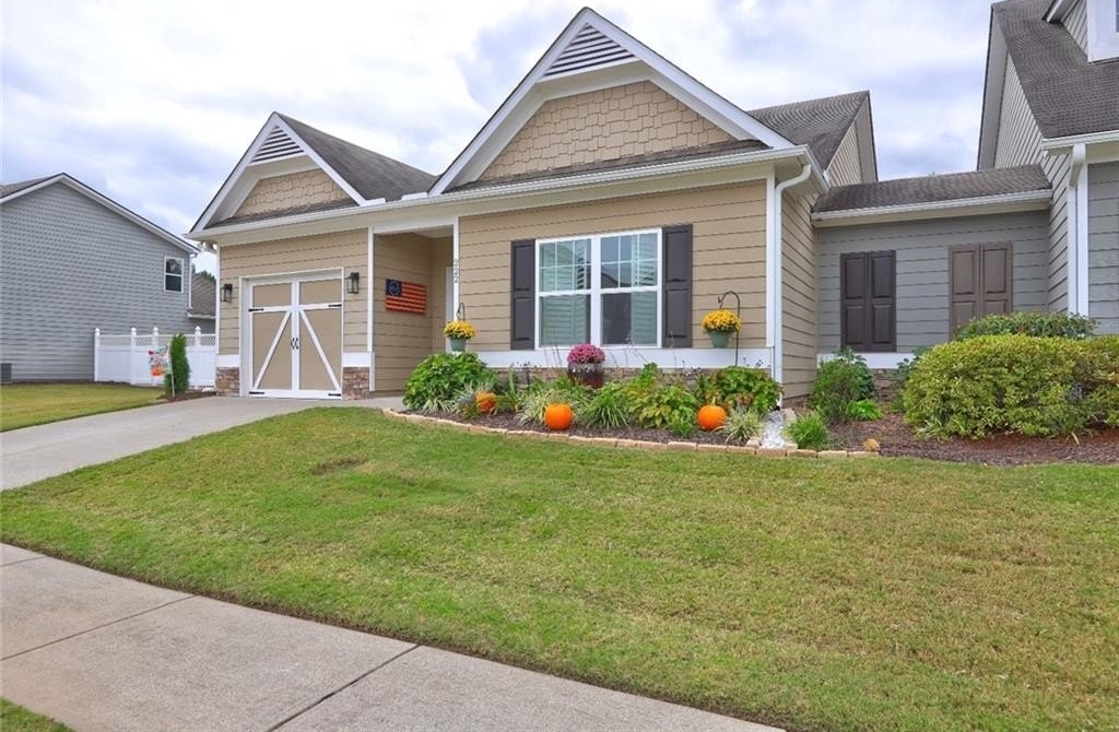 Welcome home to 222 River Terrace conveniently located in The Villages at River Pointe 55+ community. This beautiful condo is in move-in condition with two spacious bedrooms and two full bathrooms. Both bathrooms have new vanity tops and comfort height toilets. The owners suite has new double sinks, new faucets, lighted mirrors, added outlets and a makeup vanity. New paint throughout, new appliances, plantation shutters, new lighting, new storm doors with built in screens! So many updates!! Tons of storage space with luxurious custom installed closet shelves plus additional storage in the laundry room and garage. Gorgeous kitchen that overlooks the living area. New back splash, new extended island with new deep sink and upgraded faucet. Relax on the sealed back porch with its new ceiling fan and the most serene yard space with its new fence and brick patio. Enjoy the peace and quiet in one of the largest and private backyards in the neighborhood! Close proximity to all your needs with shops, restaurants, and hospital all nearby. Close to downtown Canton and all it has to offer!