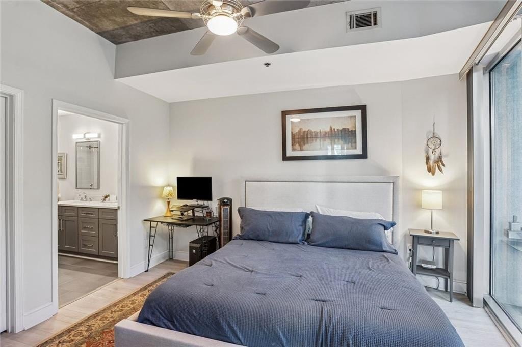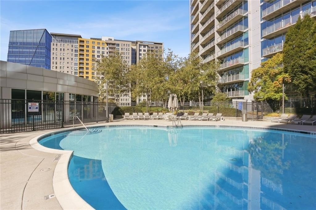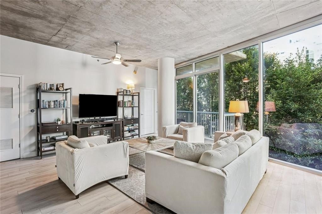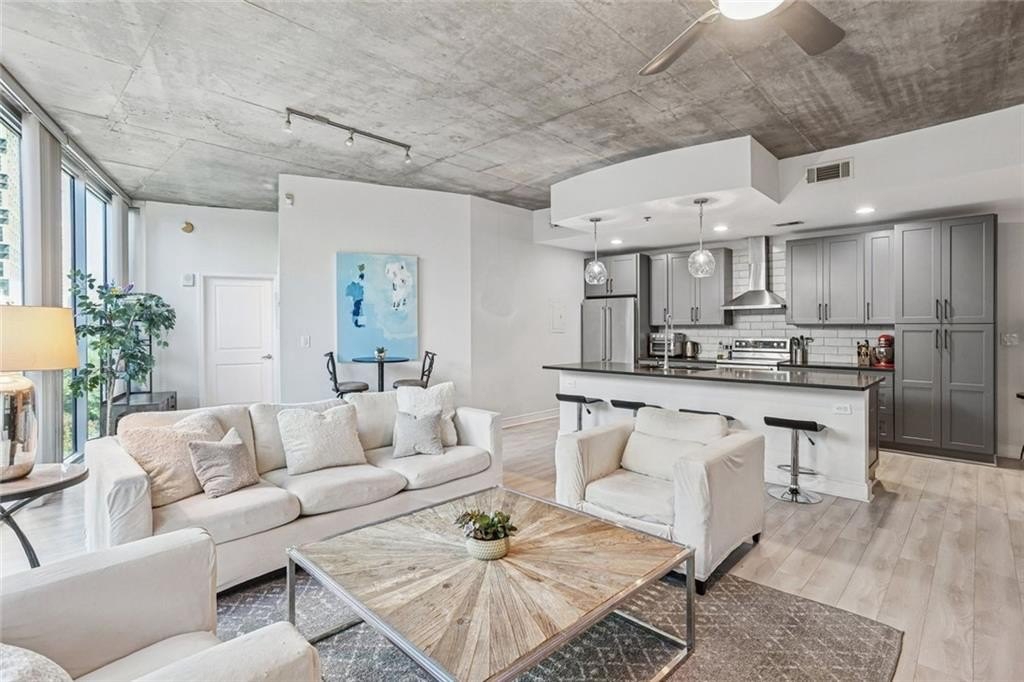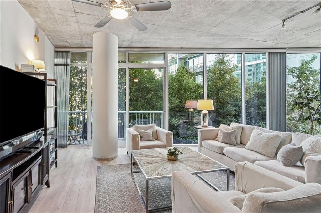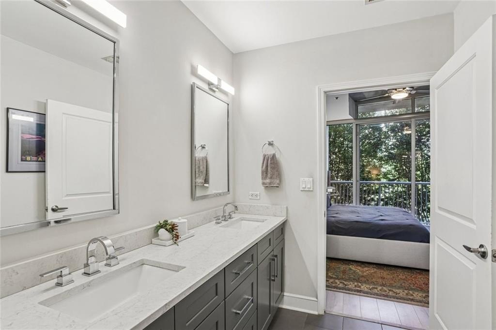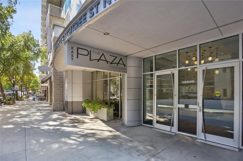 Welcome to your private oasis in the heart of Midtown! This thoughtfully renovated 2-bedroom condo offers a rare sense of privacy, surrounded by mature trees that provide a lush green backdrop in the warmer months and allow extra sunlight and skyline views in the winter. Featuring one of the largest floorplans in the building, this home boasts two true bedrooms with floor-to-ceiling windows and spacious walk-in closets. Step inside to all-new luxury vinyl plank flooring throughout. The fully updated kitchen includes an extended island that could seat 5 - 6 people, new cabinetry, leathered quartz countertops, an under-counter microwave, and stylish pendant lighting—perfect for cooking and entertaining. The open-concept living area easily accommodates a dining setup and flows seamlessly onto a balcony that spans nearly the entire width of the condo—ideal for enjoying morning coffee or evening sunsets. The north-facing guest bedroom includes a beautifully renovated en suite bathroom and custom closet. The spacious and private primary suite features a new double vanity, a spa-like walk-in shower, and added linen storage for convenience. A washer and dryer are included and discreetly tucked away in a closet near the kitchen. Plaza Midtown is renowned for its unbeatable location—just minutes from I-75/85—with exclusive elevator access to Publix. You're surrounded by top-rated restaurants offering everything from casual bites to fine dining, and just a short stroll to Piedmont Park, the 10th Street MARTA station, Georgia Tech, and Tech Square. Enjoy world-class amenities including 24-hour concierge service, a resort-style pool, a fitness center with city views, and a stylish clubroom. This move-in-ready condo offers a rare blend of tranquility and convenience—surprisingly quiet for such a vibrant location.