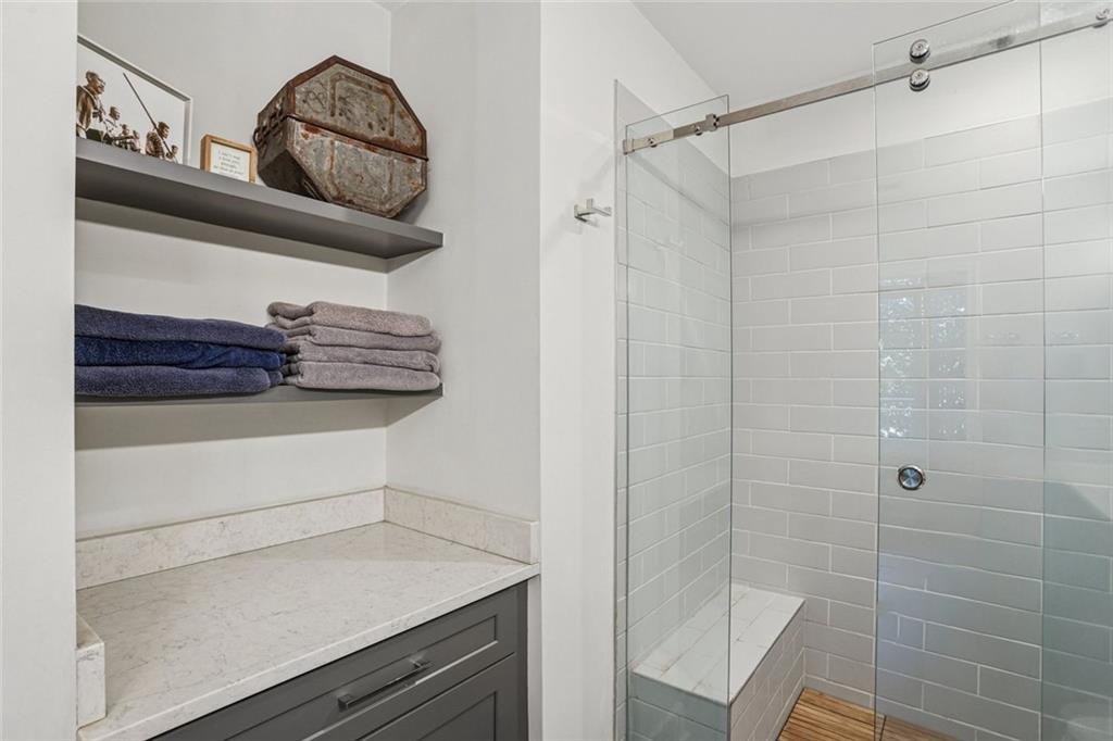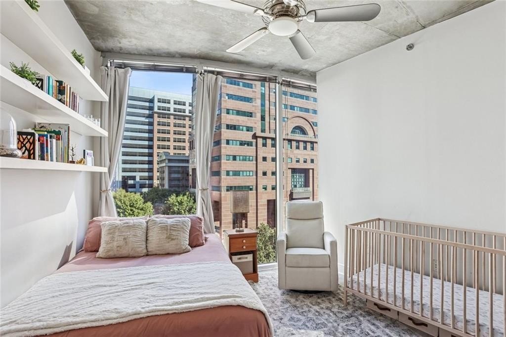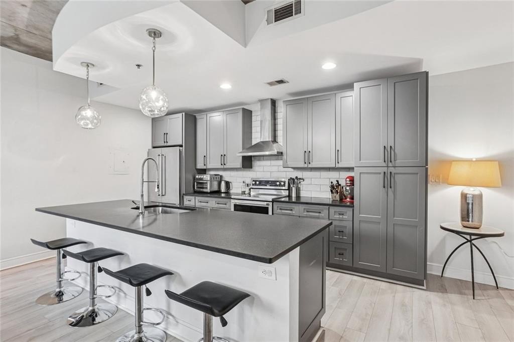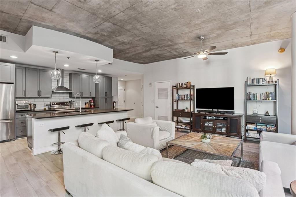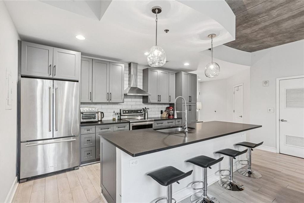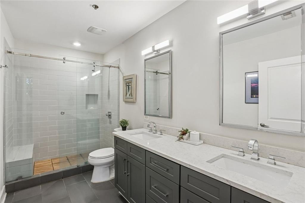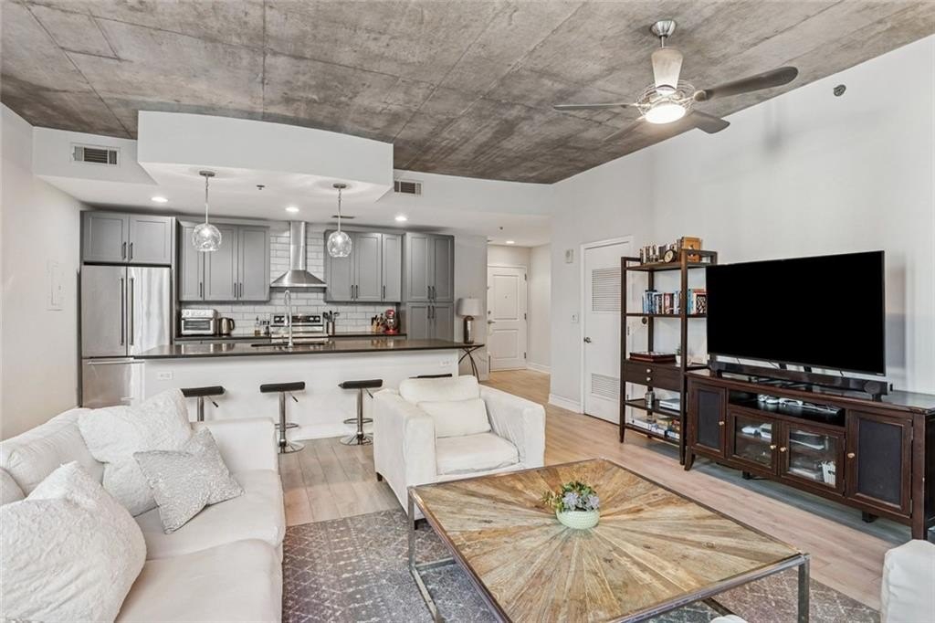 Welcome to your private oasis in the heart of Midtown! This thoughtfully renovated 2-bedroom condo offers a rare sense of privacy, surrounded by mature trees that provide a lush green backdrop in the warmer months and allow extra sunlight and skyline views in the winter. Featuring one of the largest floorplans in the building, this home boasts two true bedrooms with floor-to-ceiling windows and spacious walk-in closets. Step inside to all-new luxury vinyl plank flooring throughout. The fully updated kitchen includes an extended island that could seat 5 - 6 people, new cabinetry, leathered quartz countertops, an under-counter microwave, and stylish pendant lighting—perfect for cooking and entertaining. The open-concept living area easily accommodates a dining setup and flows seamlessly onto a balcony that spans nearly the entire width of the condo—ideal for enjoying morning coffee or evening sunsets. The north-facing guest bedroom includes a beautifully renovated en suite bathroom and custom closet. The spacious and private primary suite features a new double vanity, a spa-like walk-in shower, and added linen storage for convenience. A washer and dryer are included and discreetly tucked away in a closet near the kitchen. Plaza Midtown is renowned for its unbeatable location—just minutes from I-75/85—with exclusive elevator access to Publix. You're surrounded by top-rated restaurants offering everything from casual bites to fine dining, and just a short stroll to Piedmont Park, the 10th Street MARTA station, Georgia Tech, and Tech Square. Enjoy world-class amenities including 24-hour concierge service, a resort-style pool, a fitness center with city views, and a stylish clubroom. This move-in-ready condo offers a rare blend of tranquility and convenience—surprisingly quiet for such a vibrant location.