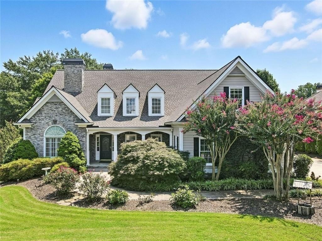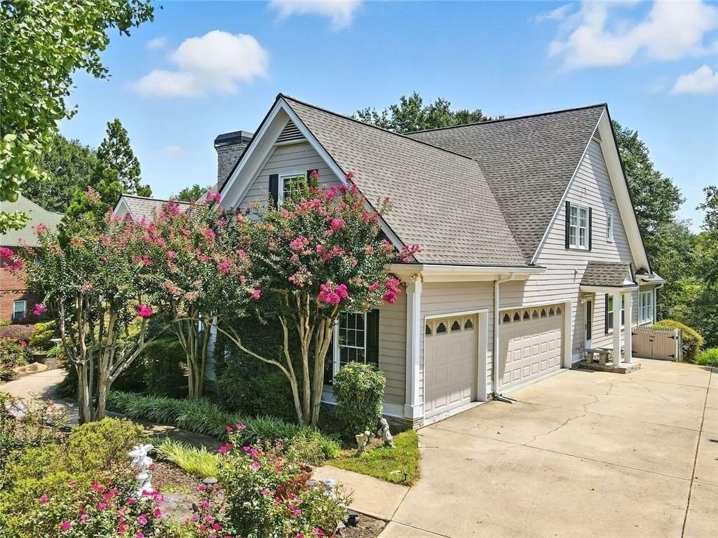 Overlooking manicured fairways and a sparkling lake, this home in Bradshaw Farm offers serene golf course living with space to stretch out and breathe. From the moment you arrive, the curb appeal is undeniable. Mature landscaping, wide driveway, and a stately front elevation set the tone for what’s inside.