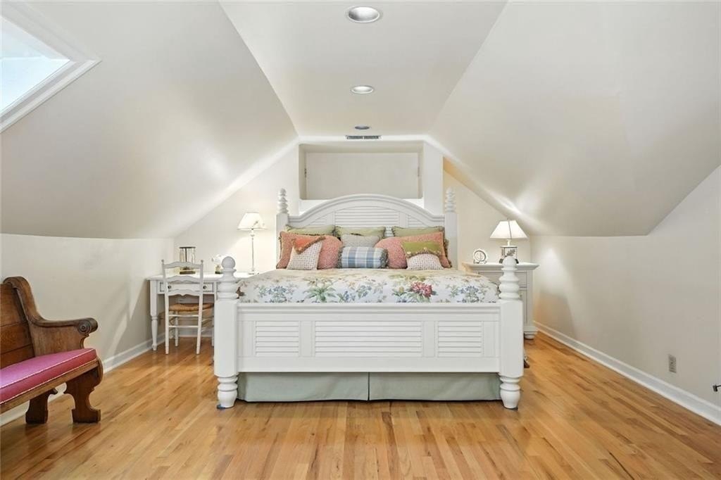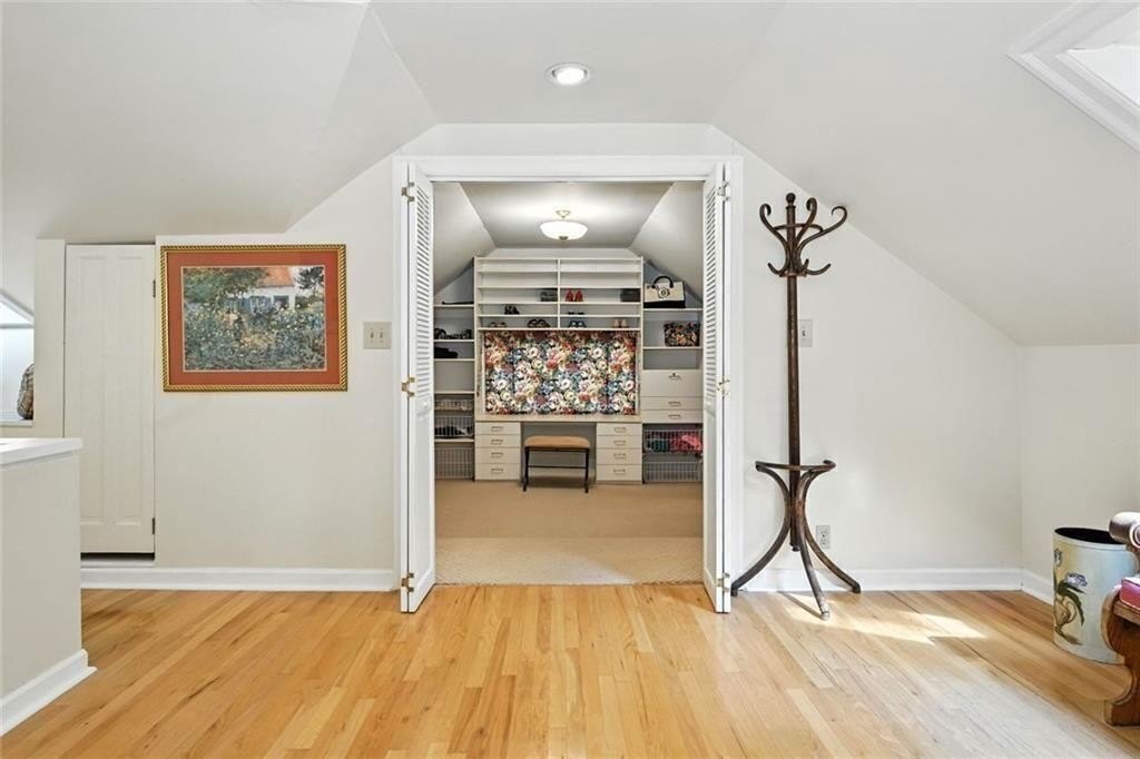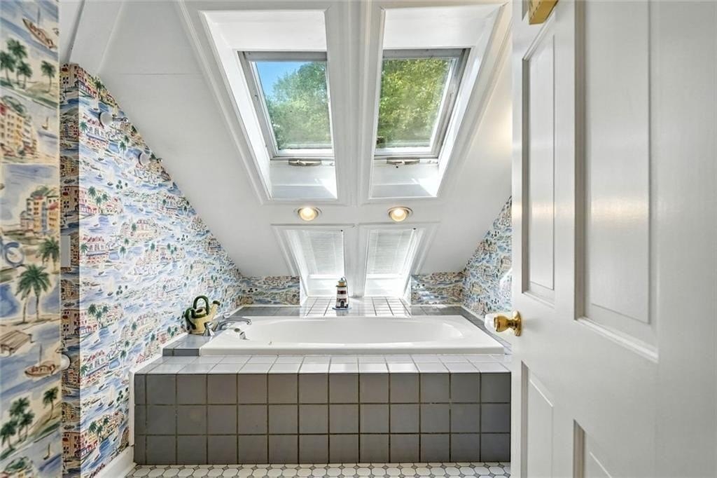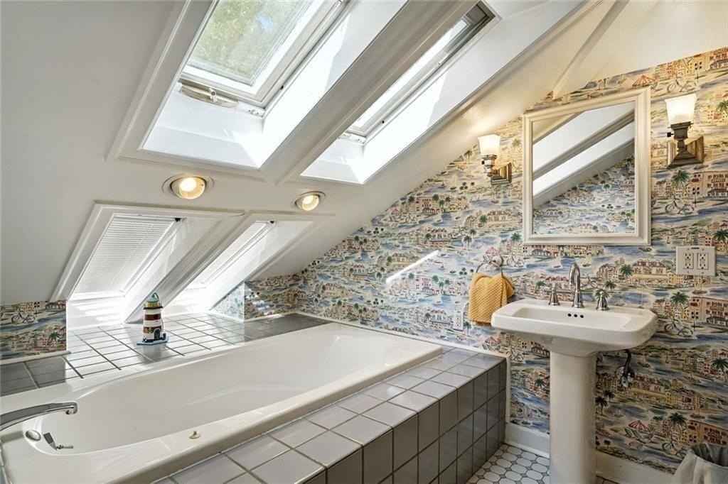 Upstairs, every room is fitted with Velux rollout windows for natural light and fresh air. The spacious primary suite features a walk-in shower, soaking tub tucked under a charming sloped ceiling, and a massive walk-in closet that stretches over 25 feet deep, plenty of space to spread out and stay organized.