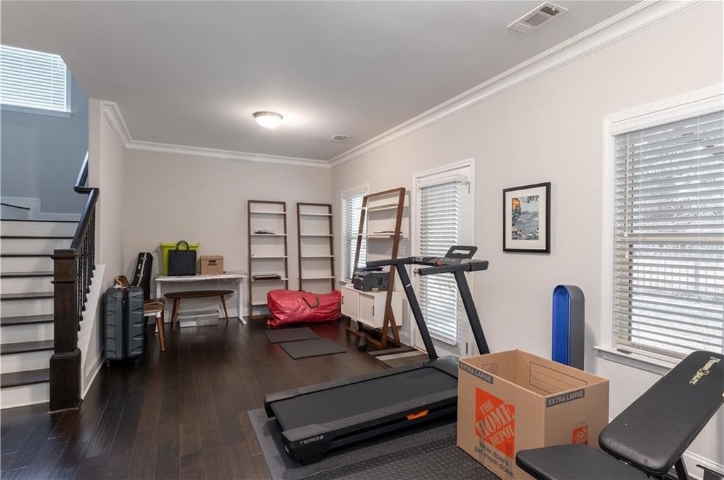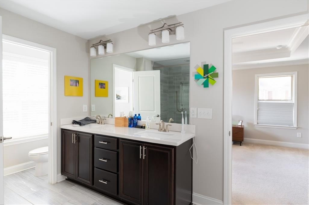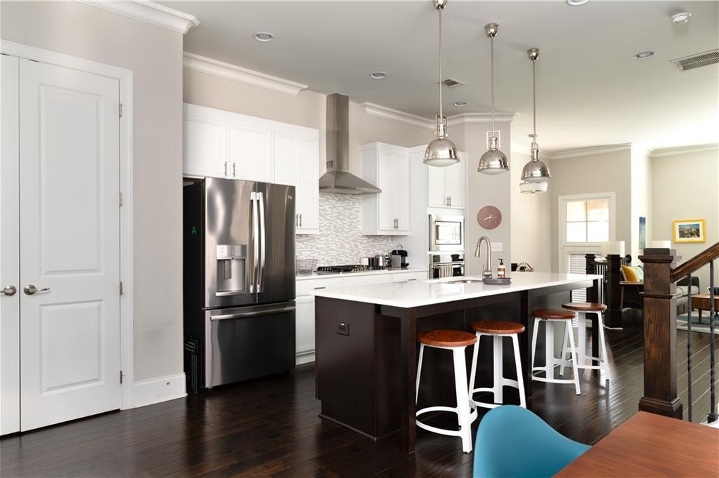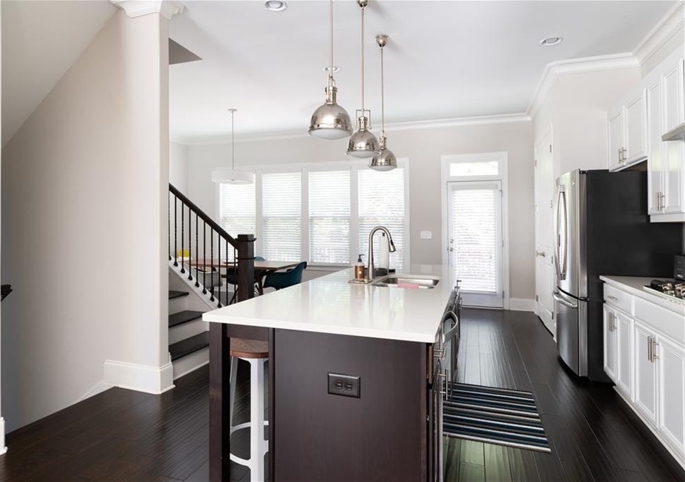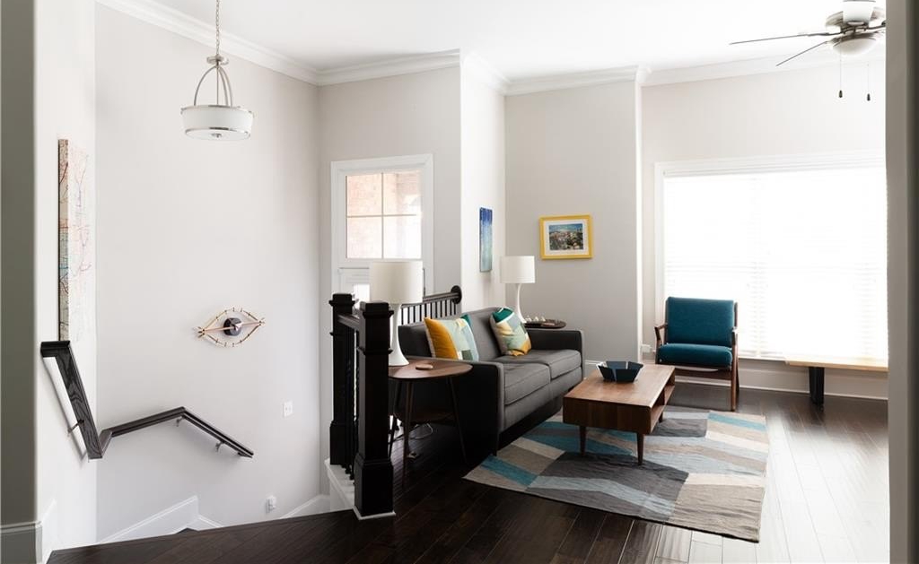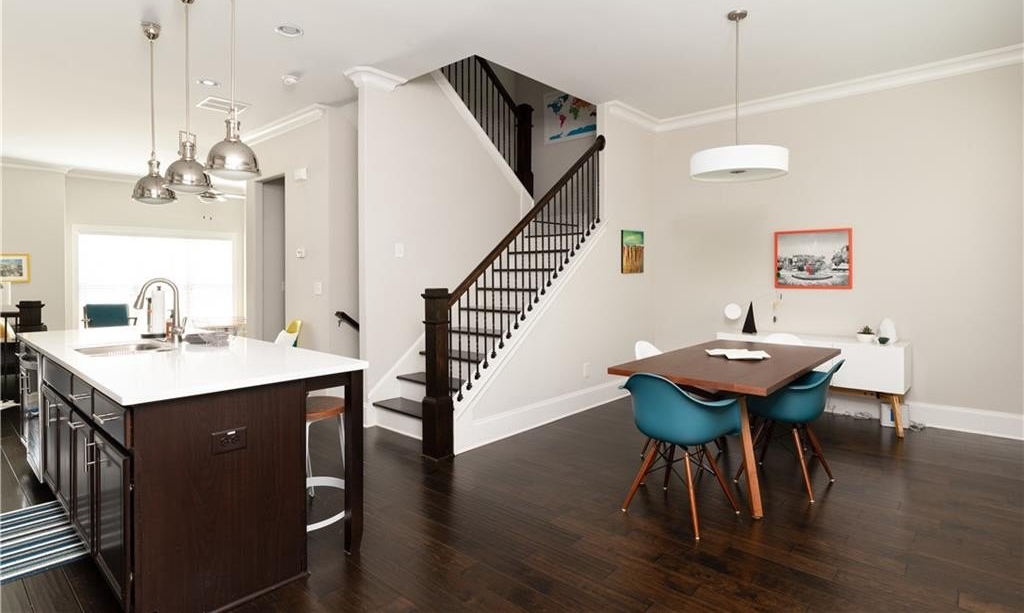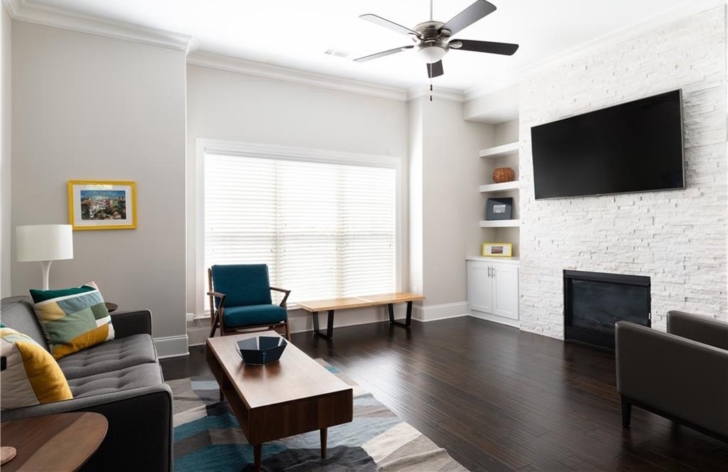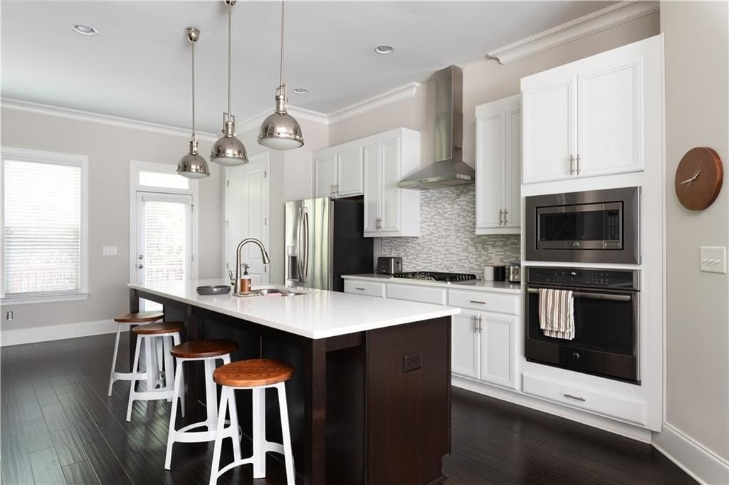 End unit townhome 2/3/1 with a walkout at Townsend at Toco Hills! The Arlington floorplan has a flex space located on the terrace level. Use it as an office, den, media, exercise or an extra bedroom. It has a full bath on the same floor. The main floor has all the modern amenities everyone is looking in an open concept floorplan. The living room flows into the kitchen to the dining room and out to the private deck that is surrounded by greenery. The living room is bathed in natural sunlight with custom bookshelves on either side of the fireplace with stone wall. The large kitchen has quartz countertops, espresso and white cabinets, 5 burner gas cooktop, and all stainless steel appliances with microwave oven and built in wall oven. The generous pantry can hold additional small kitchen appliances and all your snacks. Plenty of seating at the kitchen island and room for meal prep. Rounded wall corners at complete the architectural touches to thick baseboards, crown molding and high ceilings. The primary suite is exactly that - a generous sized suite to accommodate any size bed along with dressers and still room for a sitting area. The ensuite bath boats a double vanity, water closet and a shower with multiple shower heads and frameless shower door. The closet has plenty of room for your inner fashionista finds. The guest bedroom is across the hall so it is a perfect roommate plan with its own attached ensuite too. The laundry room - yes an actual room, is located on this floor too. The 2 car garage has plenty of space for additional storage. Location, location, location with convenience to Toco Hills with a Publix and a Kroger with lots of dining and shopping options. Ease of commute to CHOA, Emory University and the VA Hospital. Priced to sell!
