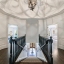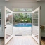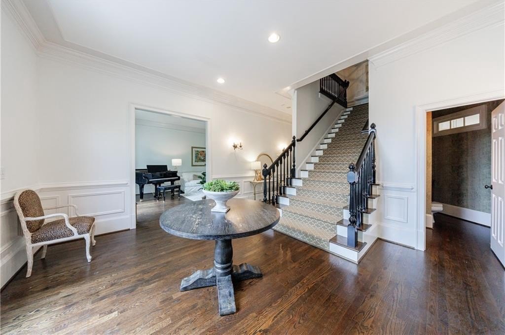 A thoughtfully designed rear foyer provides access to the four-car garage, a spacious mudroom, a casual powder room, and a laundry room with a utility sink. This area also offers easy access to the backyard for convenient poolside entertaining.
