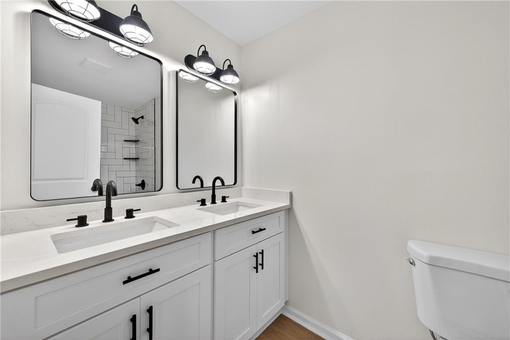 Completely renovated from top to bottom, this stunning Mableton home is truly move-in ready. Enjoy hardwoods and LVP flooring throughout, all new plumbing, and thoughtfully updated fixtures in every room. The brand-new kitchen and bathrooms feature modern finishes including quartz countertops, tile backsplash and solid wood, soft close cabinets. The expanded primary suite offers a private retreat with an ensuite bath, double vanity, and a walk-in closet. Outside, the oversized flat backyard is perfect for entertaining and play, all framed by mature landscaping that adds charm and privacy. Conveniently located with easy access to downtown Atlanta, The Battery, and I-285, this home offers modern updates at an unbeatable price. Agent/Owner.
