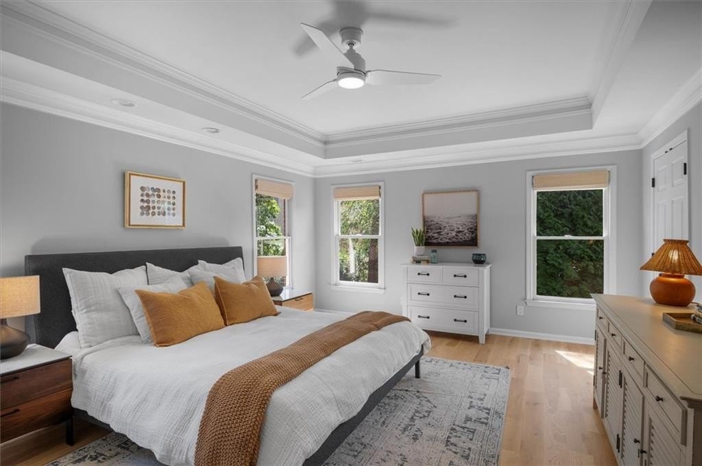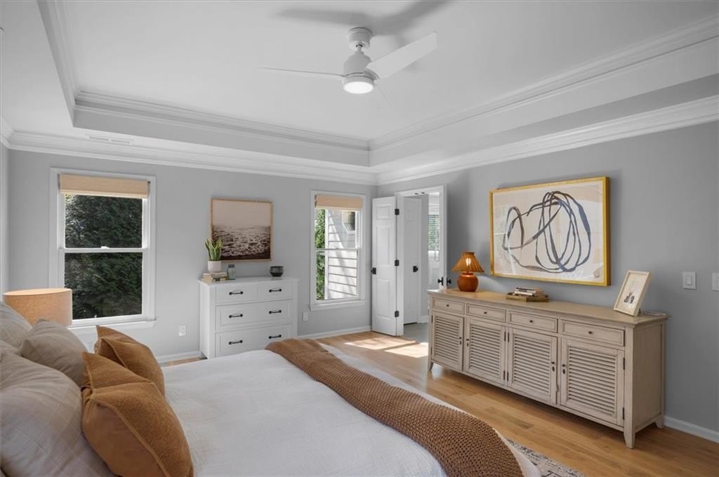 ceilings, a luxurious ensuite bath, and a custom walk-in closet with his-and-hers