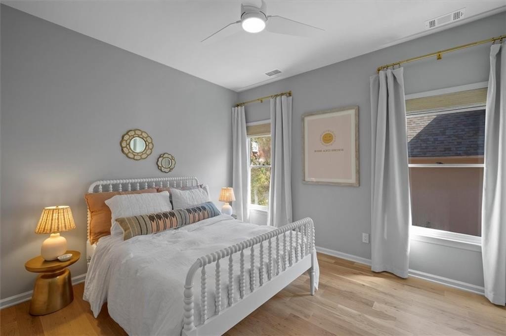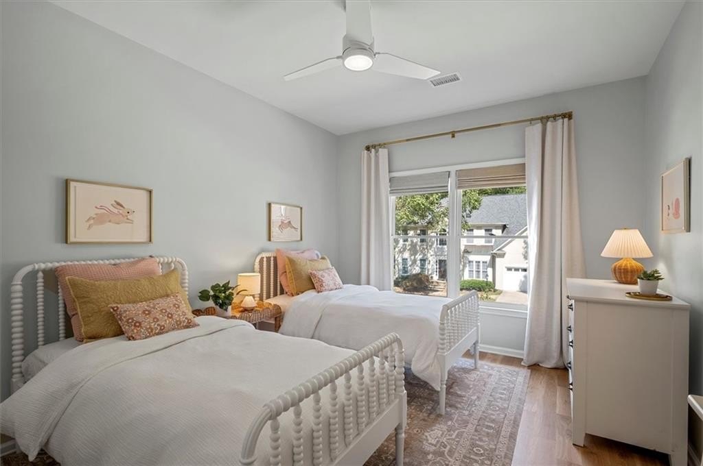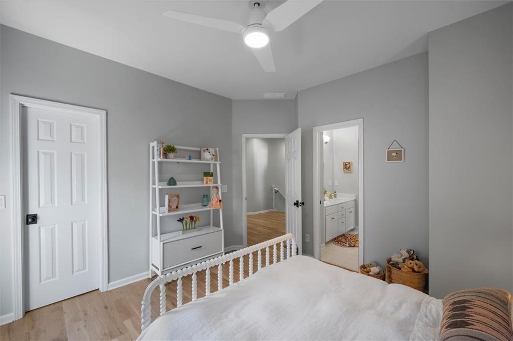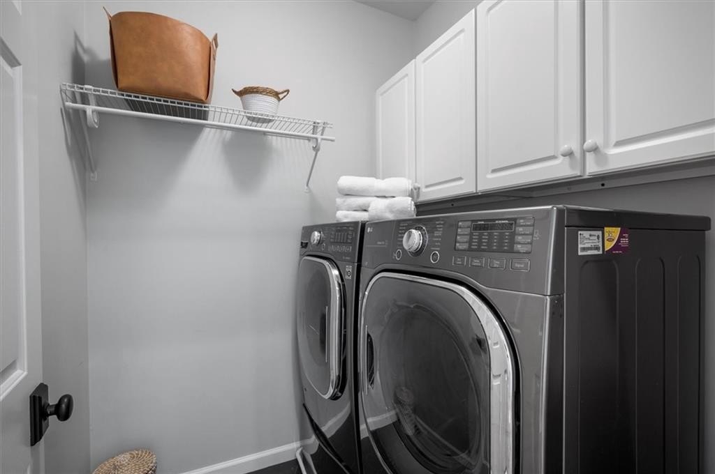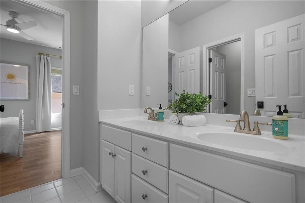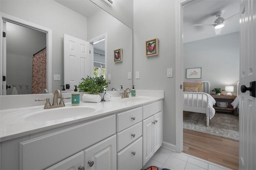 Upstairs, two secondary bedrooms share a Jack-and-Jill bathroom. The laundry room is