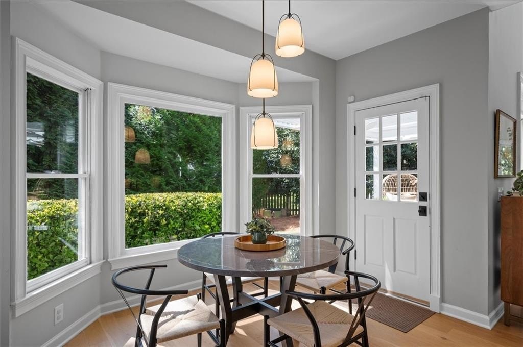 flows seamlessly into a bright dining area ideal for both casual meals and gatherings. A