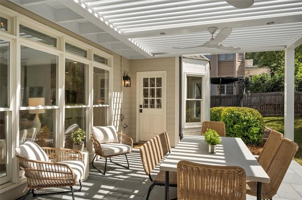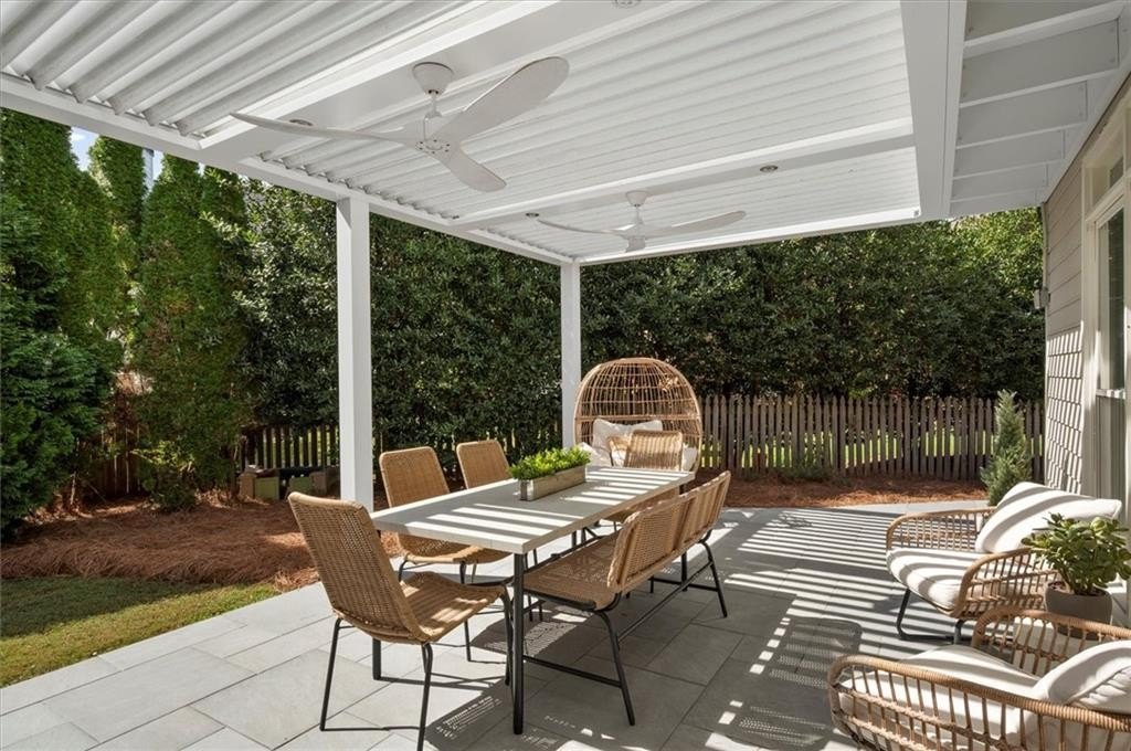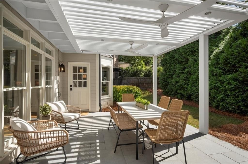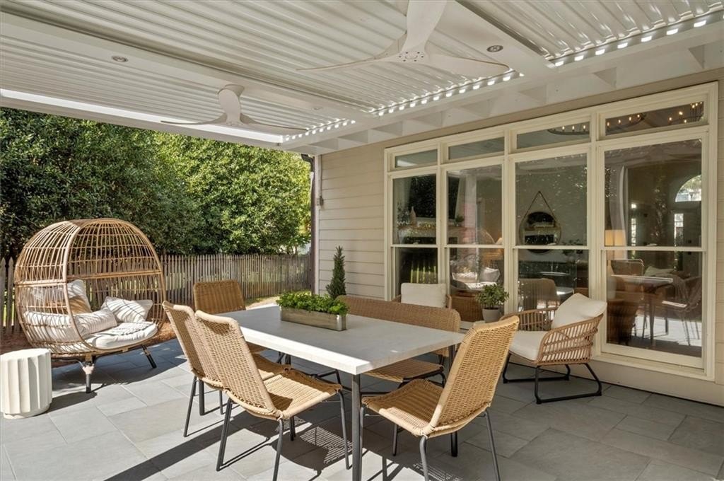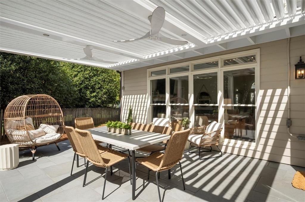 provides an ideal space for outdoor dining and entertaining, rain or shine.