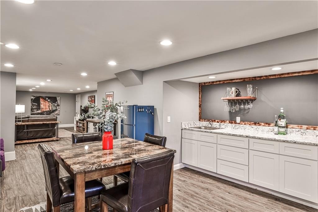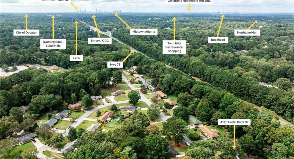 Tucked away on a quiet, tree-lined street in one of Tucker’s most peaceful and established neighborhoods, 4128 Cedar Knoll Drive is a beautifully updated brick ranch offering comfort, charm, and functionality in one of Tucker’s most peaceful and established neighborhoods. Situated on a generous 0.69-acre lot, this 4-bedroom, 3-bathroom home offers over 2,419 square feet of thoughtfully designed living space with room to relax, entertain, and enjoy life both indoors and out. Step inside to find light-filled living and dining areas that flow seamlessly in an open-concept layout, connecting the living room, dining room, and kitchen. Hardwood floors throughout the main level, crown molding, and large picture windows frame views of the spacious lawn, while the updated kitchen features custom cabinetry, granite countertops, stainless steel appliances, and direct access to the backyard. Whether hosting a dinner party or enjoying a quiet night in, the layout makes entertaining effortless and everyday living comfortable. Just off the dining and kitchen area, a hallway leads to three comfortable bedrooms and two beautifully appointed bathrooms, including a serene primary suite with its own private bath. This thoughtful layout keeps daily living convenient and connected while maintaining a sense of privacy and comfort. The fully finished basement offers valuable flexibility with a fourth bedroom, full bathroom, bonus room, and a cozy secondary living area—ideal for guests, a home gym, office, or creative studio. A charming wet bar adds convenience and character, while a spacious laundry room provides ample folding space and storage functionality. Just beyond, you'll find an additional oversized storage room—perfect for seasonal items, tools, or hobby gear. Open up your double door to your covered patio off of the side driveway, complete with string lights, a ceiling fan, and plenty of space to gather, lounge, or enjoy an evening by the fire pit. Outdoor living is truly a standout feature of this home. Just off the kitchen, a sunny main-level patio surrounded by garden beds and herb planters provides the perfect setting for morning coffee or evening cocktails. The fully fenced backyard is lush, level, and private—ideal for pets, play, and backyard entertaining. A dedicated gravel area features a stylish stock tank pool with a small deck and seating area for cooling off in the warmer months. The adjacent concrete pad offers additional space for grilling, games, or hosting gatherings with friends. Additional highlights include an attached two-car garage, an oversized front driveway, and a secondary driveway leading to the basement-level entrance—offering both convenience and ample parking. With plenty of storage throughout and well-maintained landscaping from front to back, this home truly blends comfort, charm, and practicality. Located just minutes from downtown Tucker, Northlake, and Decatur, with quick access to restaurants, shopping, I-285, I-85, and Highway 78, 4128 Cedar Knoll Drive delivers a peaceful retreat without sacrificing convenience. If you’re looking for a home to grow, host, or unwind—this home checks every box.