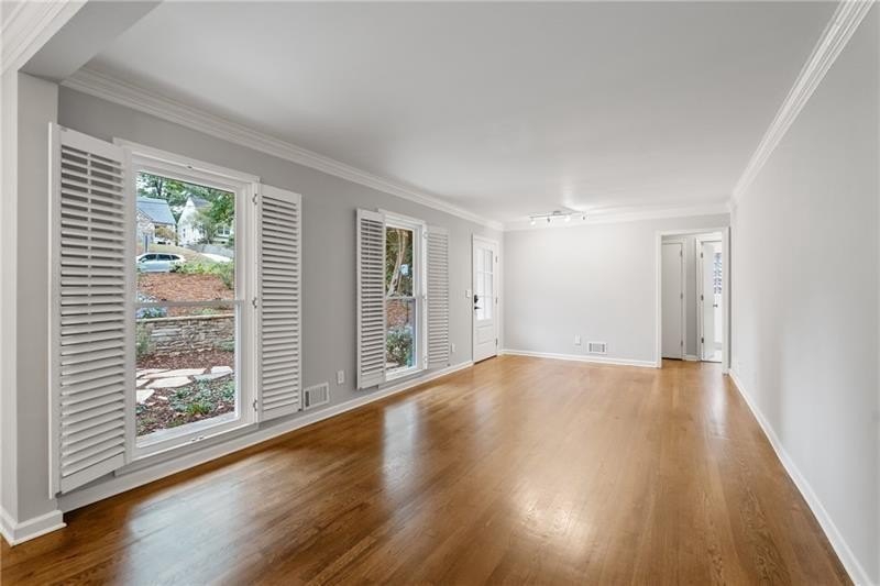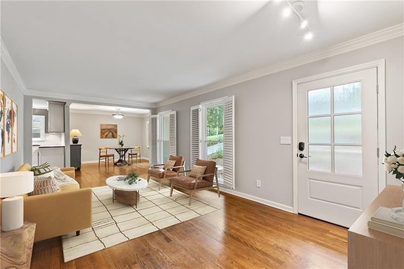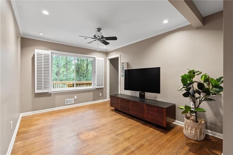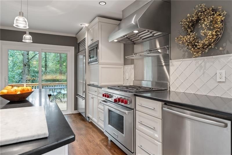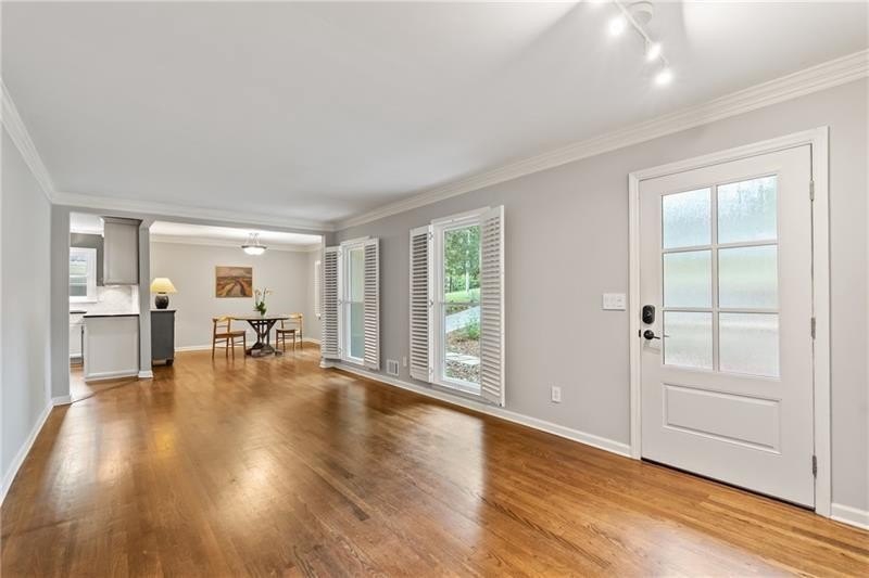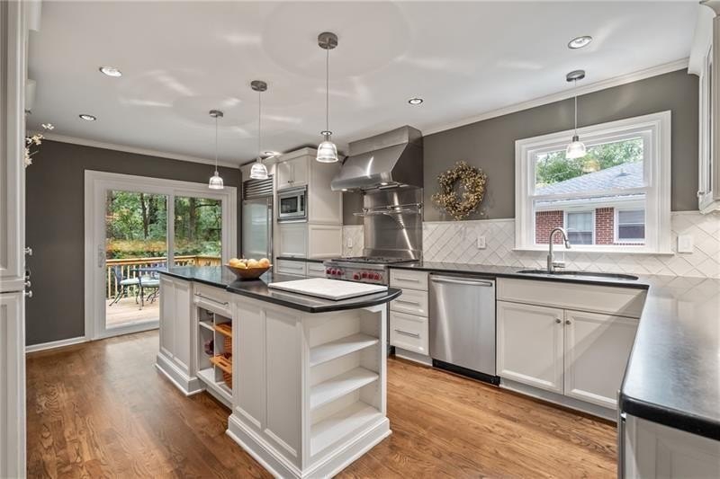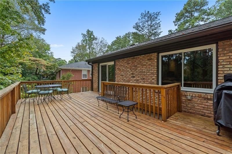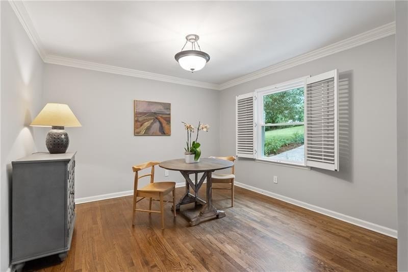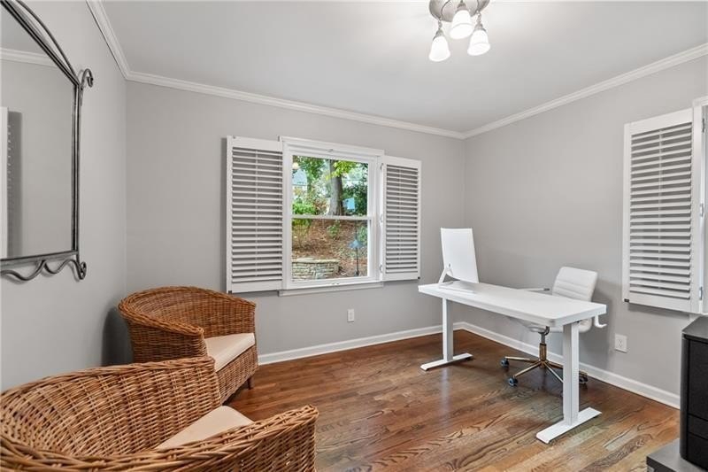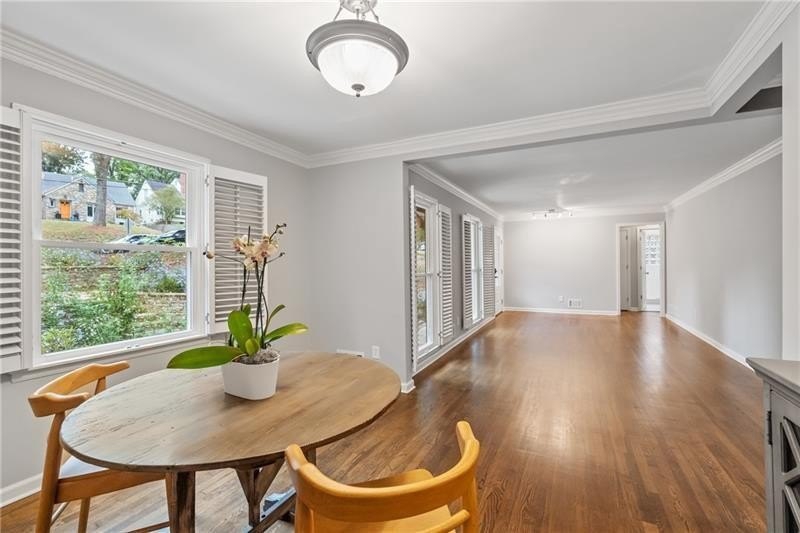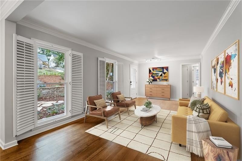 Classic Morningside Beauty with Modern Charm THAT IS MUCH BIGGER THAN IT LOOKS FROM THE OUTSIDE! Nestled on a serene, wooded lot in the heart of Morningside, this timeless home blends classic character with thoughtful updates and designer finishes. Floor-to-ceiling windows with plantation shutters bathe the living room in natural light, highlighting the hardwood floors, crown and toe molding, inviting a sense of warmth. The floor plan offers effortless entertaining with a neutral color palette throughout. A gracious dining room connects seamlessly to the living room and kitchen, creating an ideal gathering space for family and friends. The chef’s kitchen—beautifully designed by Kitchensmith—showcases honed Absolute Black granite countertops, elegant pendant lighting, glass-front cabinetry and a center island with multiple built-ins. Every detail is purposeful, from the pull-out shelving and designer backsplash to the Wolf range, Sub-Zero refrigerator, and Bosch dishwasher. A sliding glass door opens to a private deck perfect for morning coffee, grilling, or unwinding beneath the trees. On the main level are two bedrooms and two baths. The terrace level offers another bedroom and full bath featuring a clawfoot tub, pedestal sink, shower, and timeless finishes. The finished terrace level provides flexible living spaces, ideal for a home office, guest suite, and media room. High ceilings, double-door closets, and French doors open to a private covered patio, overlooking the treetops. A dedicated storage room with built-in shelving offers even more functionality. The walk-in laundry room adds convenience with a stainless-steel utility sink and ample storage. Outside, an established native landscape and edible garden, professionally designed, delivers low-maintenance beauty year-round. The shed in the backyard is perfect for storing off-season items. Enjoy multiple outdoor living areas, including an upper deck and shaded lower patio, your own tranquil oasis in one of Atlanta’s most desirable neighborhoods. Enduring craftsmanship of this well-built gem in Morningside, is move-in ready and waiting to welcome you home. Do not miss the extensive list of upgrades and plantings surrounding the home in the picture section.
