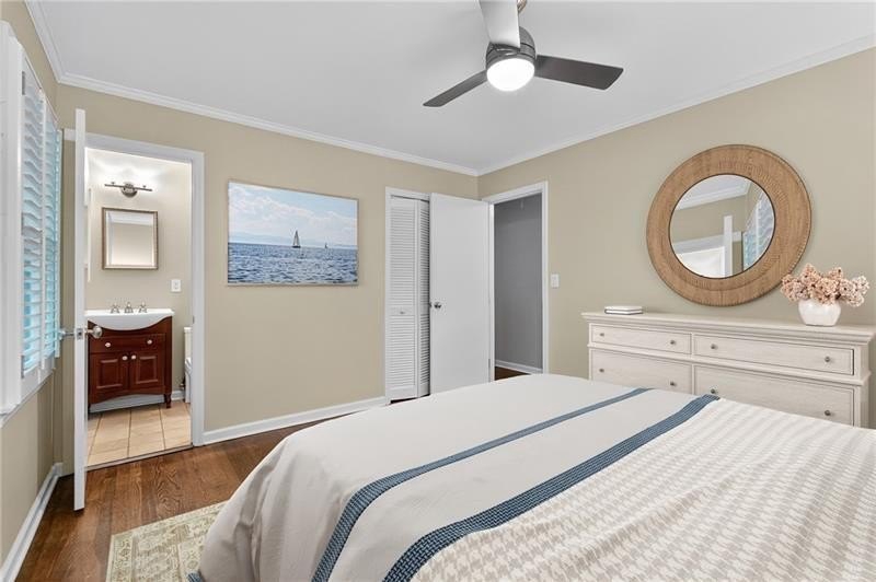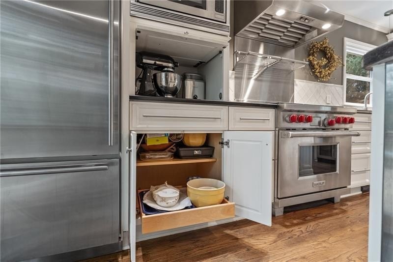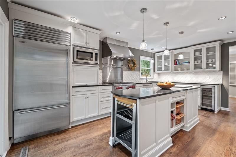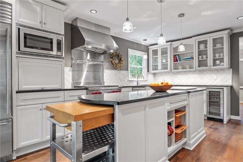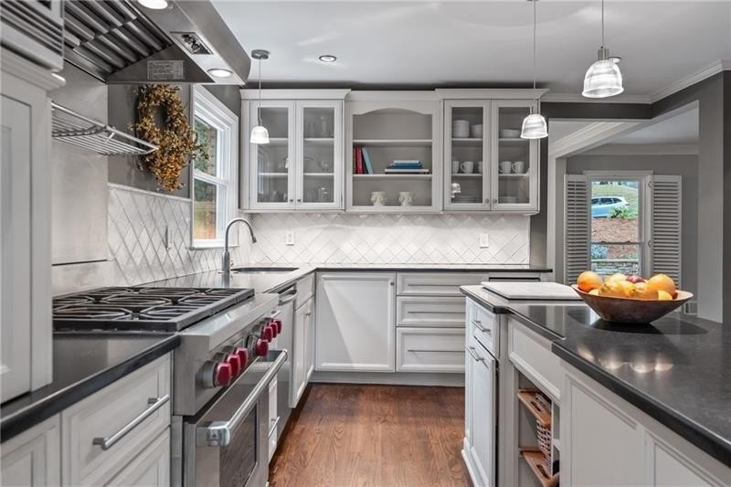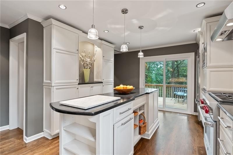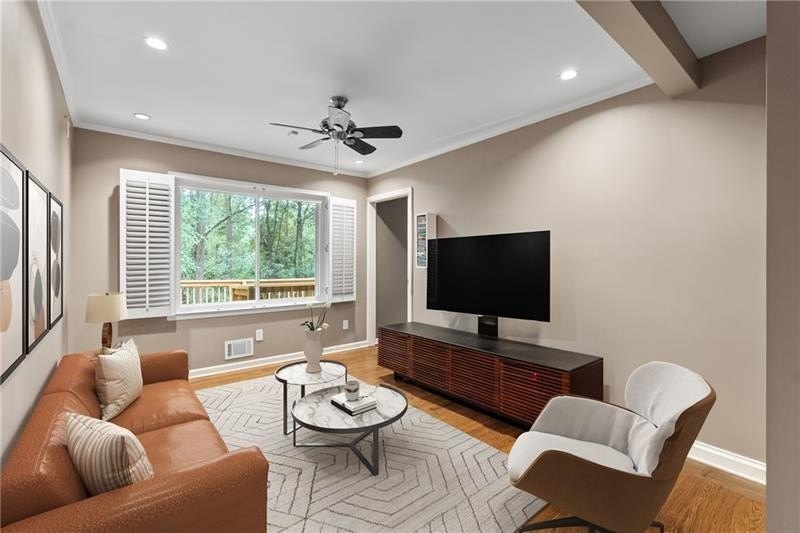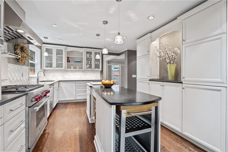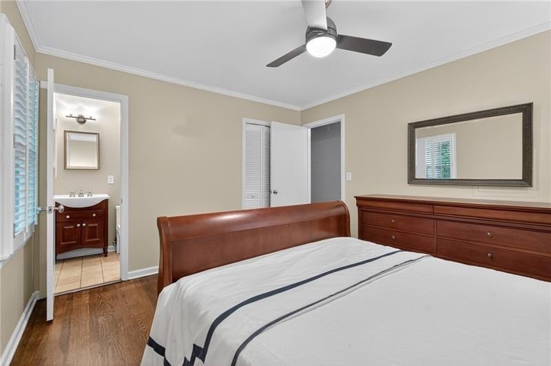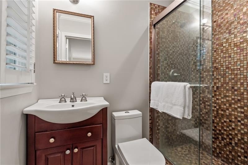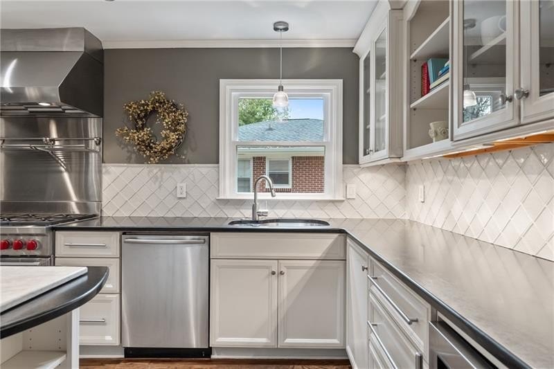 Classic Morningside Beauty with Modern Charm THAT IS MUCH BIGGER THAN IT LOOKS FROM THE OUTSIDE! Nestled on a serene, wooded lot in the heart of Morningside, this timeless home blends classic character with thoughtful updates and designer finishes. Floor-to-ceiling windows with plantation shutters bathe the living room in natural light, highlighting the hardwood floors, crown and toe molding, inviting a sense of warmth. The floor plan offers effortless entertaining with a neutral color palette throughout. A gracious dining room connects seamlessly to the living room and kitchen, creating an ideal gathering space for family and friends. The chef’s kitchen—beautifully designed by Kitchensmith—showcases honed Absolute Black granite countertops, elegant pendant lighting, glass-front cabinetry and a center island with multiple built-ins. Every detail is purposeful, from the pull-out shelving and designer backsplash to the Wolf range, Sub-Zero refrigerator, and Bosch dishwasher. A sliding glass door opens to a private deck perfect for morning coffee, grilling, or unwinding beneath the trees. On the main level are two bedrooms and two baths. The terrace level offers another bedroom and full bath featuring a clawfoot tub, pedestal sink, shower, and timeless finishes. The finished terrace level provides flexible living spaces, ideal for a home office, guest suite, and media room. High ceilings, double-door closets, and French doors open to a private covered patio, overlooking the treetops. A dedicated storage room with built-in shelving offers even more functionality. The walk-in laundry room adds convenience with a stainless-steel utility sink and ample storage. Outside, an established native landscape and edible garden, professionally designed, delivers low-maintenance beauty year-round. The shed in the backyard is perfect for storing off-season items. Enjoy multiple outdoor living areas, including an upper deck and shaded lower patio, your own tranquil oasis in one of Atlanta’s most desirable neighborhoods. Enduring craftsmanship of this well-built gem in Morningside, is move-in ready and waiting to welcome you home. Do not miss the extensive list of upgrades and plantings surrounding the home in the picture section.