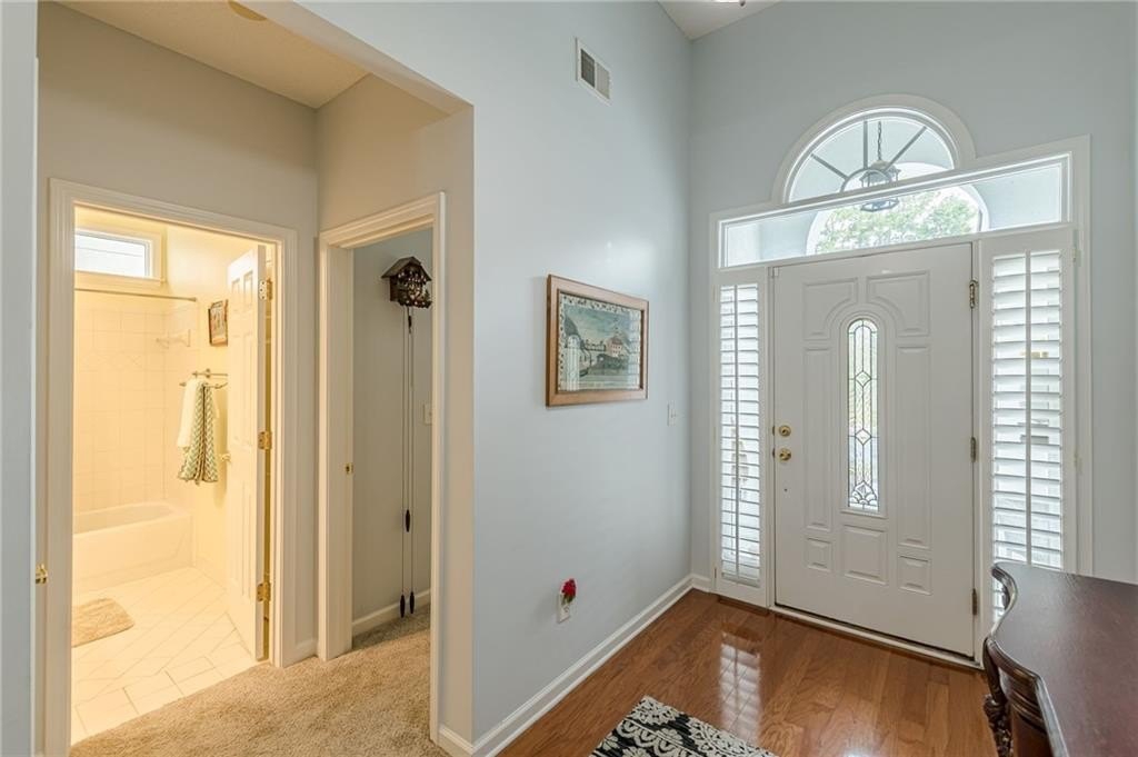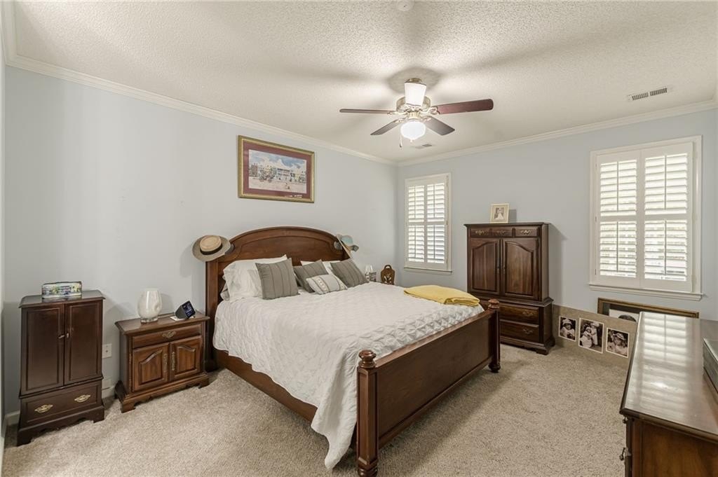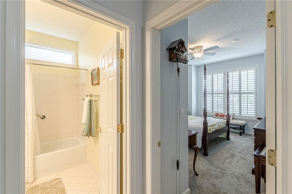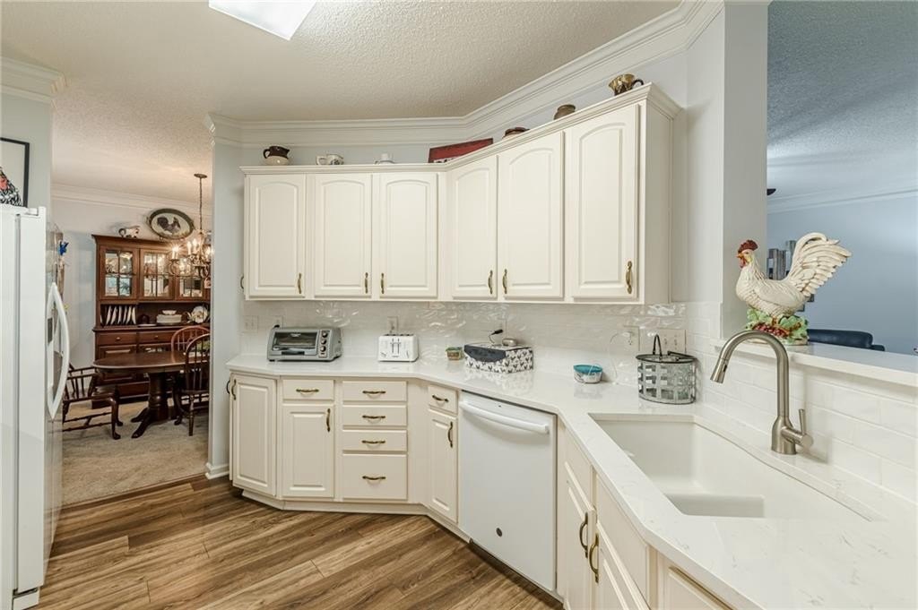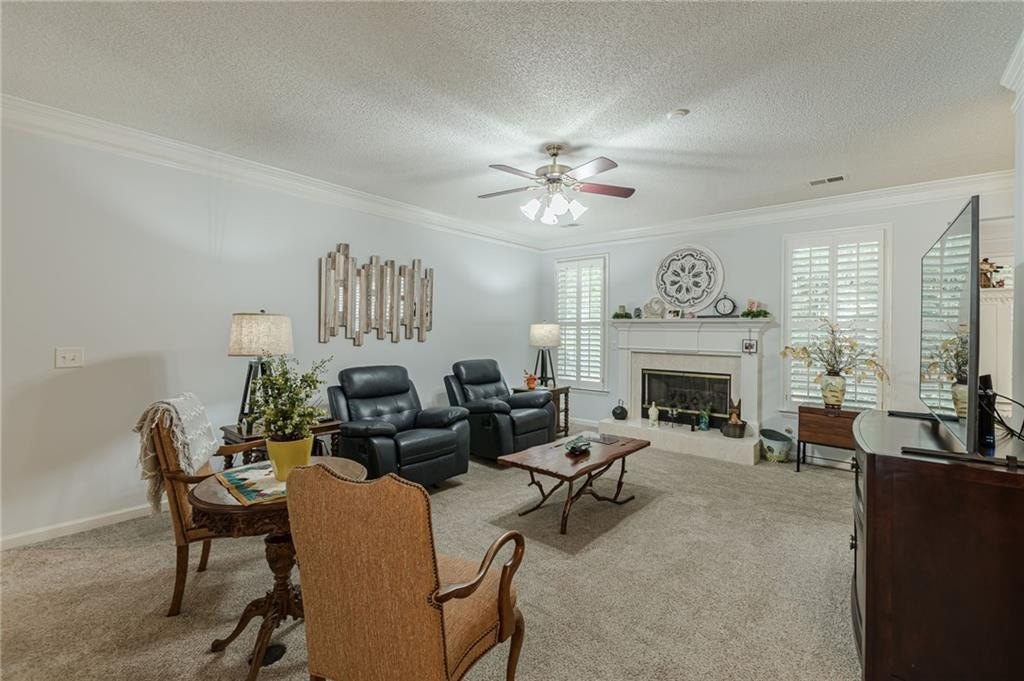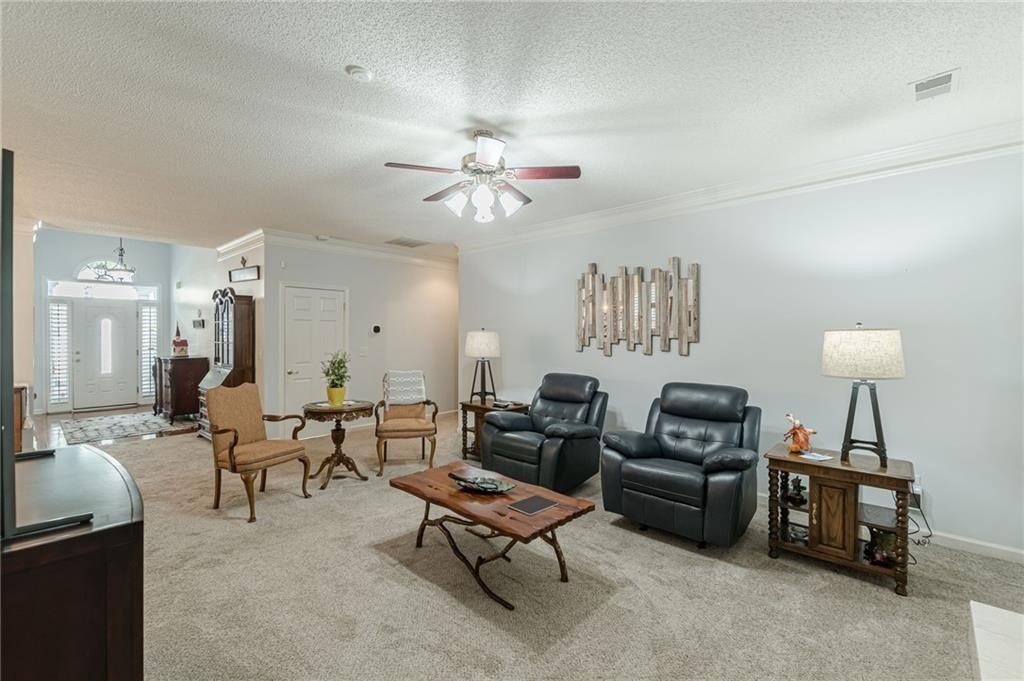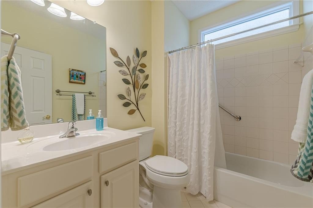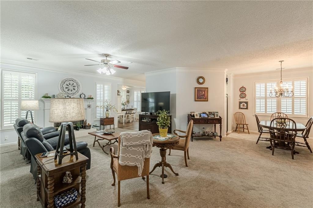 This inviting 2 bedroom, 2 bathroom home offers comfortable living with a spacious primary suite conveniently located on the main level. The large primary bathroom features double vanities, a separate shower, a relaxing soaking tub, and a generous walk-in closet. The split bedroom floor plan provides added privacy, with a blend of hardwood floors and cozy carpet throughout. The kitchen boasts beautiful stone countertops and overlooks the bright, open family room — perfect for everyday living and entertaining. Enjoy low-maintenance living in a peaceful, planned community that’s beautifully maintained and welcoming.