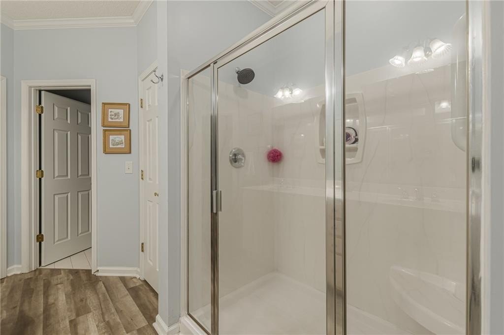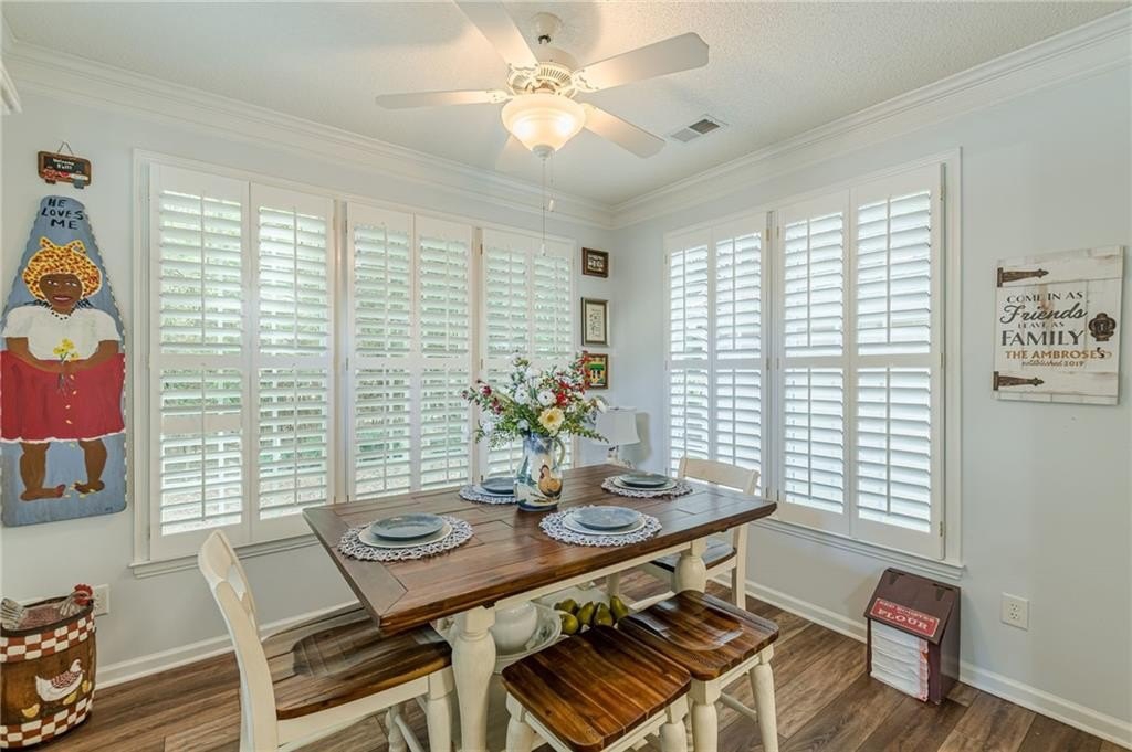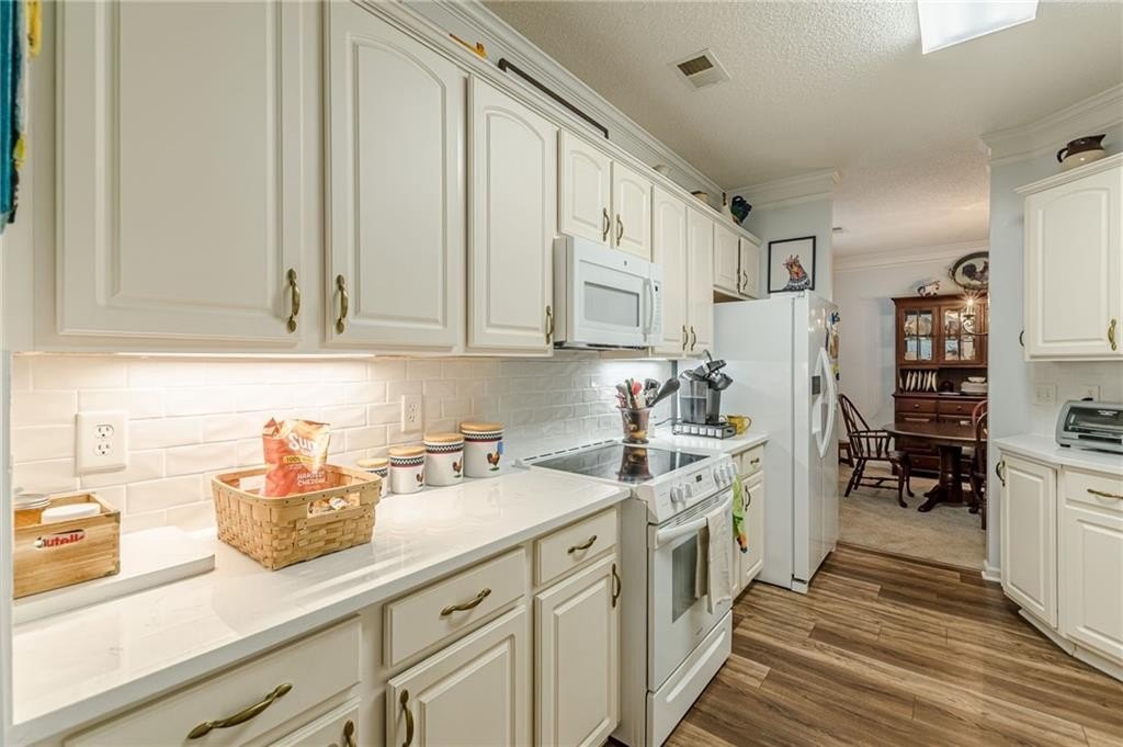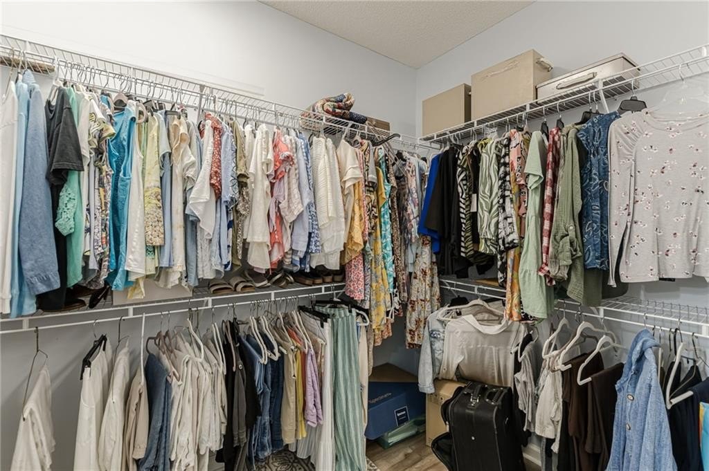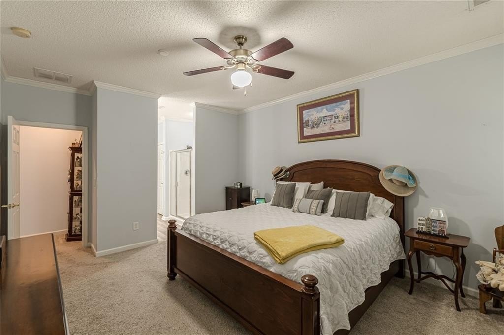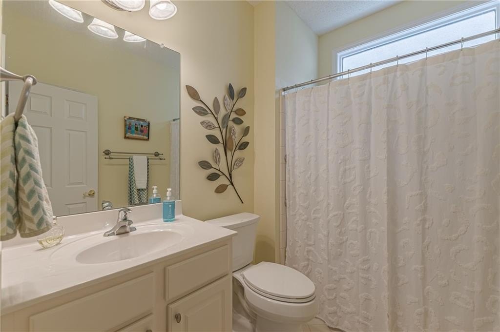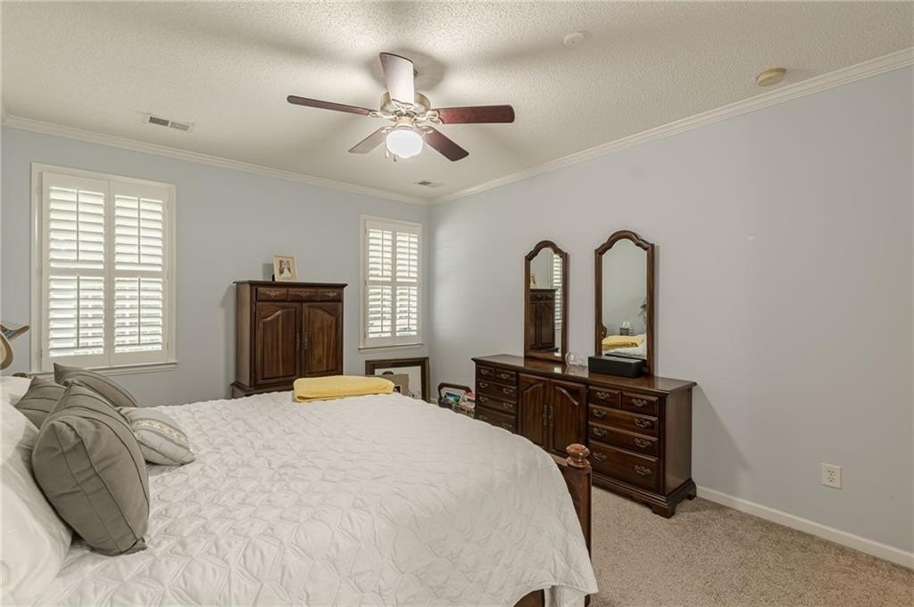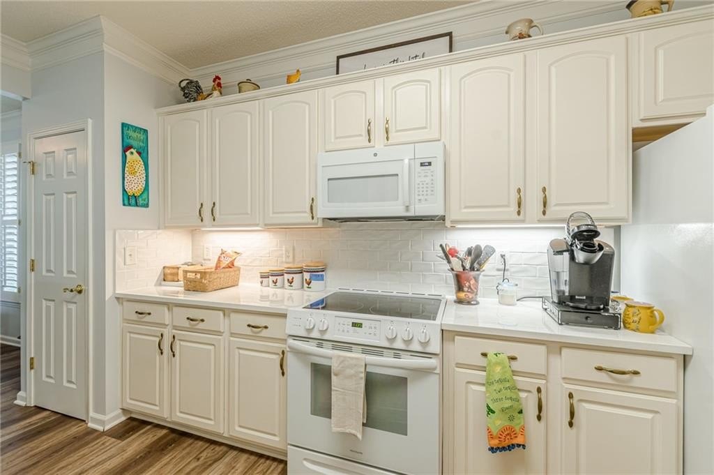 This inviting 2 bedroom, 2 bathroom home offers comfortable living with a spacious primary suite conveniently located on the main level. The large primary bathroom features double vanities, a separate shower, a relaxing soaking tub, and a generous walk-in closet. The split bedroom floor plan provides added privacy, with a blend of hardwood floors and cozy carpet throughout. The kitchen boasts beautiful stone countertops and overlooks the bright, open family room — perfect for everyday living and entertaining. Enjoy low-maintenance living in a peaceful, planned community that’s beautifully maintained and welcoming.