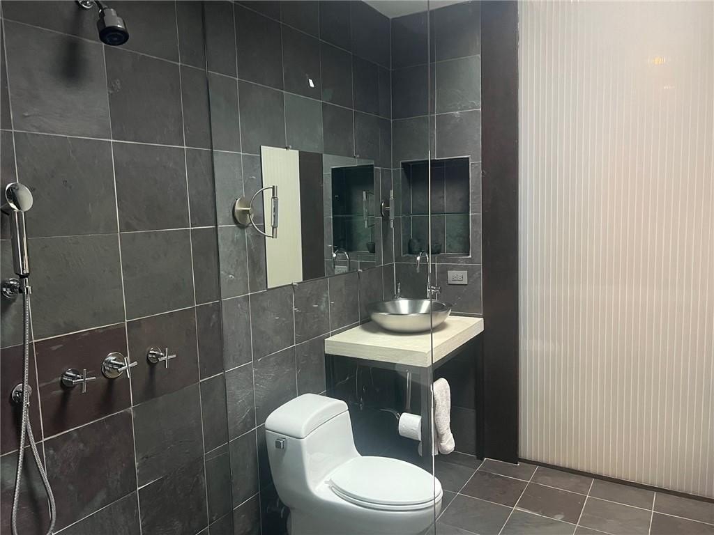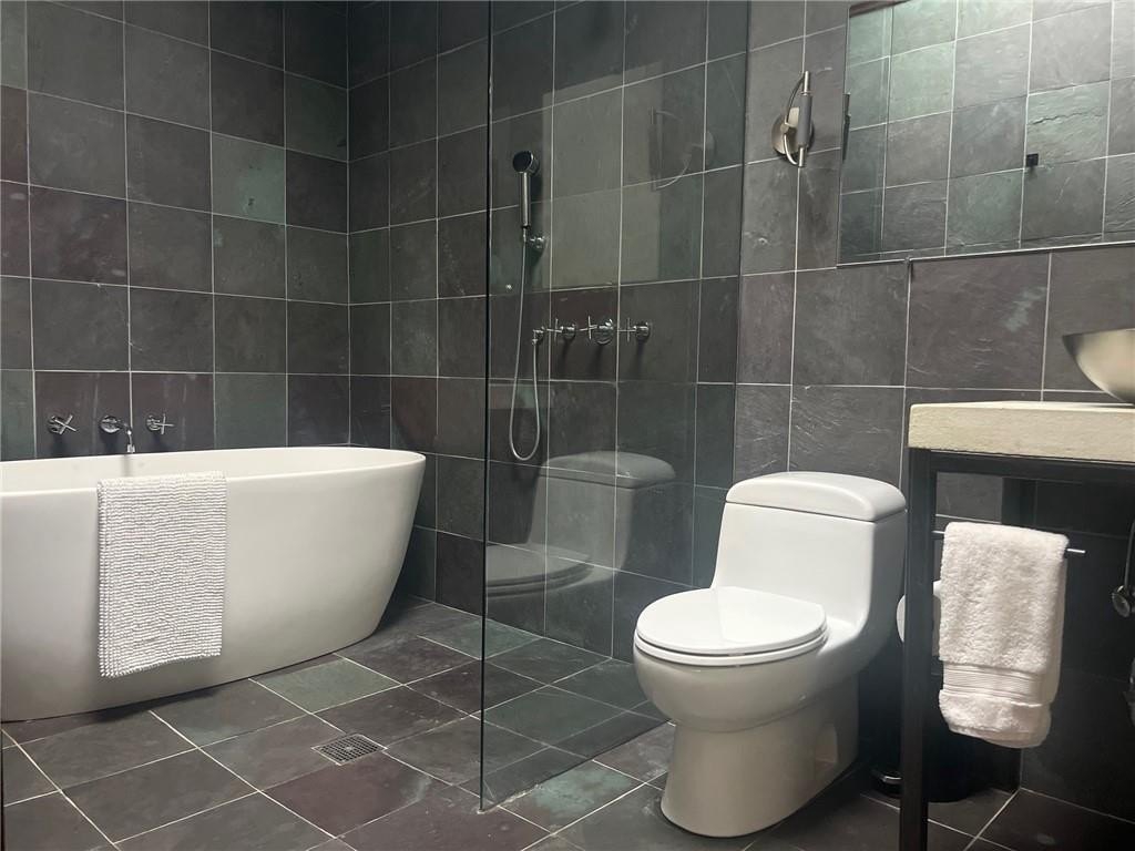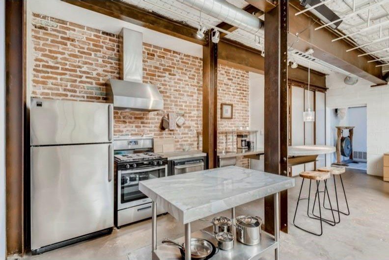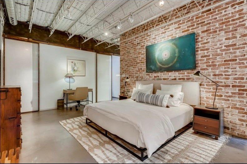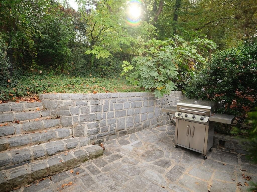 Nestled into a hill surrounded by a manicured landscape, this unique custom condominium residence is a light-filled dream. The massive 10 ft. square skylight, windows on 3 sides, entry foyer, along with the 2 exterior glazed doors, surround a large gallery-like setting for furniture, artwork, entertaining, and a live/work opportunity. Created by an award-winning International designer, Unit C is one of only 3 residences within a single story brick building in the sought-after Lake Claire neighborhood. And just a short walk down the street, between 2 parks, are the neighborhood market and 3 restaurants. The Industrial-chic interior of this home with soaring ceilings is highlighted by a sculptural wood-burning fireplace set against a feature wall of vintage mill brick with 2 portals to the bedroom behind. There are custom full height translucent steel-framed sliding doors throughout the space, a bank of which front a large pantry/closet adjacent to the open kitchen. A “surfboard” custom high-top sets the tone for casual dining at the kitchen, which is equipped with stainless appliances, gas range, range hood, and polished Calacatta marble front island counter. Step into the gorgeous 4-fixture bathroom, tiled floor-to-ceiling with a rare Vermont mottled slate, creating a soothing refuge with free-standing artisan soaking tub, open shower, euro toilet, and a cast stone vanity with custom lighting. The large bedroom again features a vintage mill brick wall, windows to the back terrace, and a walk-in closet. The Lutron lighting scene control panel is at hand here. As you make your way back out the front through the foyer, you pass the separate laundry/utility room with Included washer and dryer. There is a relaxing patio/lounging area at the entry, and a private side door from the living room with steps into the gated rear area. With a granite-paved terrace for grilling within the fenced back yard…very dog friendly…these outdoor features combine to create a truly unique residential experience.