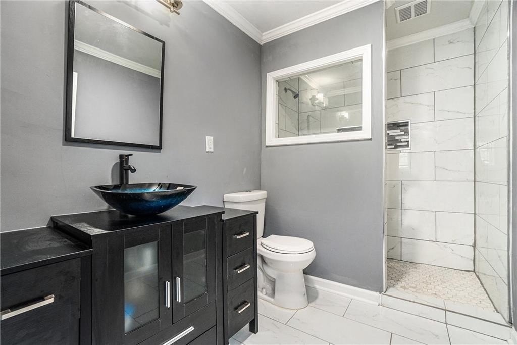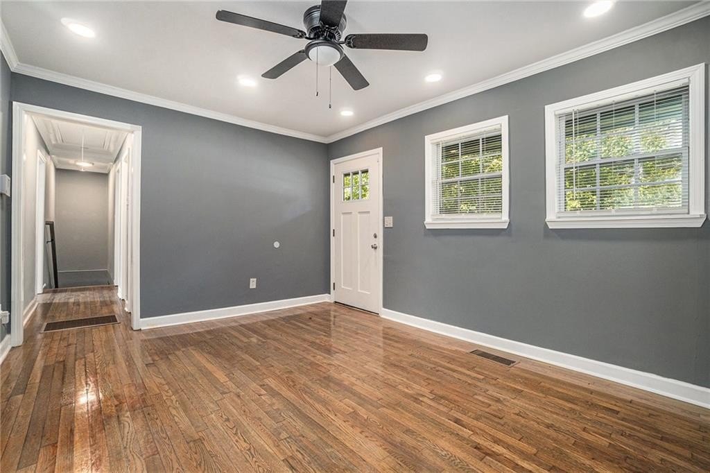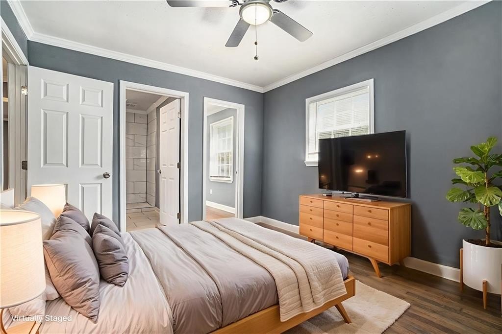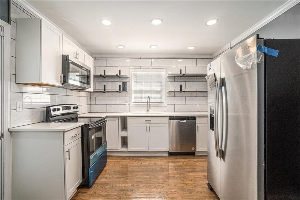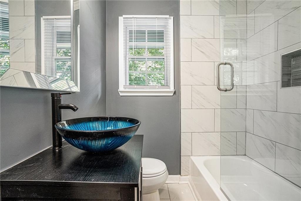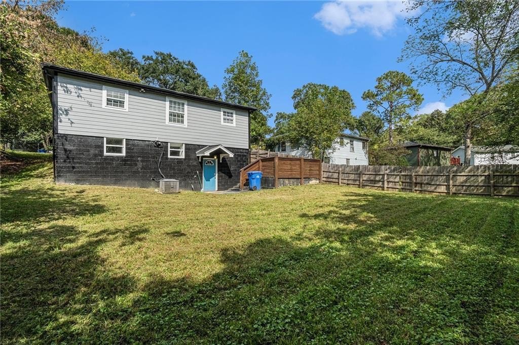This beautiful property is the perfect opportunity for anyone looking for a move-in ready, updated home. The property boasts a fenced yard as well as a large, flat backyard. Complete with a fully finished walk-out basement, this property has had each and every room tastefully renovated in a multitude of ways to truly make this house a home, full of personality and charm. Fresh paint, refinished hardwood floors on main, new luxury vinyl floors in the basement, along with new finishes and fixtures throughout highlight the new home feel. A recently replaced HVAC (2024) and roof (2024) only continues this trend. With 4 bedrooms and 3 full bathrooms this house has plenty of space available. A bedroom and full bath on the first floor allows for a master on main highlighted by a full walk-in closet with lots of natural light. A cozy sitting area opens to an upgraded kitchen complete with new cabinetry, quartz countertops, backsplash, and black appliances that tastefully tie into the color palette of the space. Every bathroom is updated, featuring stylish new vanities, bowl sinks, and upgraded showers. Additional recent upgrades include fresh exterior paint, painted driveway and sidewalk, as well as updated front porch and stairway. The open front porch with is perfect for outdoor seating area while a lengthy driveway allows space for multiple vehicles as well. Placed in an ideal location, this home sits inside the perimeter just minutes from I-285 making access to any part of Atlanta and its many amenities a breeze.
