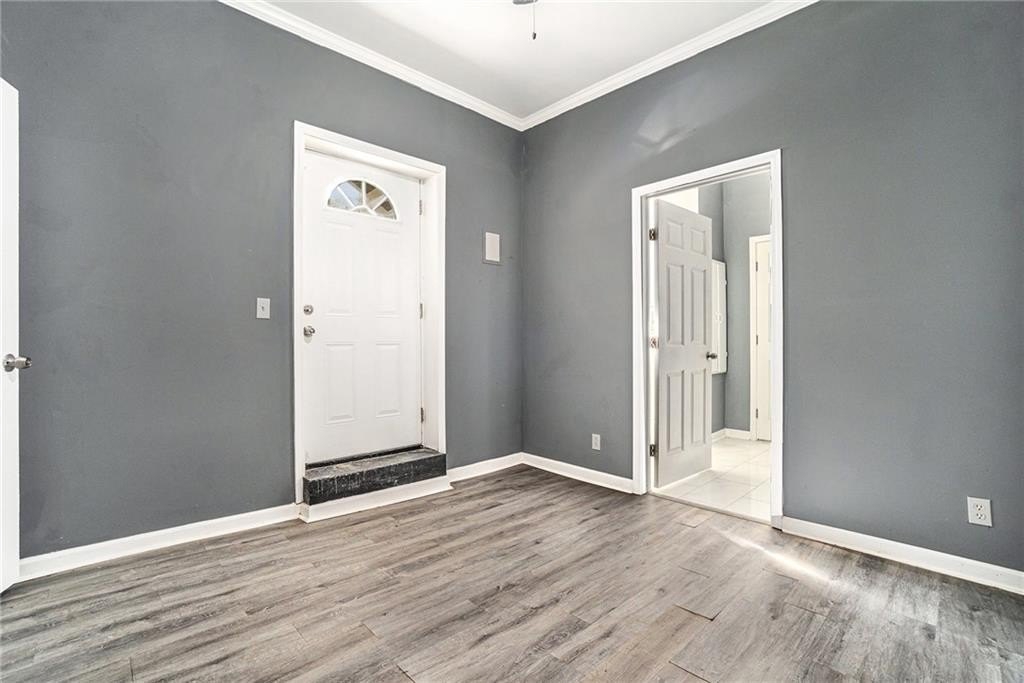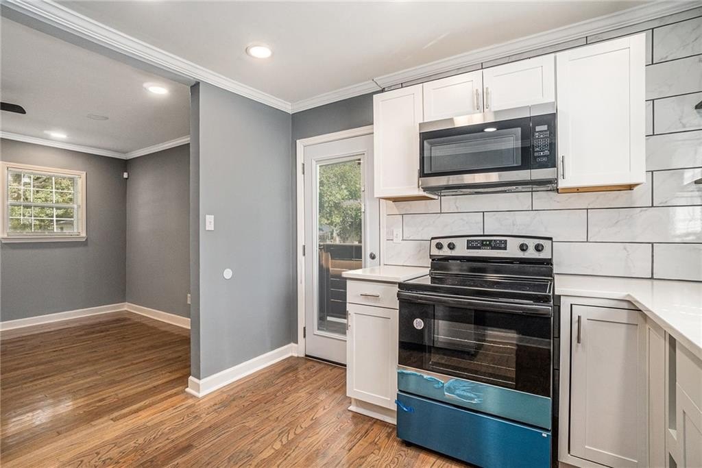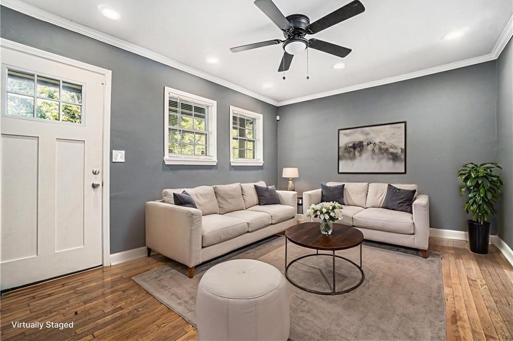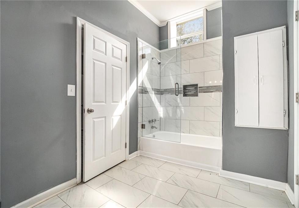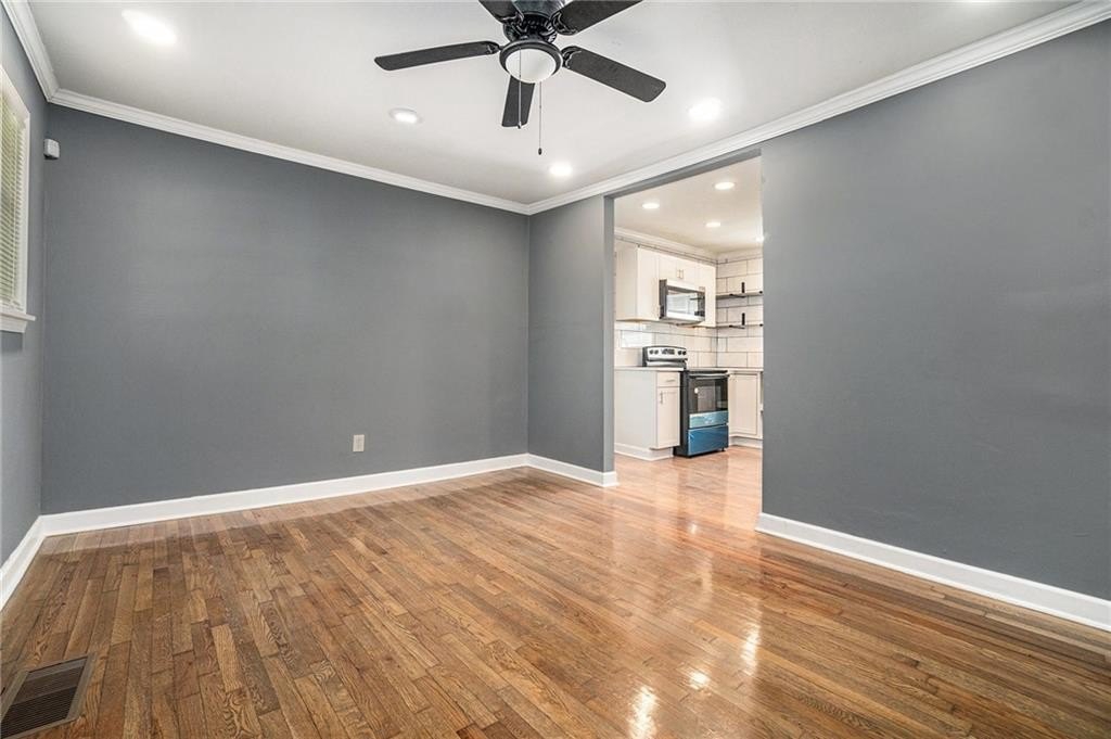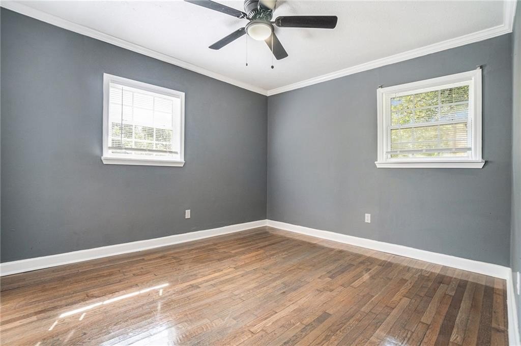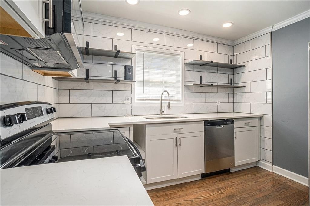 This beautiful property is the perfect opportunity for anyone looking for a move-in ready, updated home. The property boasts a fenced yard as well as a large, flat backyard. Complete with a fully finished walk-out basement, this property has had each and every room tastefully renovated in a multitude of ways to truly make this house a home, full of personality and charm. Fresh paint, refinished hardwood floors on main, new luxury vinyl floors in the basement, along with new finishes and fixtures throughout highlight the new home feel. A recently replaced HVAC (2024) and roof (2024) only continues this trend. With 4 bedrooms and 3 full bathrooms this house has plenty of space available. A bedroom and full bath on the first floor allows for a master on main highlighted by a full walk-in closet with lots of natural light. A cozy sitting area opens to an upgraded kitchen complete with new cabinetry, quartz countertops, backsplash, and black appliances that tastefully tie into the color palette of the space. Every bathroom is updated, featuring stylish new vanities, bowl sinks, and upgraded showers. Additional recent upgrades include fresh exterior paint, painted driveway and sidewalk, as well as updated front porch and stairway. The open front porch with is perfect for outdoor seating area while a lengthy driveway allows space for multiple vehicles as well. Placed in an ideal location, this home sits inside the perimeter just minutes from I-285 making access to any part of Atlanta and its many amenities a breeze.