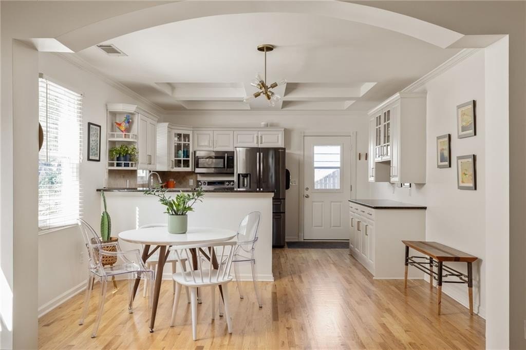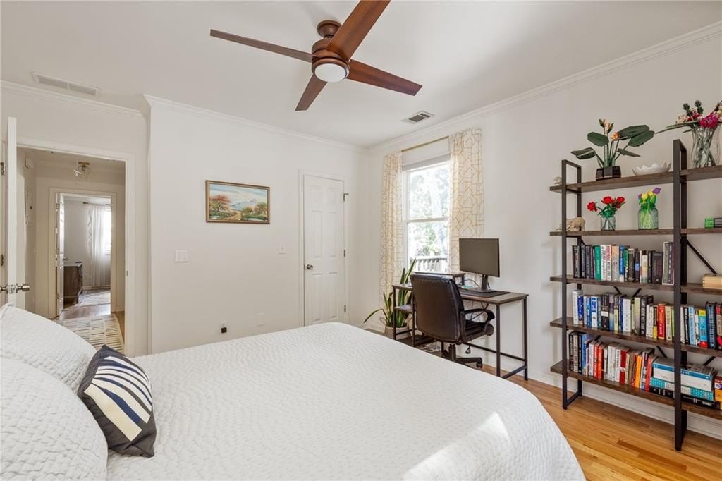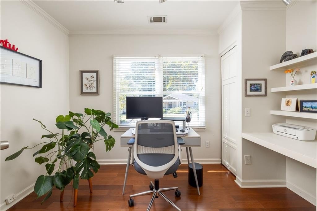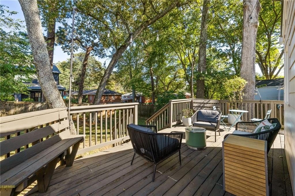 Intown Living at 215 Sisson brings you into the pulse of an active, connected community with fantastic neighbors and a great vibe! Just a short stroll to downtown Kirkwood, Oakhurst, 2nd & Hosea, Downtown Decatur, and the East Lake MARTA. The front bedroom with custom built-ins is the perfect spot for a home office, infants’ room, art studio or flex space. The primary suite encompasses an office nook and a large walk-in closet with custom modular system. If an outdoor entertaining space is on your must have list, look no further! The large fenced-in backyard is equipped with an amazing wrap-around deck ideal for huge gatherings or intimate get-togethers. Improvements within the past 5 years include: New roof and gutters - New insulation in attic - New vapor barrier and insulation in the crawlspace - Electric vehicle wiring - Support beams - Fresh interior paint - refinished hardwoods throughout.