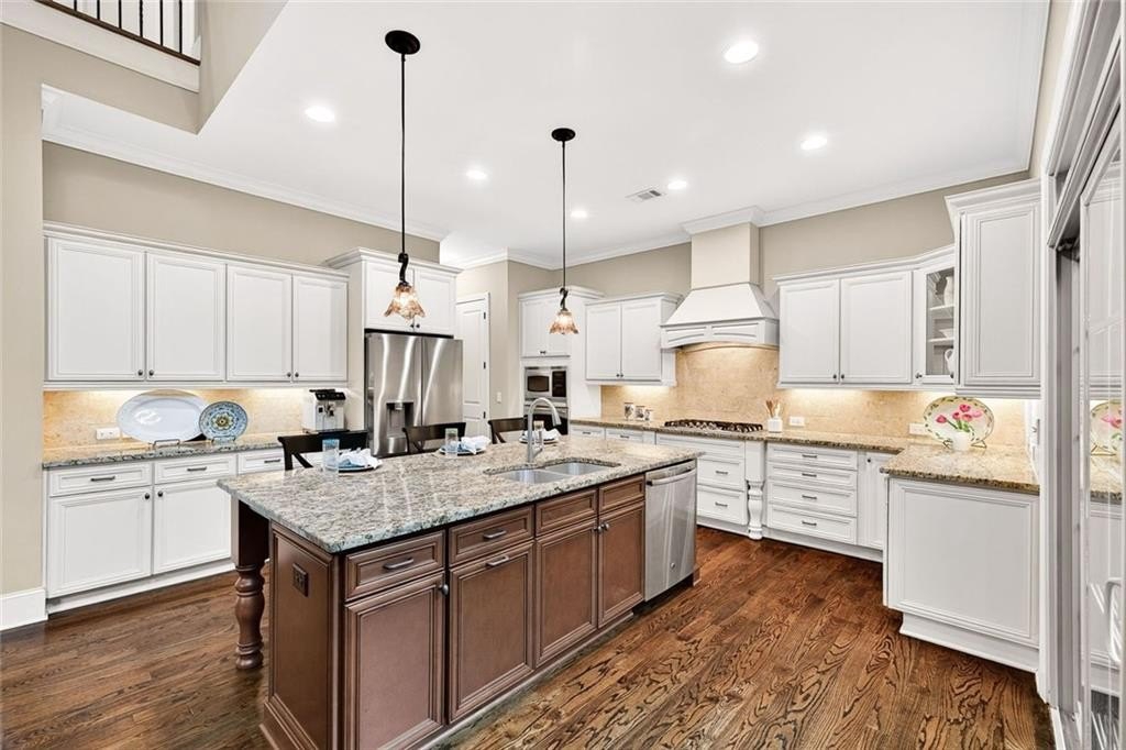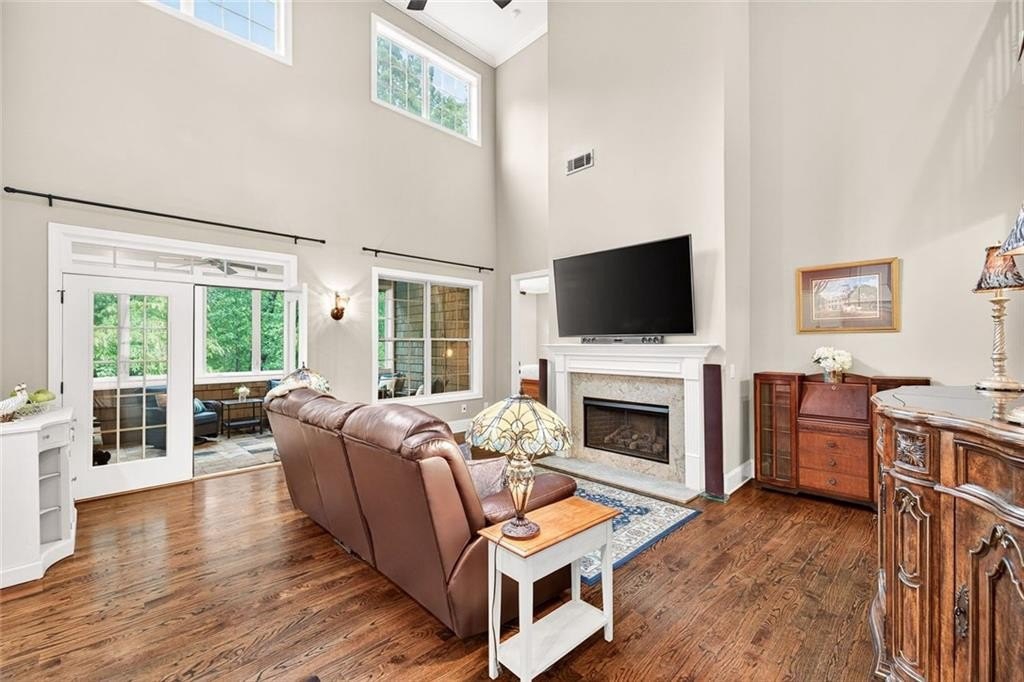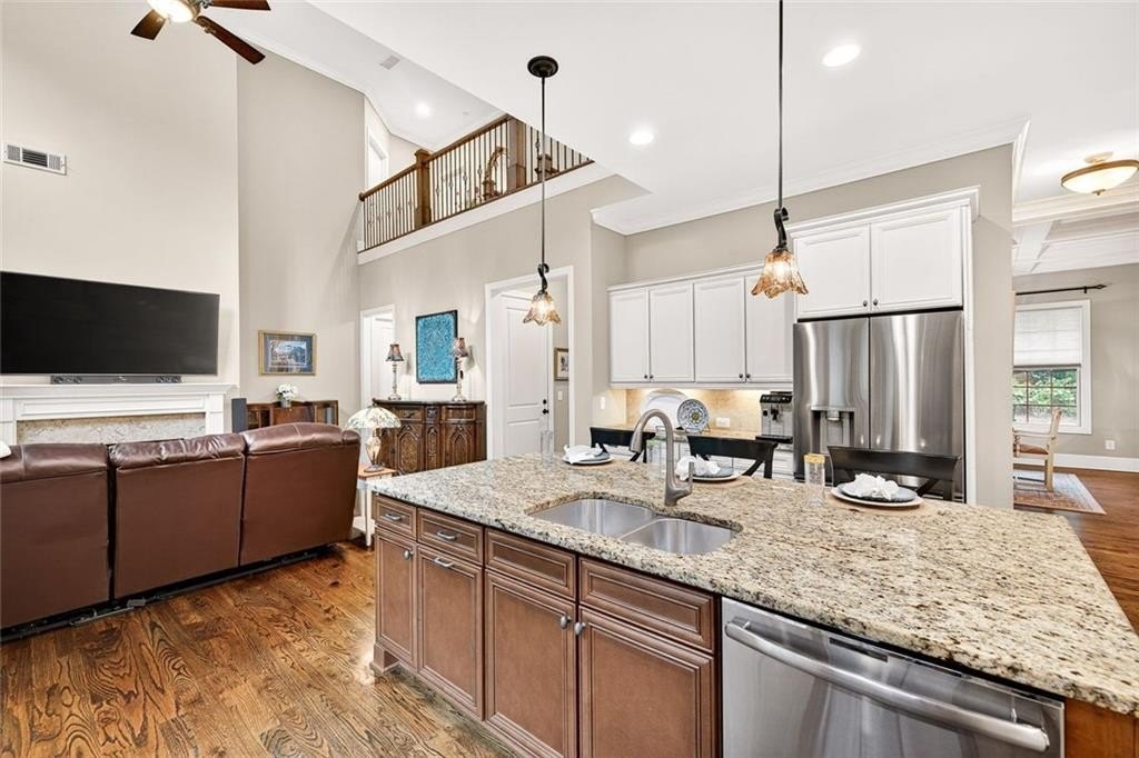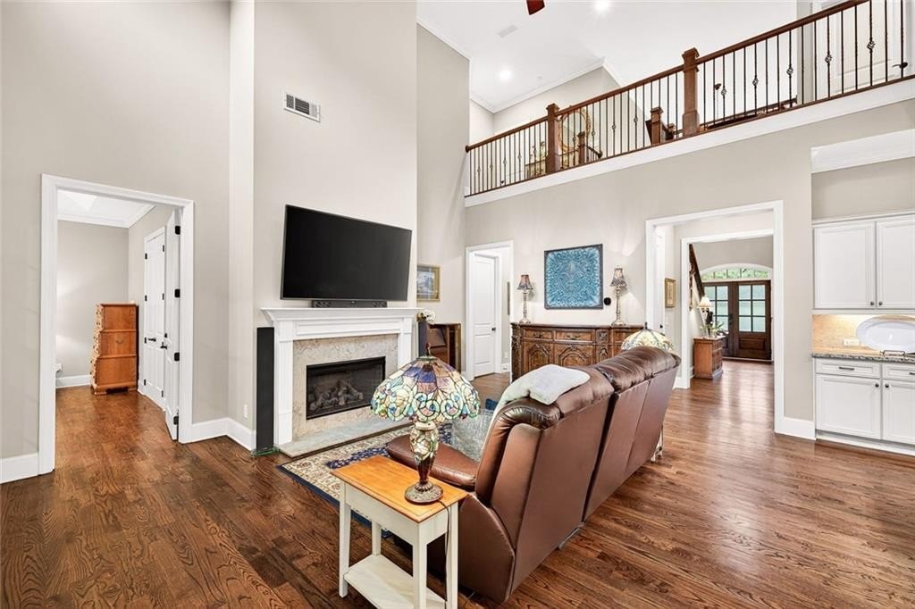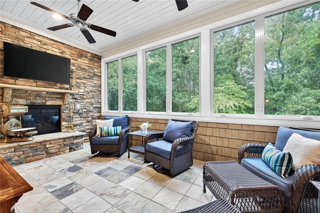 ABSOLUTELY IMMACULATE and METICULOUSLY maintained! Versatile floor plan in award winning Active Adult 55+ Community. Gorgeous wooded view. MAIN LEVEL: Gracious two-story foyer with lots of natural light. Stunning hardwood floors throughout main level really emphasize the open concept. Dining Room with coffered ceiling. Spacious family room is open to the kitchen and lanai. Fireplaces in both the living room and lanai create a cozy and congenial entertainment space. Lanai has insulated casement windows and stacked stone fireplace – a perfect four-season living space. You’ll especially love the private and tranquil wooded view that’s perfect for watching TV, reading, dining, or just relaxing. Creamy cabinetry, great lighting, and lots of granite countertop space offer ample storage and workspace in the kitchen. A grill deck off the kitchen makes outdoor cooking a year ‘round pleasure. Primary Suite is spacious with huge walk-in shower, soaking tub, double sink vanities with granite countertops and linen tower for storage. HIS and HER custom closets are simply fabulous providing individual organized space for your wardrobe. UPSTAIRS, you'll find three additional bedrooms and a bonus/media room. Walk-in closets in each bedroom provide generous storage. The unfinished TERRACE level expands your living possibilities even further. It offers great options for another bedroom and full bath (already plumbed), workshop, recreation space, storage. A sense of COMMUNITY is so important to an Active Adult lifestyle. This community offers resort-like amenities that enhance your lifestyle. Enjoy the pool, well-appointed clubhouse, state-of-the-art fitness center, tennis and PICKLEBALL courts, community garden, and scenic walking trails. You'll love the many planned activities – a wonderful way to meet neighbors and friends. CONVENIENCE is key!! Easy access to a variety of restaurants, shopping destinations, Emory hospital and medical facilities, and several golf courses and country clubs. Come and check this out – the perfect combination of classy design, practical comfort and a vibrant community.