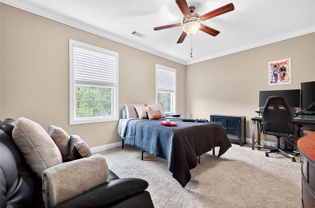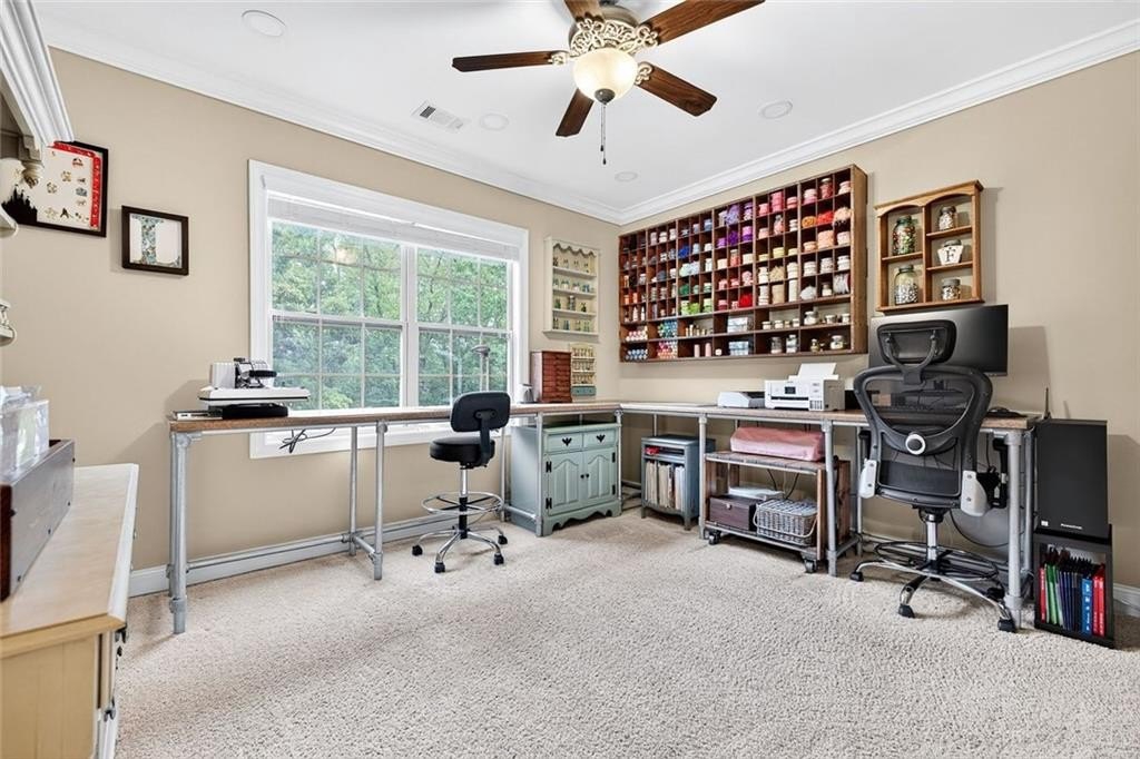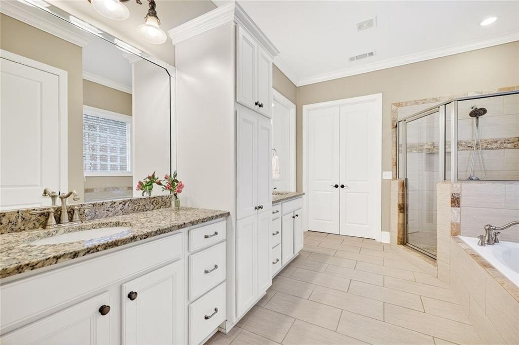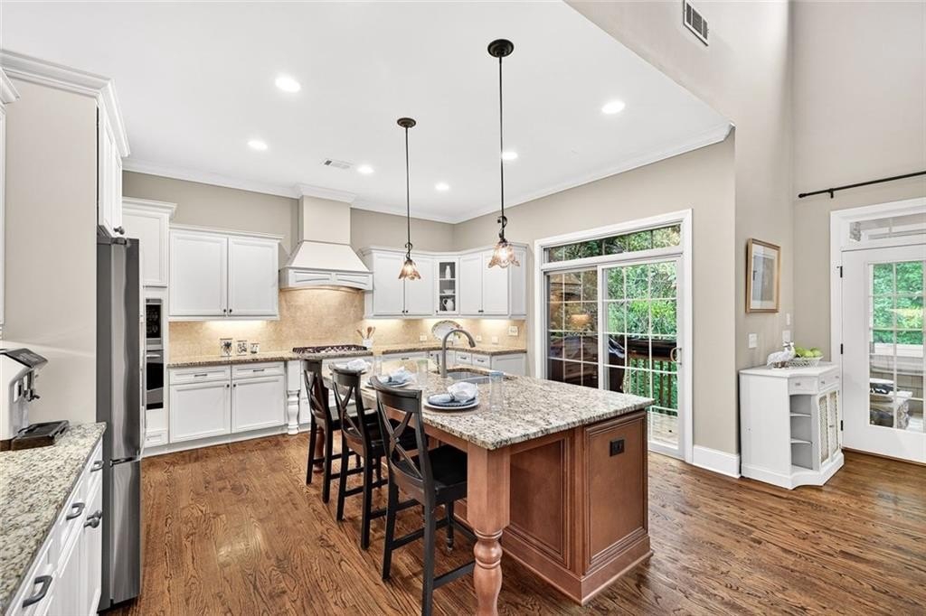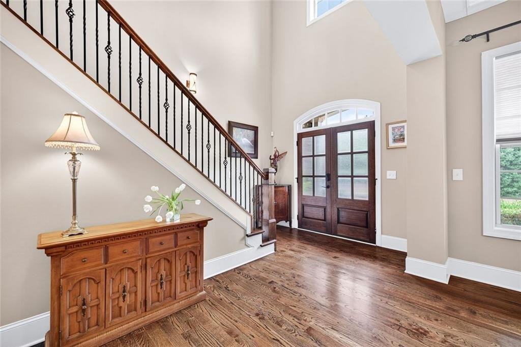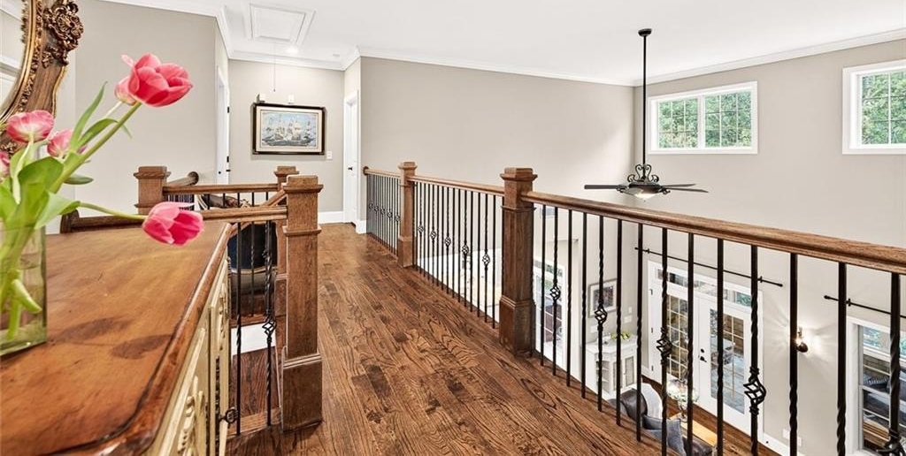 ABSOLUTELY IMMACULATE and METICULOUSLY maintained! Versatile floor plan in award winning Active Adult 55+ Community. Gorgeous wooded view. MAIN LEVEL: Gracious two-story foyer with lots of natural light. Stunning hardwood floors throughout main level really emphasize the open concept. Dining Room with coffered ceiling. Spacious family room is open to the kitchen and lanai. Fireplaces in both the living room and lanai create a cozy and congenial entertainment space. Lanai has insulated casement windows and stacked stone fireplace – a perfect four-season living space. You’ll especially love the private and tranquil wooded view that’s perfect for watching TV, reading, dining, or just relaxing. Creamy cabinetry, great lighting, and lots of granite countertop space offer ample storage and workspace in the kitchen. A grill deck off the kitchen makes outdoor cooking a year ‘round pleasure. Primary Suite is spacious with huge walk-in shower, soaking tub, double sink vanities with granite countertops and linen tower for storage. HIS and HER custom closets are simply fabulous providing individual organized space for your wardrobe. UPSTAIRS, you'll find three additional bedrooms and a bonus/media room. Walk-in closets in each bedroom provide generous storage. The unfinished TERRACE level expands your living possibilities even further. It offers great options for another bedroom and full bath (already plumbed), workshop, recreation space, storage. A sense of COMMUNITY is so important to an Active Adult lifestyle. This community offers resort-like amenities that enhance your lifestyle. Enjoy the pool, well-appointed clubhouse, state-of-the-art fitness center, tennis and PICKLEBALL courts, community garden, and scenic walking trails. You'll love the many planned activities – a wonderful way to meet neighbors and friends. CONVENIENCE is key!! Easy access to a variety of restaurants, shopping destinations, Emory hospital and medical facilities, and several golf courses and country clubs. Come and check this out – the perfect combination of classy design, practical comfort and a vibrant community.