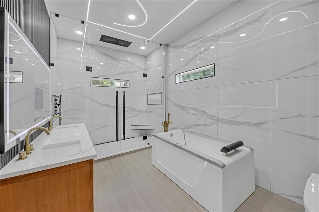 Additional features include laundry rooms on both levels and smart toilets throughout.