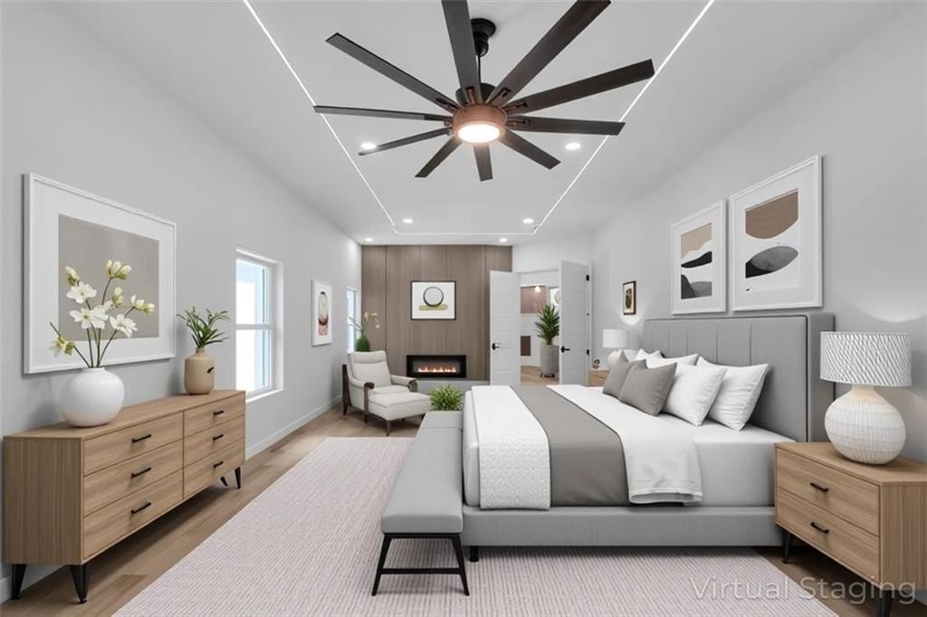 Step into a one-of-a-kind residence where modern design meets everyday comfort. This elegant 6-bedroom, 5.5 bath home is filled with high-end finishes, smart home upgrades, designer wood flooring, and sleek LED ceiling accents throughout.