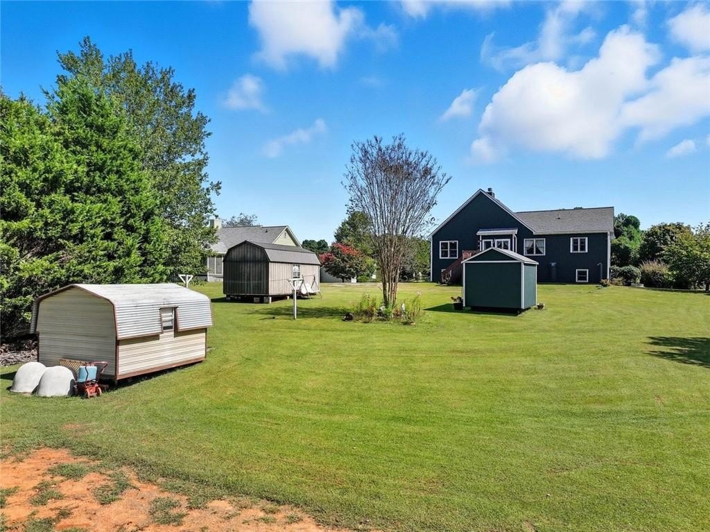Outside, you’ll find a spacious backyard with raised garden beds, an outbuilding for storage or hobbies, and plenty of green space to spread out. Located in south Pickens County with quick access to Highway 575, this property combines quiet living with commuter convenience.