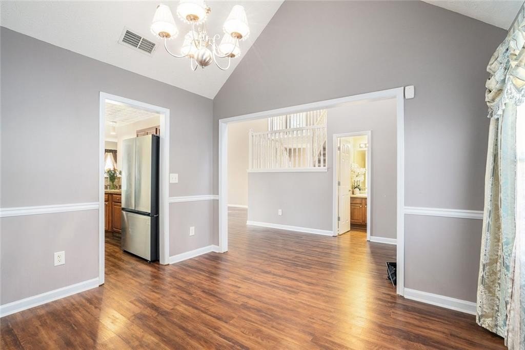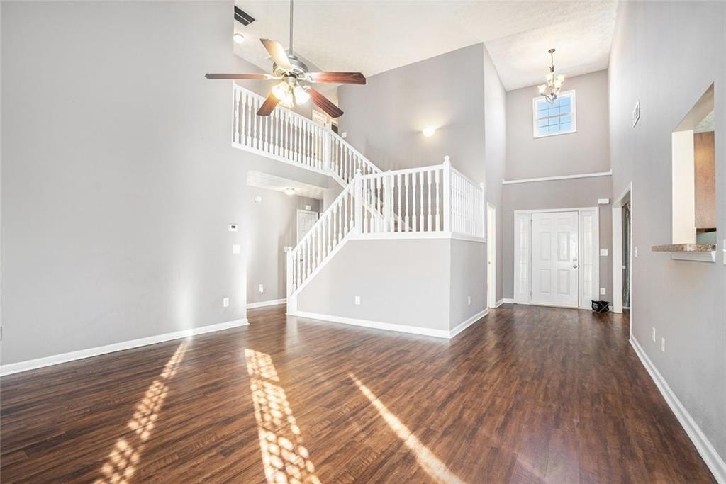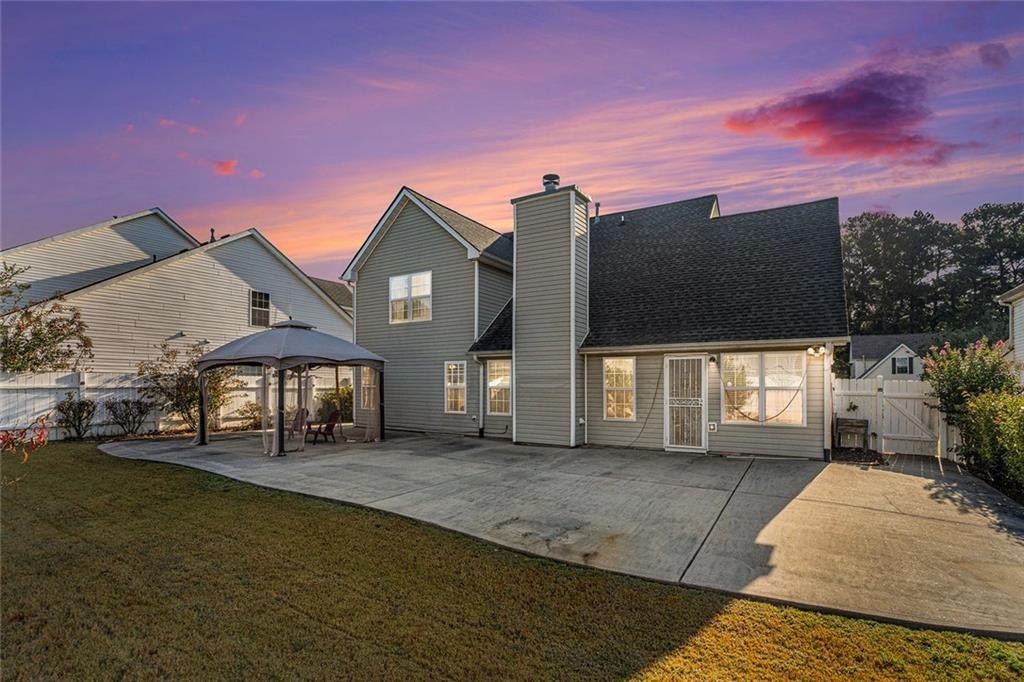 Soaring ceilings and a cozy fireplace create an inviting atmosphere in the family room perfect for both relaxing nights in and entertaining guests. Step outside to enjoy the fully fenced backyard, complete with an oversized patio ideal for outdoor dining and gatherings.