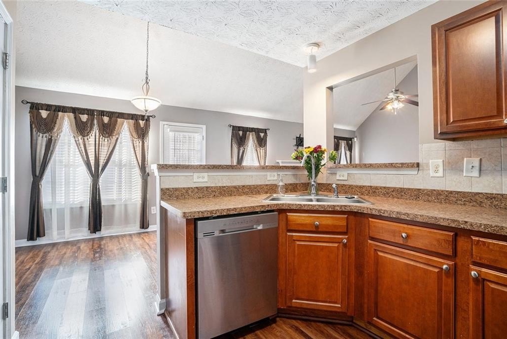The main-level owner’s suite is a private retreat, featuring a spa-inspired bathroom with a soaking tub, separate walk-in shower, and a large walk-in closet. The stylish kitchen showcases sleek Samsung stainless steel appliances, a convenient breakfast bar, and luxury flooring that flows seamlessly through the main living areas.