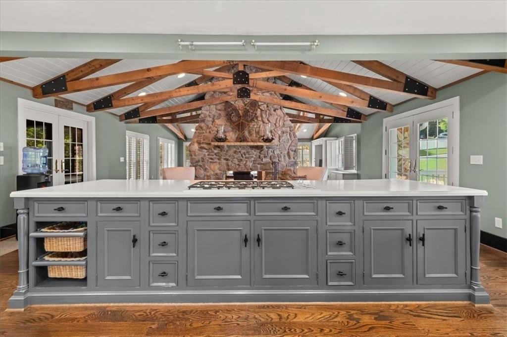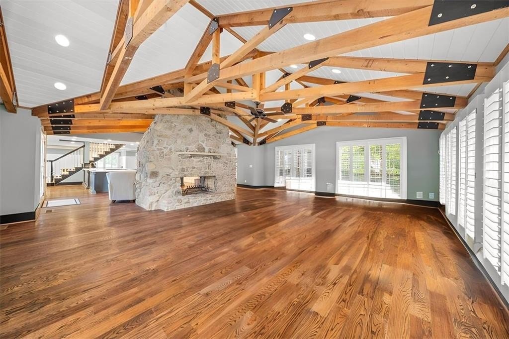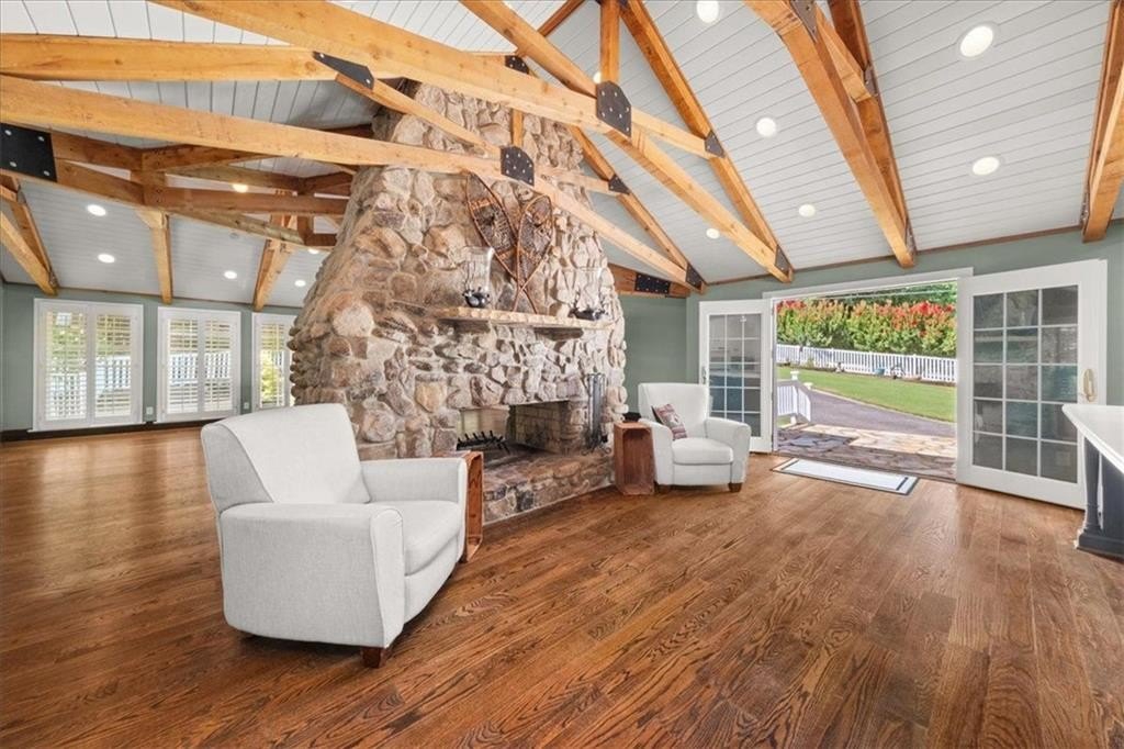 An Entertainer’s Dream in the Brookwood School District! This custom 4 bedroom, 3.5 bath home in Snellville’s Nob Hill Estates and Brookwood School cluster blends spacious design with luxurious details, perfect for hosting gatherings large or small. From the moment you arrive and enter from the rocking chair front porch, you'll be struck by the thoughtful upgrades and craftsmanship throughout the home, including rich hardwood floors and judges paneling that add timeless character to nearly every room. The heart of the home is the open-concept living area with a large 12 ft kitchen island, double-sided fireplace, and vaulted ceilings with exposed beams, creating a warm and inviting flow between spaces. Step outside to the expansive screened porch featuring a vaulted ceiling, stone fireplace, and views of the private fenced yard, ideal for year-round entertaining. With two driveways, an oversized two-car garage for all your toys and equipment, and parking for 20+ vehicles, there’s room for every guest. The main-level owner’s suite offers a nearly 900 sqft private retreat with its own fireplace and two very spacious walk-in closets, while upstairs you’ll find two guest bedrooms plus a second suite, perfect for extended stays for guests or intergenerational living. Located only one mile from Downtown Snellville, The Grove at Towne Center, dining, parks, and community events, this home offers the perfect blend of luxury, functionality, and entertainment space, all within the top-rated Brookwood school district. This exceptional home blends elegant finishes, smart design, and flexible living spaces in a highly sought after location that offers true neighborhood charm. Nob Hill is an HOA-free neighborhood with an incredible community pool.