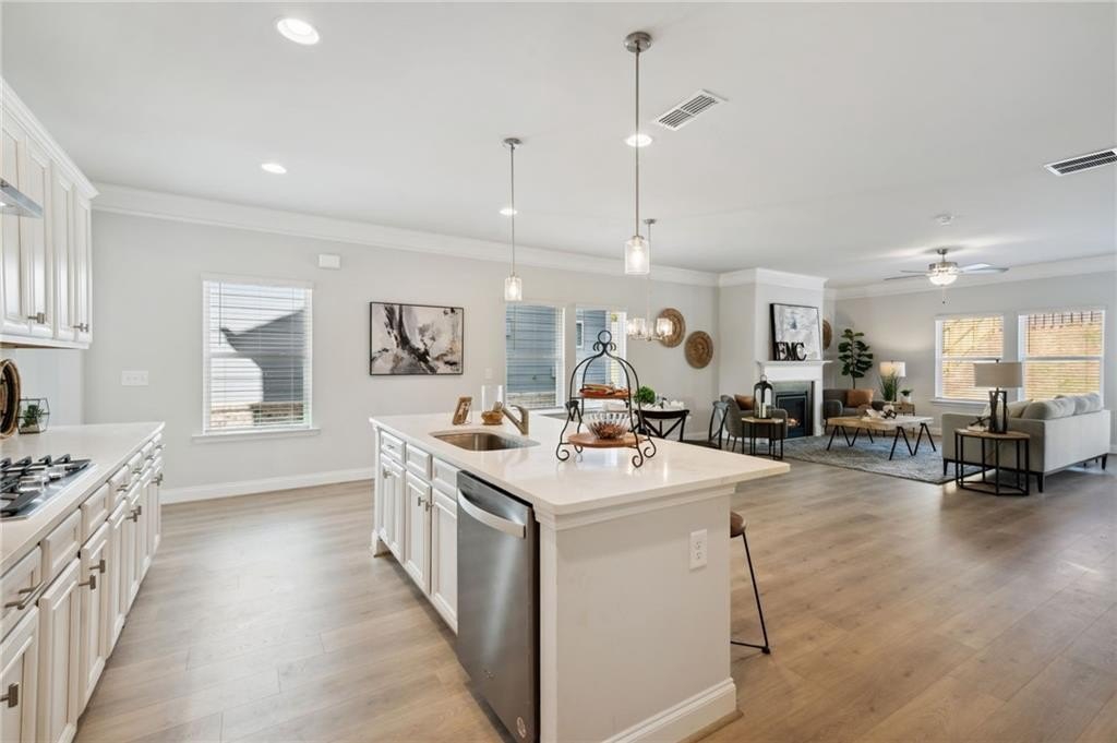 $10,000 BUYER INCENTIVE with preferred lender. MOVE IN NOVEMBER! New Construction townhomes in The Village at Maple Street in downtown Dawsonville - OCTOBER MOVE IN! The LAWRENCE plan built by EMC Homes GA offers first floor living with zero-step entries in a beautiful END UNIT with 2 CAR GARAGE on the cul de sac with amazing COVERED PORCH! This huge 4 bed/4 full bath features guest bed and full bath on main, beautiful open kitchen with white cabinets, stainless appliances, tile backsplash and upgraded countertops - large island with pendant lights overlooks dining and family rooms. Downstairs also includes lovely entrance foyer, cozy fireplace, 7" laminates in main living area! Upstairs are 2 large bedrooms with 2 more full baths and elegant primary bedroom with en-suite featuring shower, double vanity, and huge walk in closet. Laundry room and open bonus LOFT area round out the spacious upstairs! The Village at Maple Street offers open concept floor plans offering aging in place-friendly features like lawn care and exterior maintenance-all handled for you. This is low maintenance living at its best - with no age restrictions! The Village at Maple Street is conveniently located in downtown Dawsonville near the North Georgia mountains, parks, and just minutes from Rt 400 and the North Georgia Premium outlet mall, shopping, dining, mountain wineries and Lake Lanier! STOCK PHOTOS OF PREVIOUS BUILD.