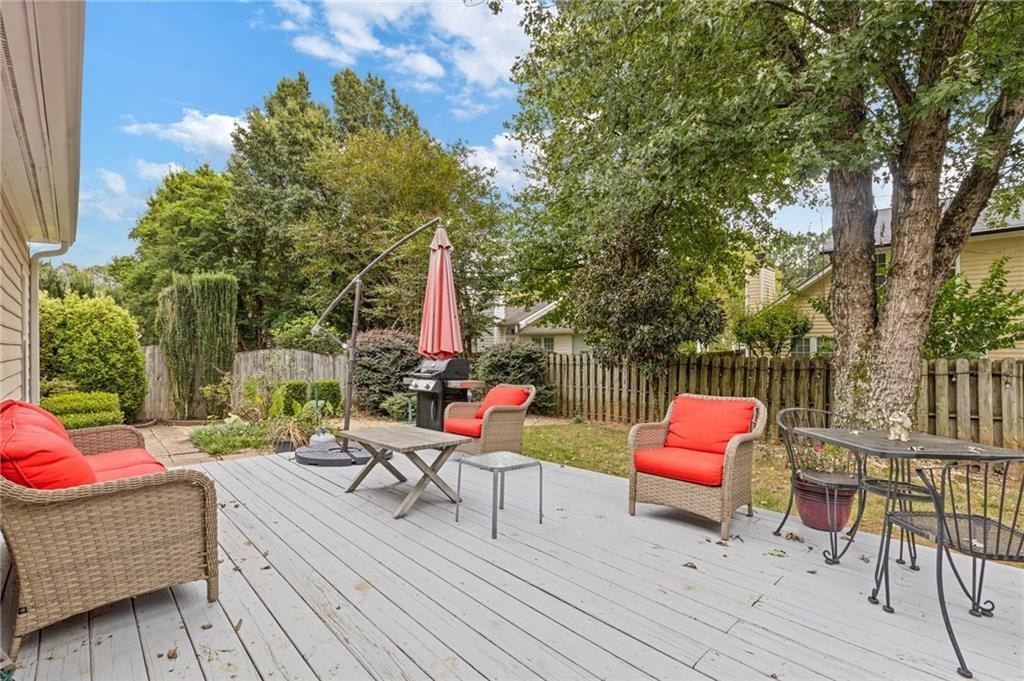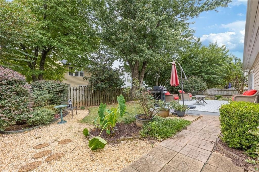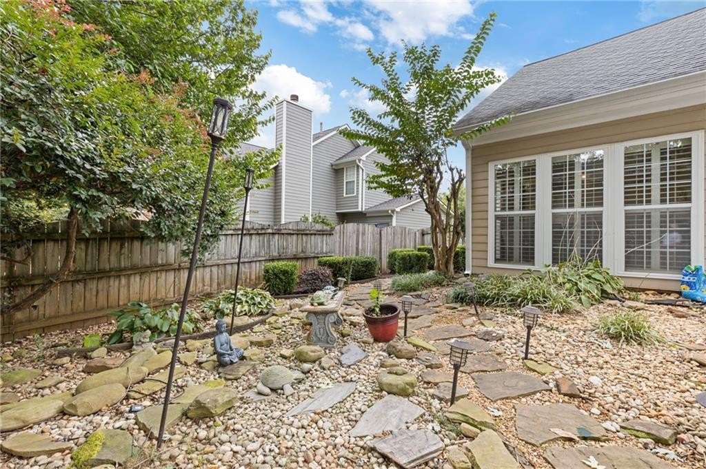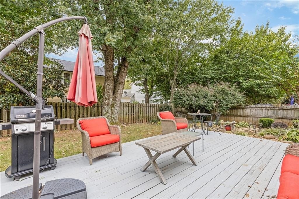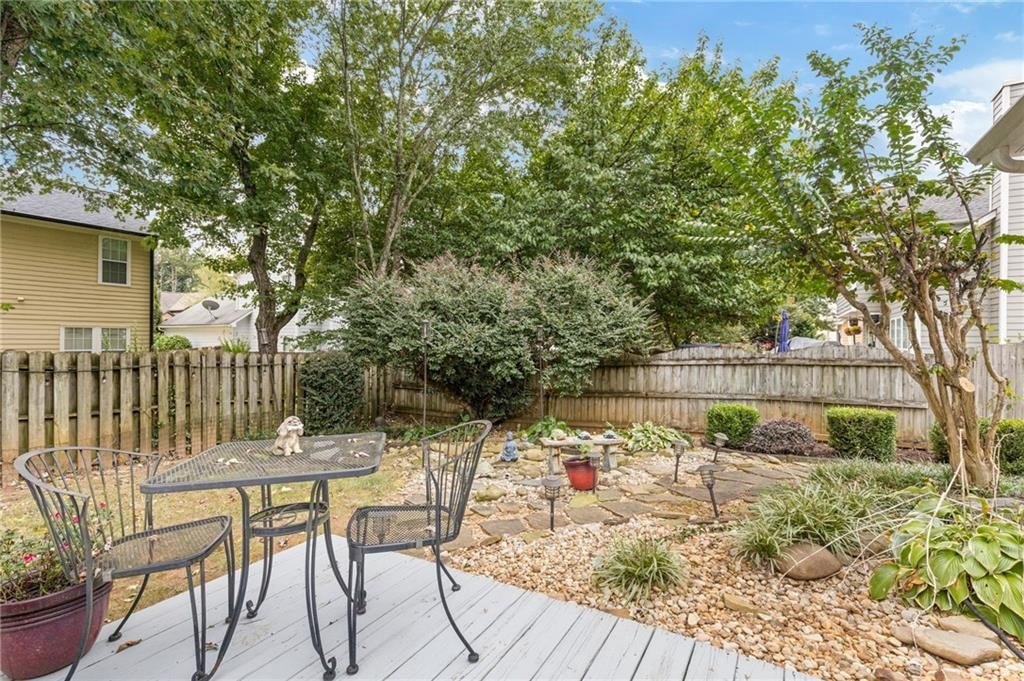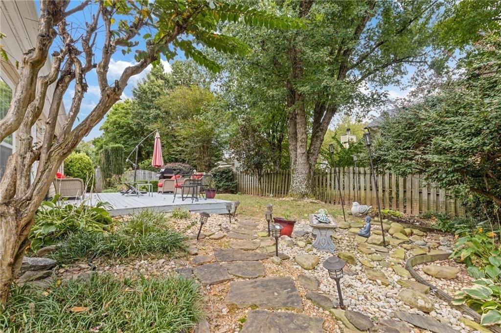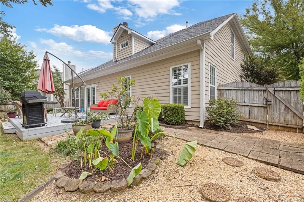 Welcome to this beautifully updated and light-filled home in Gatewood, a highly sought-after swim and tennis community near downtown Alpharetta. Step into the impressive two-story foyer with new LVP flooring that flows seamlessly into the open-concept main level. The spacious dining area adjoins the bright kitchen, which overlooks the family room featuring soaring cathedral ceilings and a cozy gas fireplace framed by built-ins. The primary suite is conveniently located on the main level and boasts elegant tray ceilings. Upstairs, you’ll find two generously sized bedrooms and a full bath. Enjoy outdoor living on the expansive deck, perfect for gatherings and grilling, while overlooking lush landscaping with stone walkways and a fully fenced backyard. This home offers unmatched convenience to downtown Alpharetta’s vibrant shopping, dining, and entertainment scene. The neighborhood is also directly across from Cogburn Road Park, offering a playground, paved walking paths, and picnic areas. Zoned for the top-rated Cambridge High School district—don’t miss this opportunity to own a truly delightful home in one of Alpharetta’s most desirable communities!