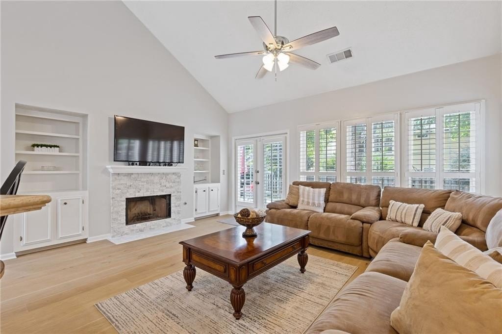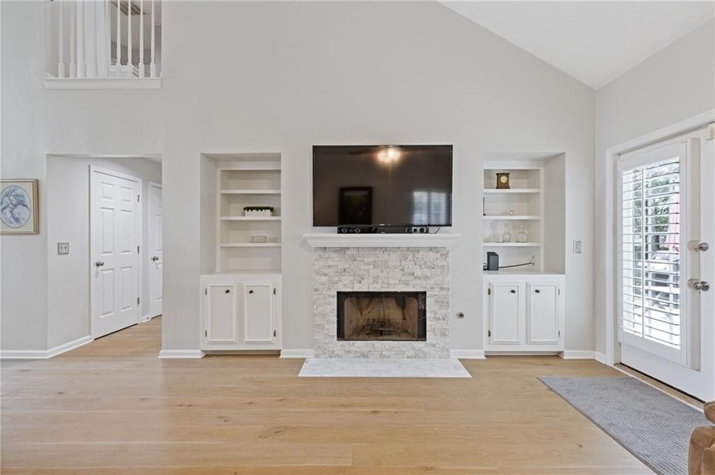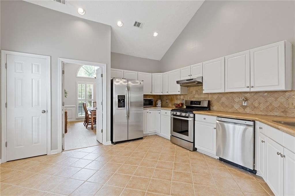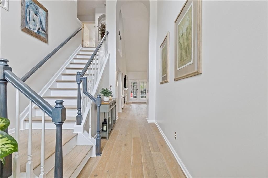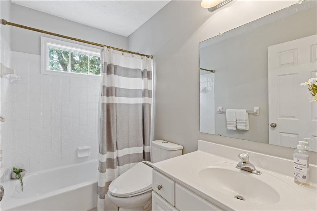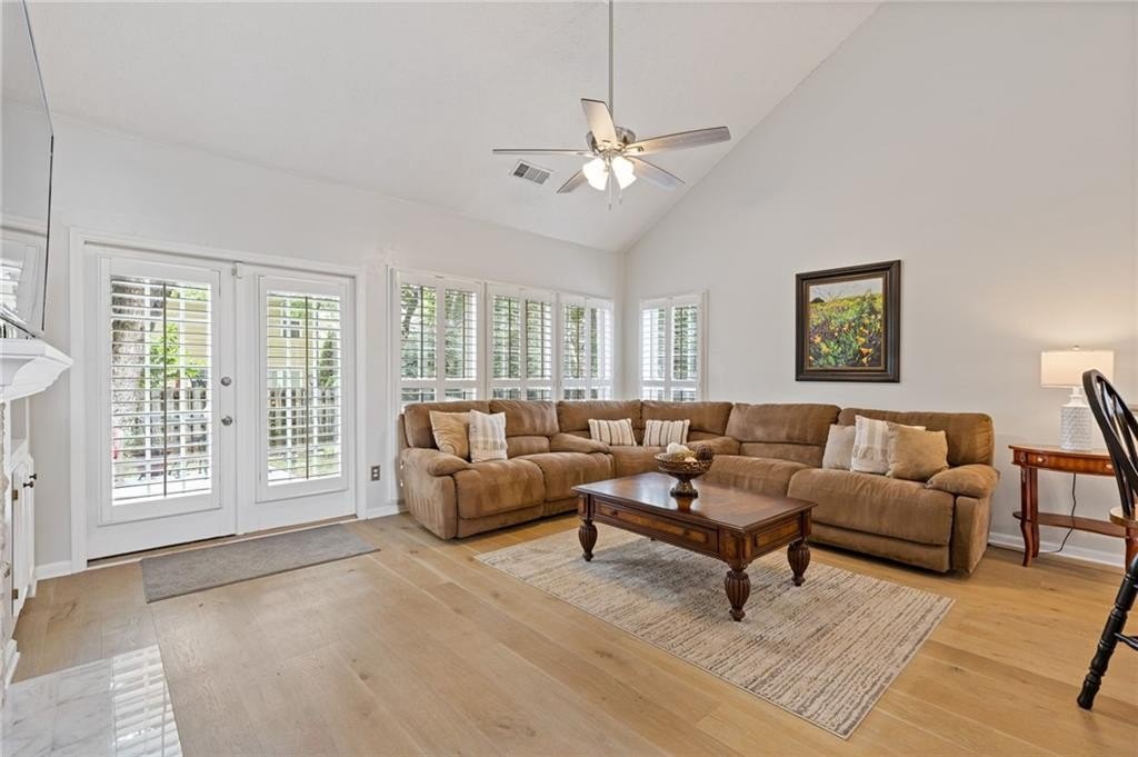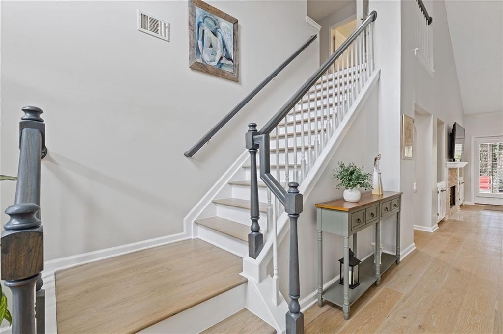 Welcome to this beautifully updated and light-filled home in Gatewood, a highly sought-after swim and tennis community near downtown Alpharetta. Step into the impressive two-story foyer with new LVP flooring that flows seamlessly into the open-concept main level. The spacious dining area adjoins the bright kitchen, which overlooks the family room featuring soaring cathedral ceilings and a cozy gas fireplace framed by built-ins. The primary suite is conveniently located on the main level and boasts elegant tray ceilings. Upstairs, you’ll find two generously sized bedrooms and a full bath. Enjoy outdoor living on the expansive deck, perfect for gatherings and grilling, while overlooking lush landscaping with stone walkways and a fully fenced backyard. This home offers unmatched convenience to downtown Alpharetta’s vibrant shopping, dining, and entertainment scene. The neighborhood is also directly across from Cogburn Road Park, offering a playground, paved walking paths, and picnic areas. Zoned for the top-rated Cambridge High School district—don’t miss this opportunity to own a truly delightful home in one of Alpharetta’s most desirable communities!