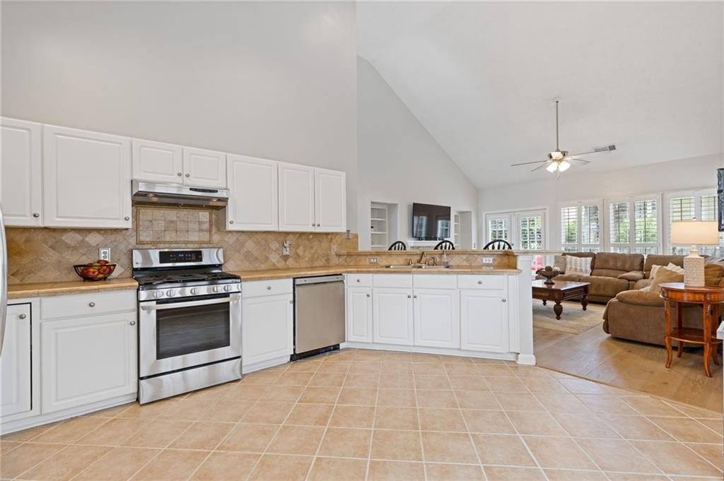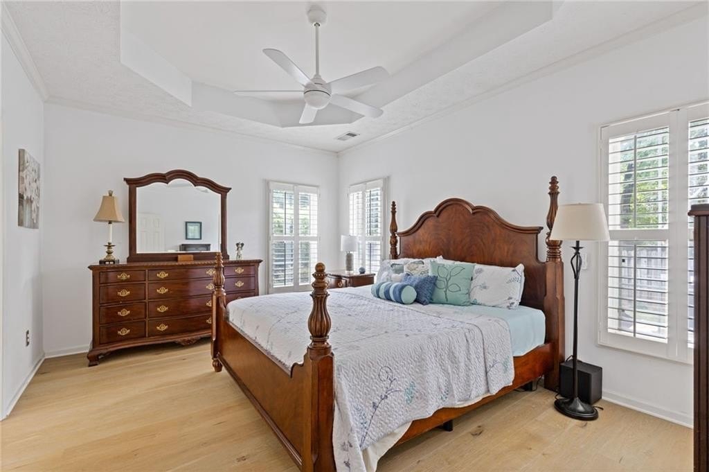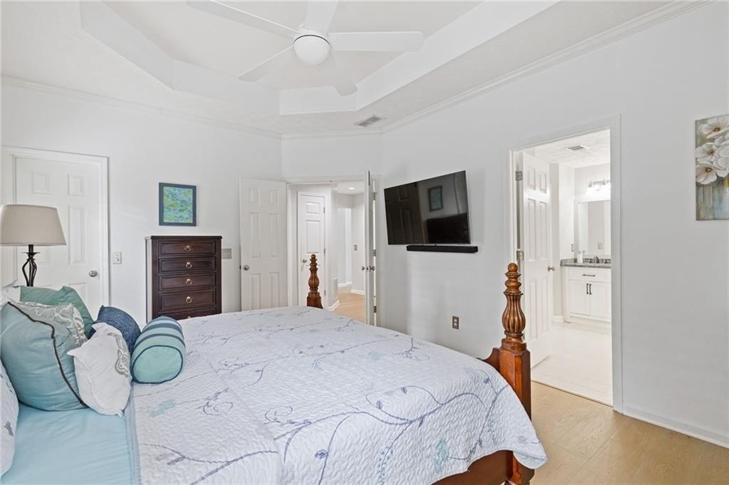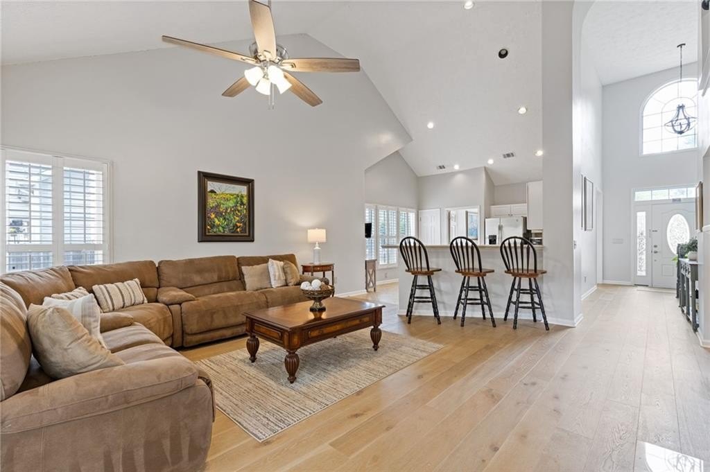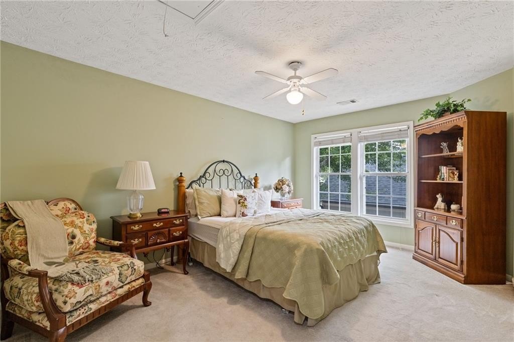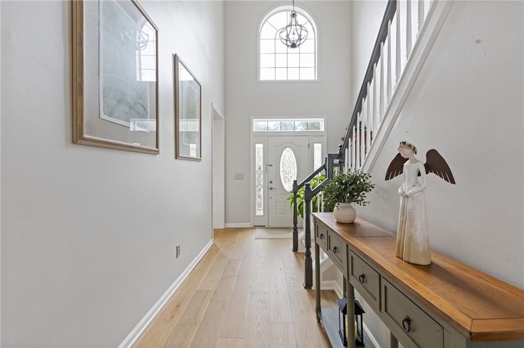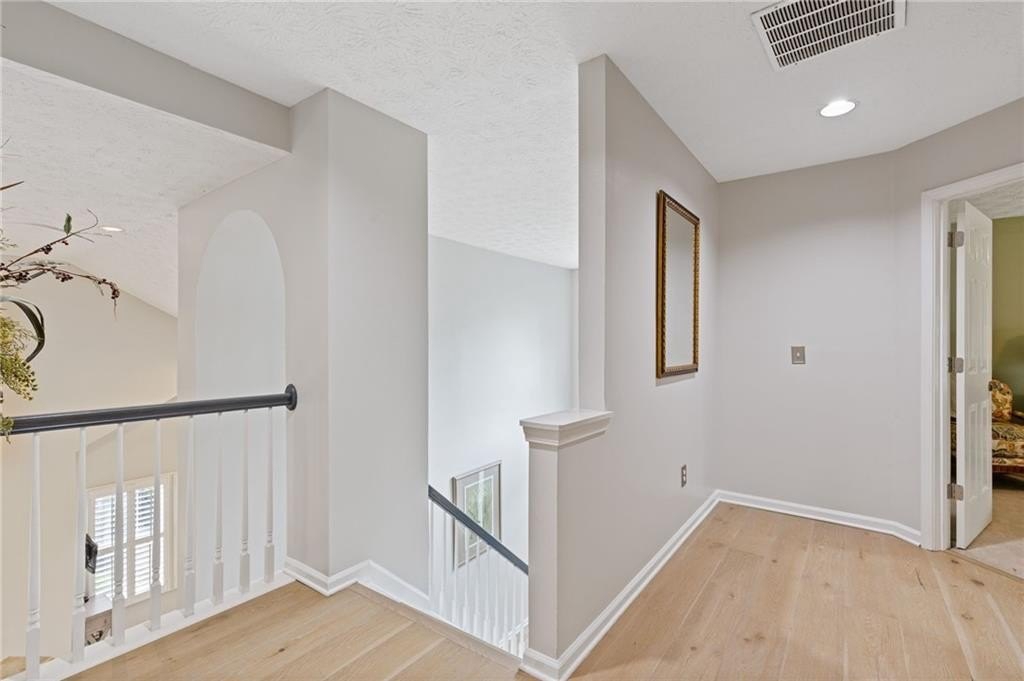 Welcome to this beautifully updated and light-filled home in Gatewood, a highly sought-after swim and tennis community near downtown Alpharetta. Step into the impressive two-story foyer with new LVP flooring that flows seamlessly into the open-concept main level. The spacious dining area adjoins the bright kitchen, which overlooks the family room featuring soaring cathedral ceilings and a cozy gas fireplace framed by built-ins. The primary suite is conveniently located on the main level and boasts elegant tray ceilings. Upstairs, you’ll find two generously sized bedrooms and a full bath. Enjoy outdoor living on the expansive deck, perfect for gatherings and grilling, while overlooking lush landscaping with stone walkways and a fully fenced backyard. This home offers unmatched convenience to downtown Alpharetta’s vibrant shopping, dining, and entertainment scene. The neighborhood is also directly across from Cogburn Road Park, offering a playground, paved walking paths, and picnic areas. Zoned for the top-rated Cambridge High School district—don’t miss this opportunity to own a truly delightful home in one of Alpharetta’s most desirable communities!