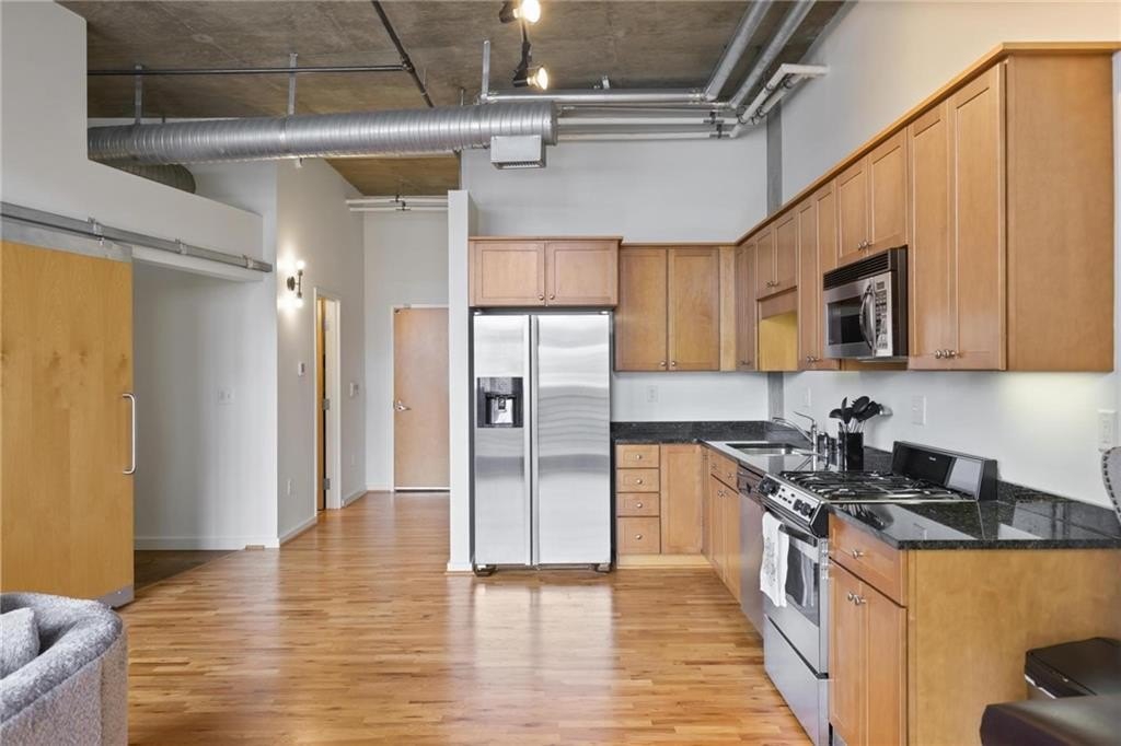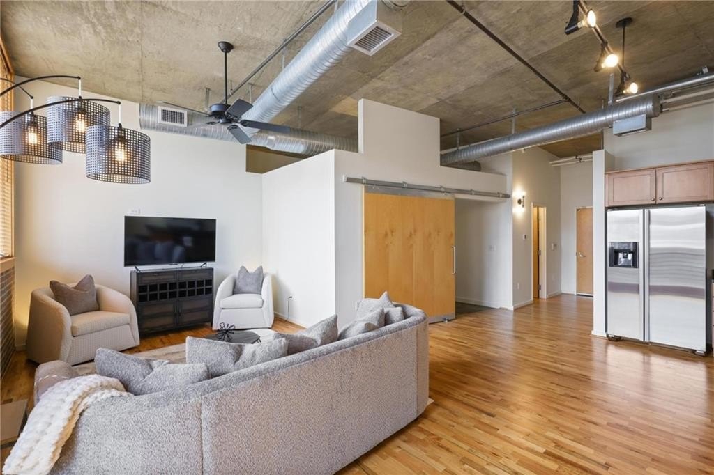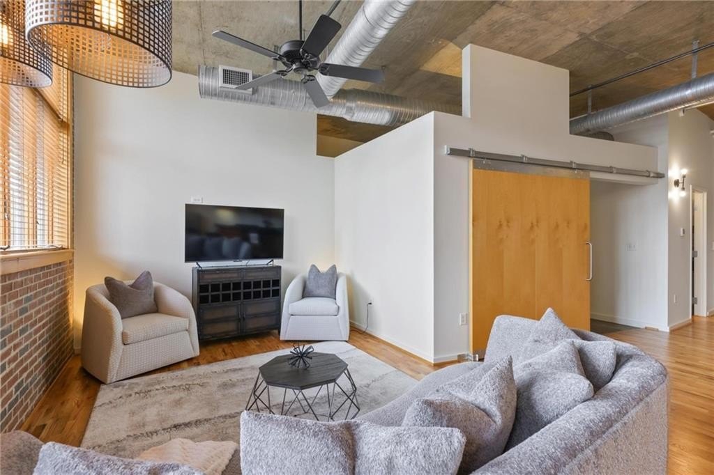 LOCATION, LOCATION, LOCATION! Live in the heart of it all—just steps from the Atlanta BeltLine, Ponce City Market, Historic Fourth Ward Park, and the exciting new 11-acre Fourth Ward ATLANTA development! You’ll love everything about this incredible property—and the best part? Almost everything is included! Your HOA fee covers gas, water, trash, Google Fiber, a sparkling saltwater pool, gated and professionally landscaped grounds, a dog run, and bike storage. The only utility you’ll pay is electricity! This unit is truly move-in ready and can even be sold fully furnished, complete with stylish furniture and décor. Inside, enjoy a spectacular skyline view, a dramatic wall of windows, and 14-foot soaring ceilings that fill the space with light. The open-concept kitchen is perfect for entertaining, and the custom walk-in closet offers exceptional storage—with additional space above for all your extras. Experience the best of Atlanta living—modern convenience, unbeatable location, and effortless style—all in one perfect package.