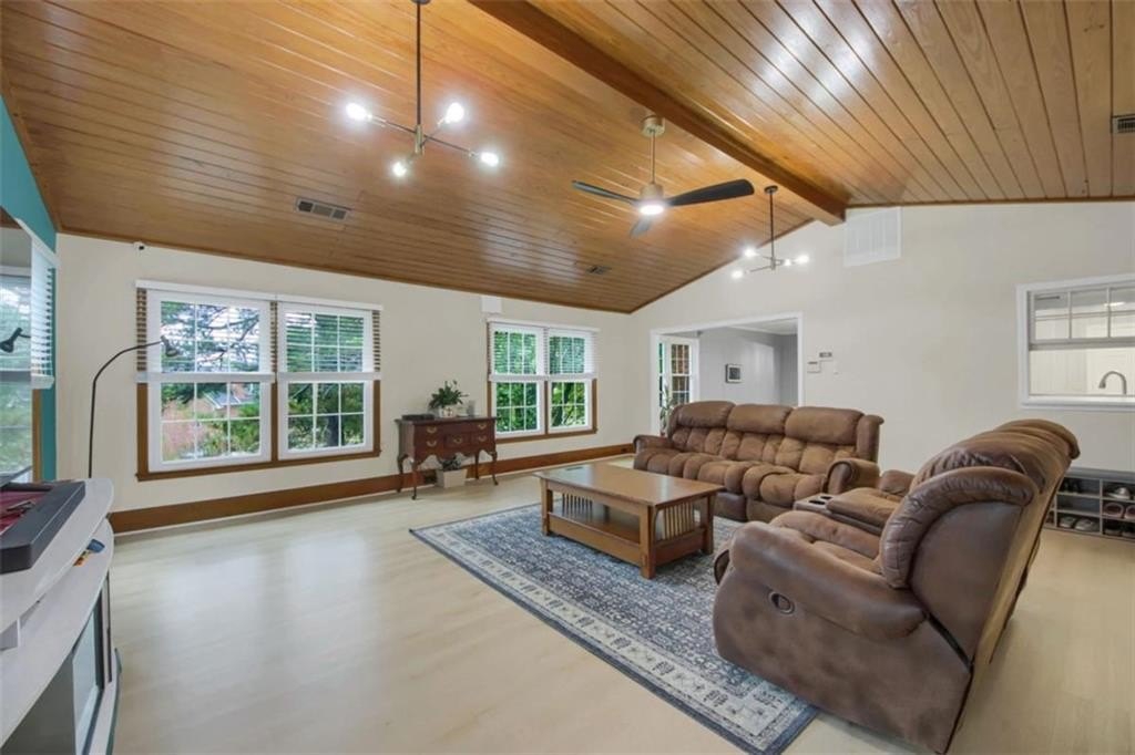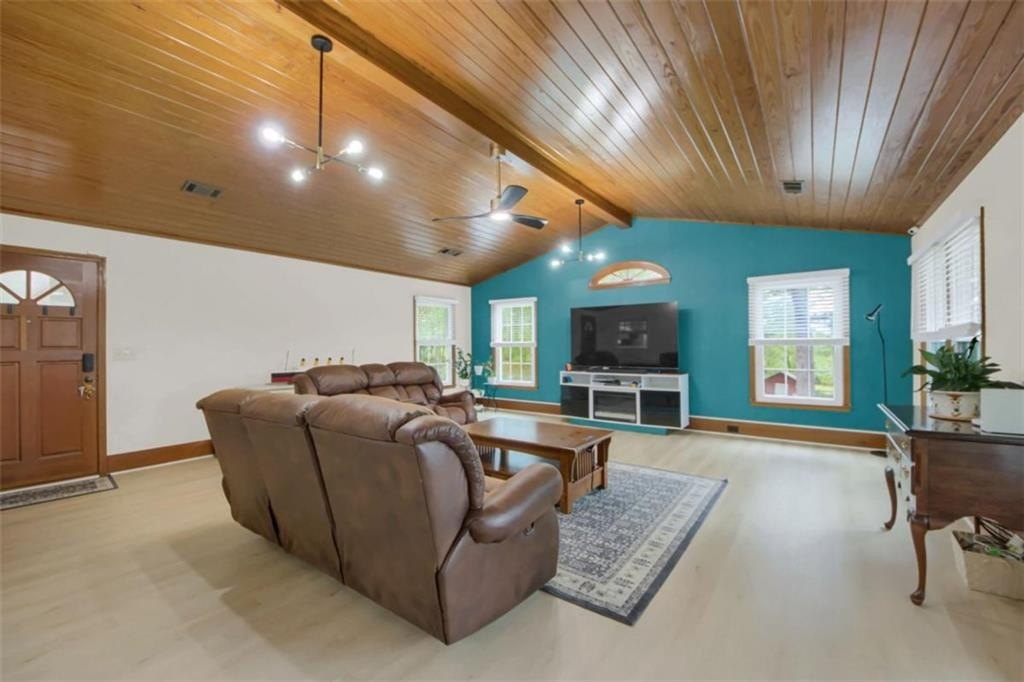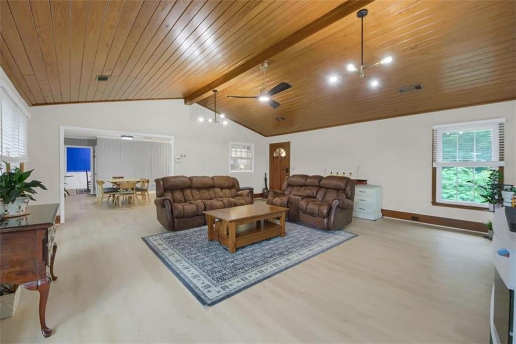 Stop, don't go past this lovely home in Olde Town Conyers. This classic four-sided brick home, on a quiet street, sits on 4.42 acres. You are tucked back from the road with a tree lined driveway leading to a two car garage. Offering multiple entry points, including the front steps, garage access on lower level, or enter through back patio. The main level features formal dining/living area that leads into an open concept eat-in kitchen with new vinyl floors, and island with barstool seating. Right off the kitchen you step into your HUGE den/Living room with space for all your interest, big screen, sectionals, great for entertainment and gathering. On the main level you have two bedrooms and recently updated full bathroom with vessel sinks, updated fixtures and new tile. The lower level offers even more living space, a large bonus room with fire place that can be used as second living room, a large Bedroom with two closets, full bath, Utility/storage room where you have your laundry and lots of storage, and another bonus space that can be used as office. A special historic touch: the lower level stairs were repurposed from the original Conyers Courthouse, adding character and a piece of local history to the home. The 4.42 acres are zoned R1, allowing for livestock, horses, and enclosures, already confirmed with county. Ideal for farm or equestrian enthusiasts. On Property there is a 25x26 Brick Utility building and a small shed. Property features above ground pool with pool house and lights thats great for entertaining and fun, already drained for winter. New roof installed 2023. Home has Hurricane grade Storm Windows. Septic tank recently serviced ( 9/02/2025) and HVAC serviced (9/25/2025) to prepare for listing. Located in Olde Town's golf cart district, you'll enjoy easy access to local favorites, dining, theater, coffee shop, library, botanical garden, and more. Close proximity to Rockdale Hospital, Medical Office complex, and just minutes from I-20. You get privacy, space, and all the conveniences of living close to town. Schedule your showing in ShowingTime!