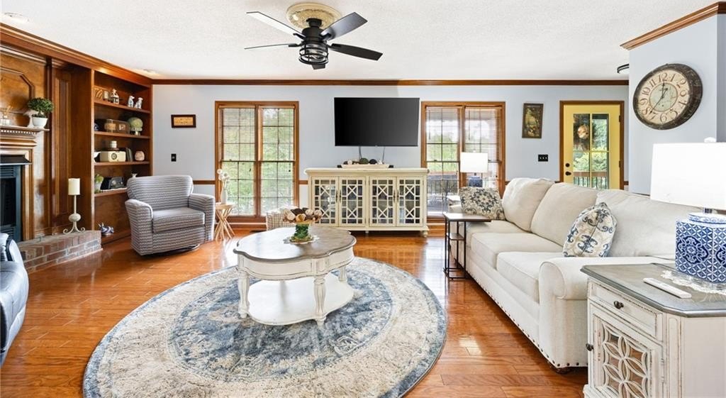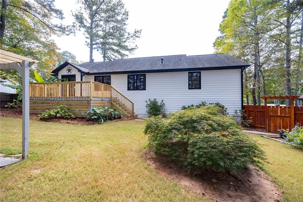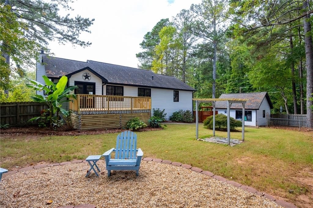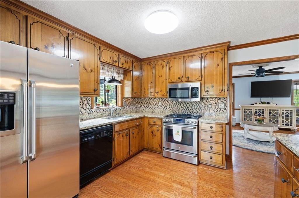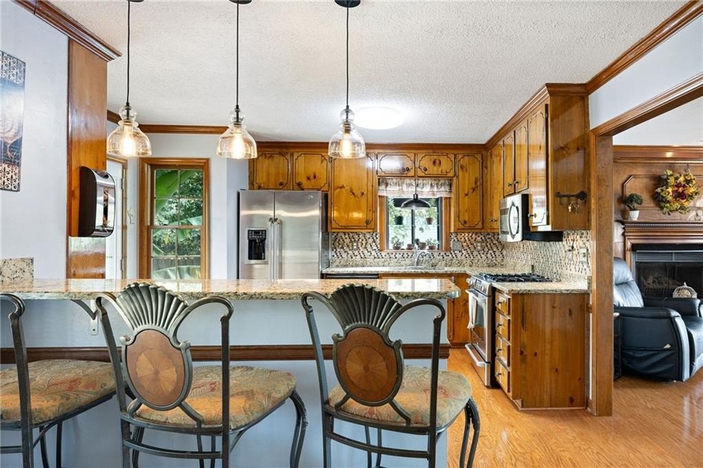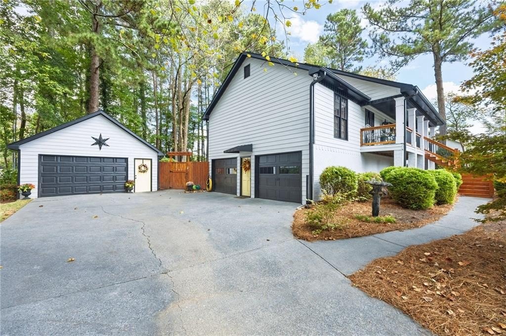 Welcome Home to this lovely 3-bedroom, 2-bath raised ranch, located in the highly sought-after Harrison High School District! Perfectly positioned on a spacious corner lot just shy of half an acre, this home offers a wonderful blend of comfort, charm, and functionality. Step onto the inviting front porch—recently updated with new wood railing & steps. When you enter the home, step into a cozy yet spacious family room featuring a classic brick fireplace and built-in bookcases, ideal for displaying your favorite décor or reading collection and you can’t ignore the gorgeous hardwood floors! The thoughtfully designed kitchen is equipped with modern stainless-steel appliances, granite countertops, and ample storage, while the adjacent dining area provides the perfect space for everyday meals or entertaining. Down the hall, you’ll find three generous bedrooms with luxury vinyl flooring and ceiling fans for added comfort. The freshly painted primary bedroom offers plenty of room for your furnishings, and the ensuite bath includes double vanities with quartz tops and updated mirrors, a separate tub and shower along with abundant closet space. The finished basement features a versatile room that can serve as a guest suite, playroom, office, or home gym—tailored to fit your lifestyle. Step outside to enjoy the brand-new deck overlooking a beautifully landscaped, fenced backyard with firepit area, perfect for outdoor gatherings. Additional highlights include both an attached 2-car garage and a detached 2-car garage—ideal for storing recreational vehicles or creating the ultimate workshop. Located in a well-maintained community with **no HOA and no rental restrictions**, this home offers flexibility and freedom to make it truly your own.