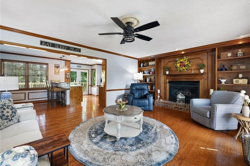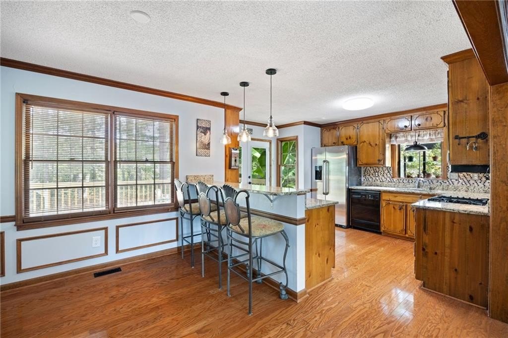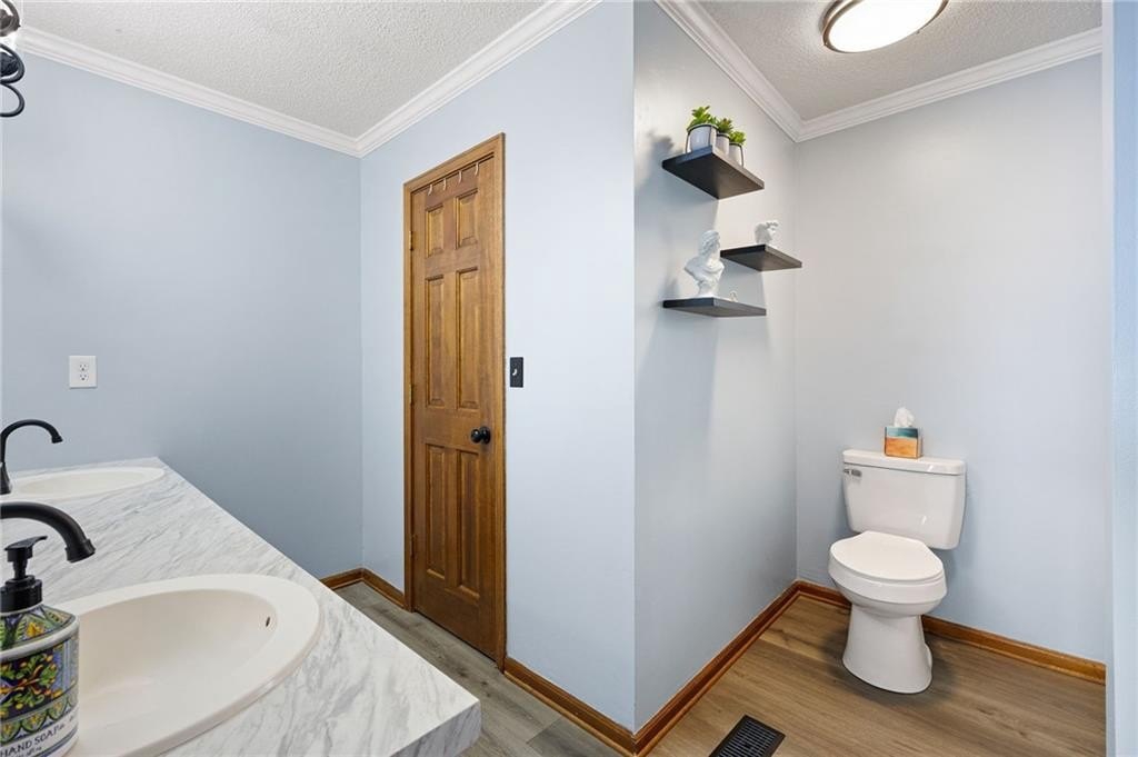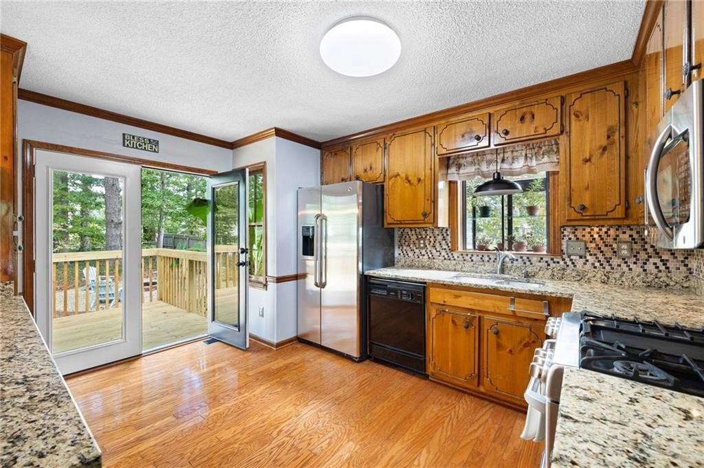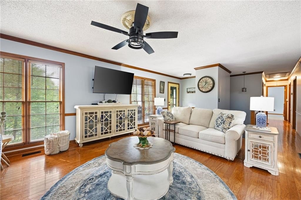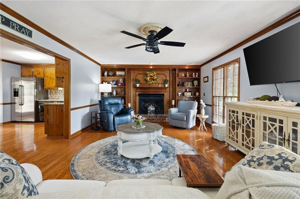 Welcome Home to this lovely 3-bedroom, 2-bath raised ranch, located in the highly sought-after Harrison High School District! Perfectly positioned on a spacious corner lot just shy of half an acre, this home offers a wonderful blend of comfort, charm, and functionality. Step onto the inviting front porch—recently updated with new wood railing & steps. When you enter the home, step into a cozy yet spacious family room featuring a classic brick fireplace and built-in bookcases, ideal for displaying your favorite décor or reading collection and you can’t ignore the gorgeous hardwood floors! The thoughtfully designed kitchen is equipped with modern stainless-steel appliances, granite countertops, and ample storage, while the adjacent dining area provides the perfect space for everyday meals or entertaining. Down the hall, you’ll find three generous bedrooms with luxury vinyl flooring and ceiling fans for added comfort. The freshly painted primary bedroom offers plenty of room for your furnishings, and the ensuite bath includes double vanities with quartz tops and updated mirrors, a separate tub and shower along with abundant closet space. The finished basement features a versatile room that can serve as a guest suite, playroom, office, or home gym—tailored to fit your lifestyle. Step outside to enjoy the brand-new deck overlooking a beautifully landscaped, fenced backyard with firepit area, perfect for outdoor gatherings. Additional highlights include both an attached 2-car garage and a detached 2-car garage—ideal for storing recreational vehicles or creating the ultimate workshop. Located in a well-maintained community with **no HOA and no rental restrictions**, this home offers flexibility and freedom to make it truly your own.