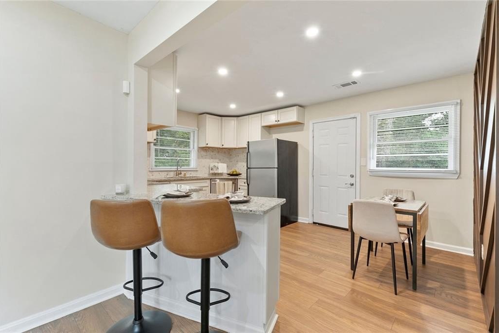Welcome home to this charming 2 bed, 1 bath bungalow in Forest Park! Step inside to a bright, open-concept living room that flows into an updated eat-in kitchen with newer countertops, backsplash, and stainless steel appliances. The back door leads to a large, flat yard surrounded by mature trees, featuring a detached garage and shed for extra storage. Both bedrooms share a centrally located bathroom with modern tile, fixtures, and vanity. Enjoy peaceful mornings on the screened front porch, off-street parking, and a quiet street just minutes from major interstates, Hartsfield-Jackson Airport, schools, and local parks. This property has also been a profitable rental for the past three years, making it perfect for homeowners or investors alike!