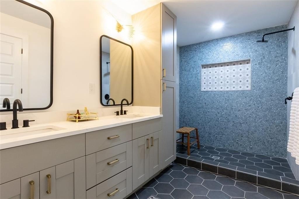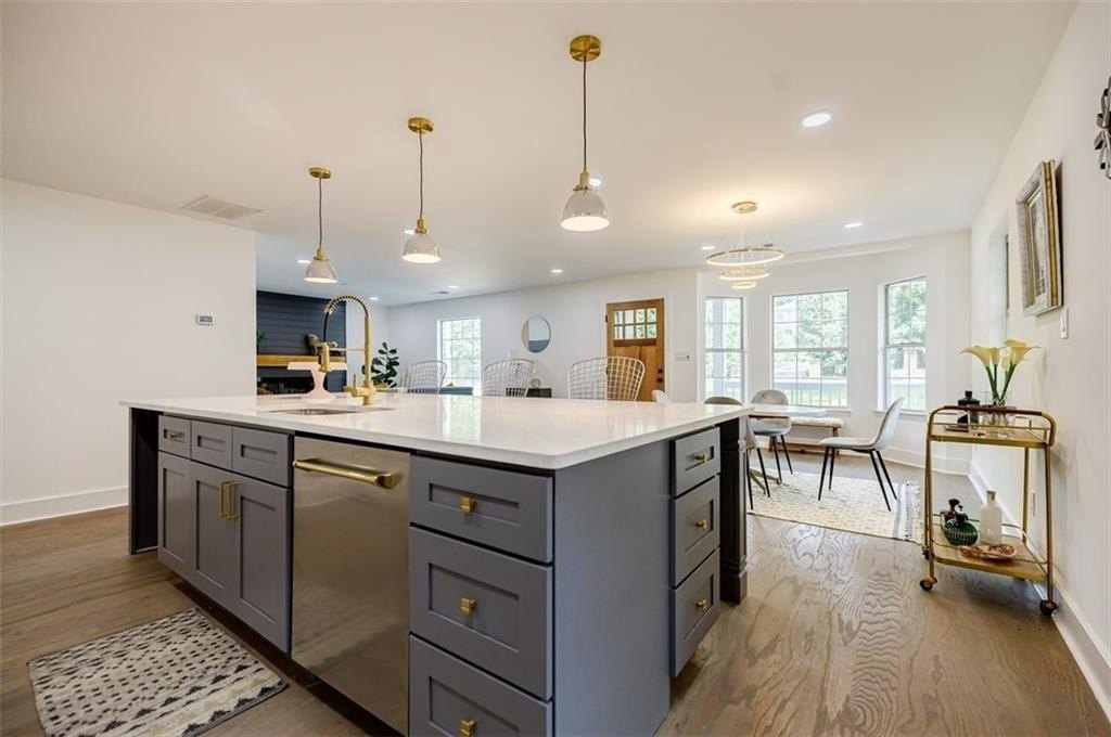 Step into modern elegance at this designer-renovated East Lake bungalow offering open-concept living, high-end finishes, and timeless style. The chef’s kitchen features quartz countertops, two-tone cabinetry, wine fridge, 36” ZLine gas range, and walk-in pantry. Entertain easily with mudroom access to a large rear deck and two cozy fireplaces for year-round ambiance. The vaulted primary suite boasts skylights, fireside sitting area, and custom closets with industrial metal doors. Each bathroom showcases hand-selected tile and luxury fixtures. Private off-street parking and turnaround for easy access. Minutes to Oakhurst Village, Downtown Decatur, Kirkwood, and East Lake Golf Club. A rare blend of craftsmanship, comfort, and convenience — intown living at its finest!