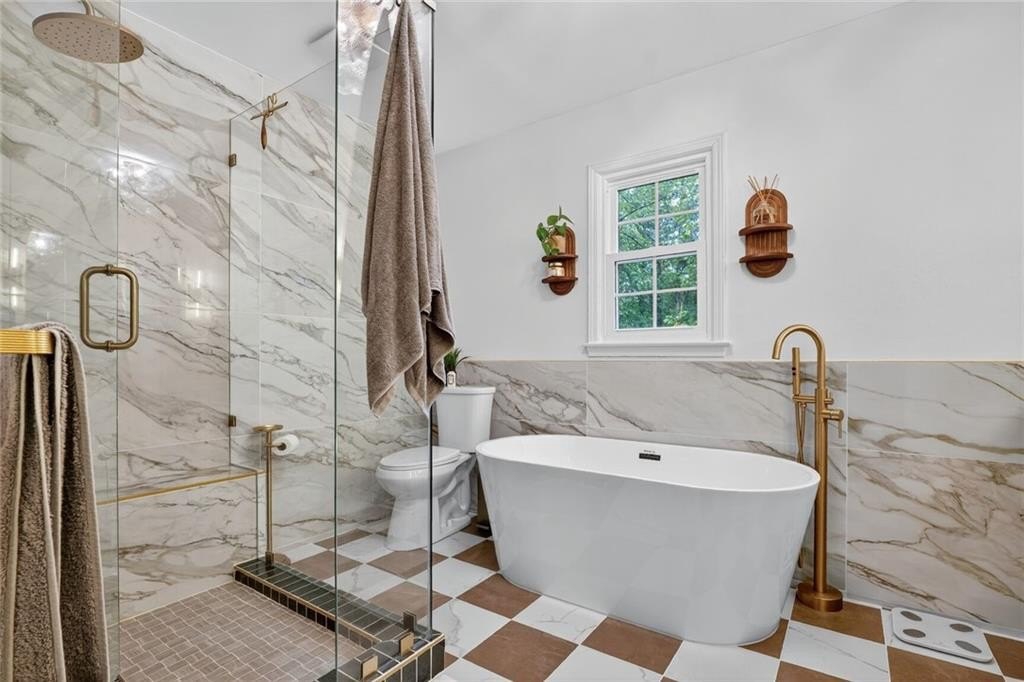 • Owner’s Suite Spa Bath: “Organic modern meets timeless elegance” with a freestanding soaking tub, designer fixtures, classic checkered tile, and cabinet-to-ceiling mirrors that bring spa-level grandeur into your daily routine.
