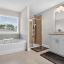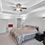 Upstairs, the spacious primary suite includes a tray ceiling, a spa-like bathroom with a soaking tub, a glass shower, and a large walk-in closet. Two additional bedrooms, a full bath, and a convenient upstairs laundry room complete the second level.
