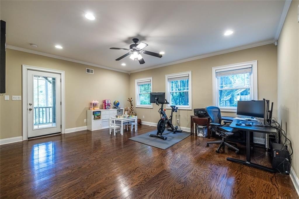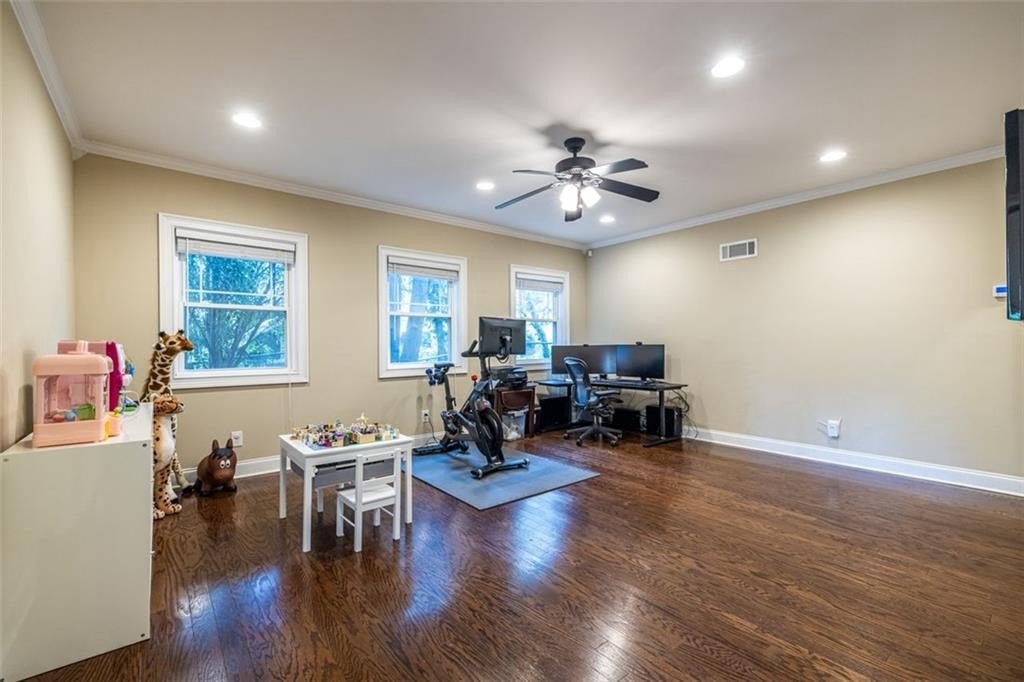 The terrace level offers incredible flexibility, with a large bonus space perfect for an office, playroom, gym, or additional living area. You’ll also find a bedroom and full bath plus a private lower-level porch — a wonderful setup for guests, extended family, or rental possibilities thanks to its separate entry.